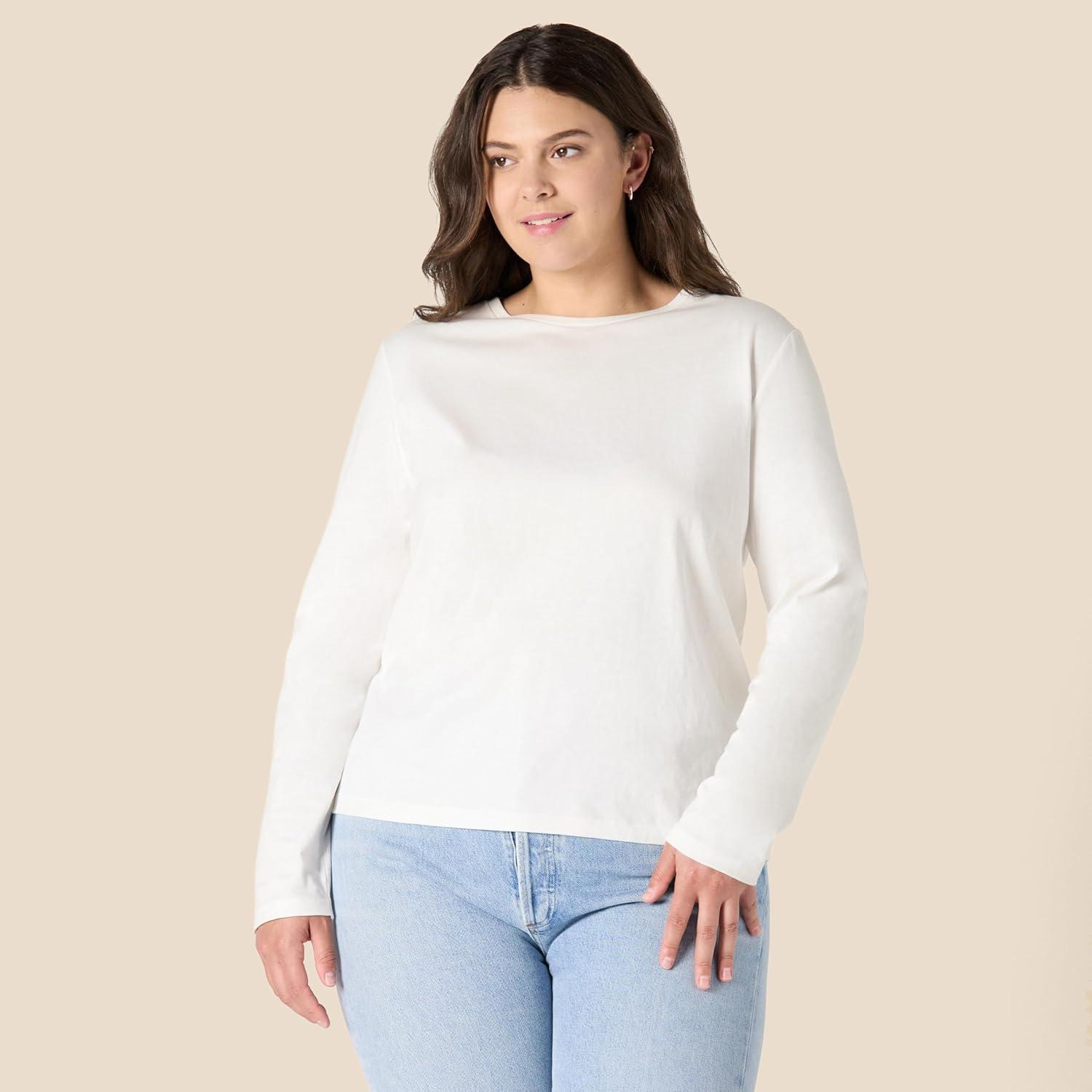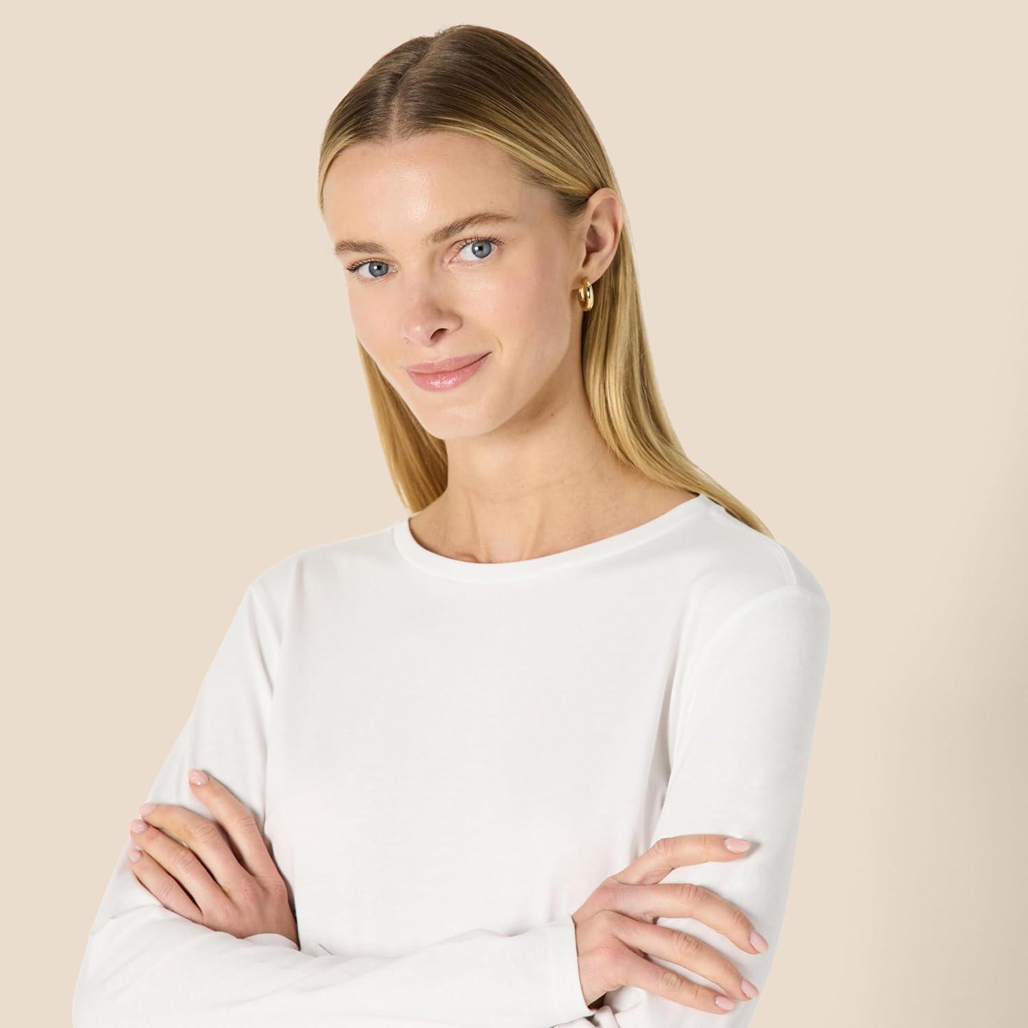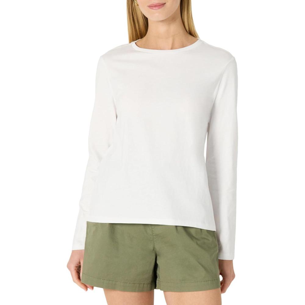 Amazon Essentials Women’s 100% Cotton Regular-Fit Long-Sleeve Crewneck T-Shirt(White)