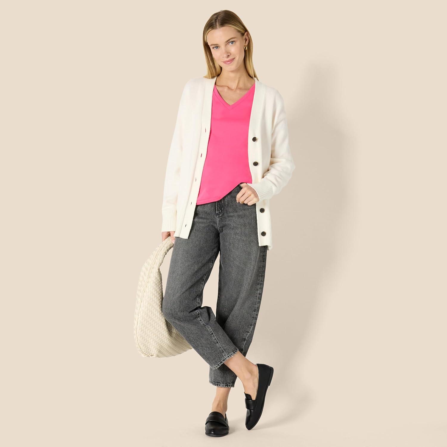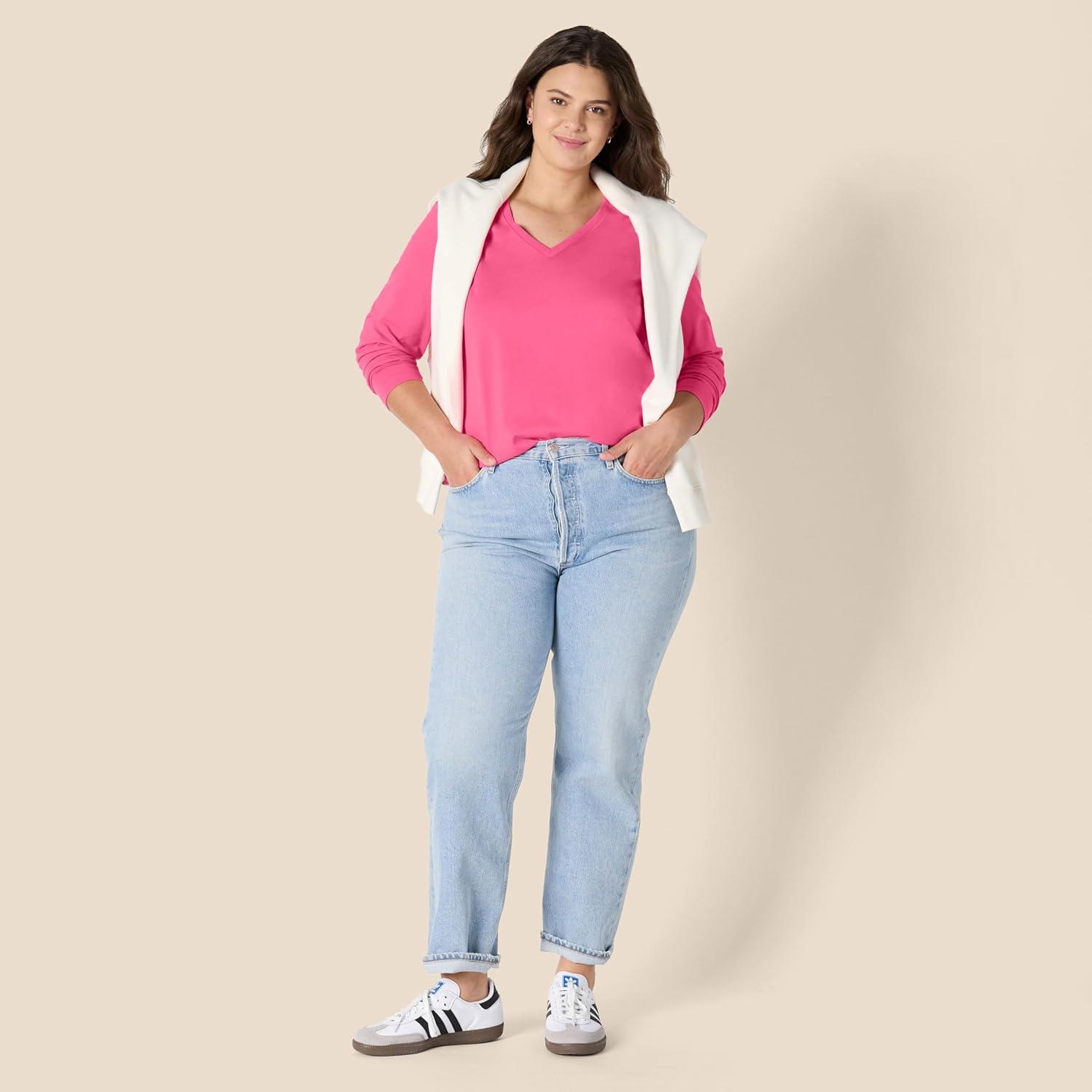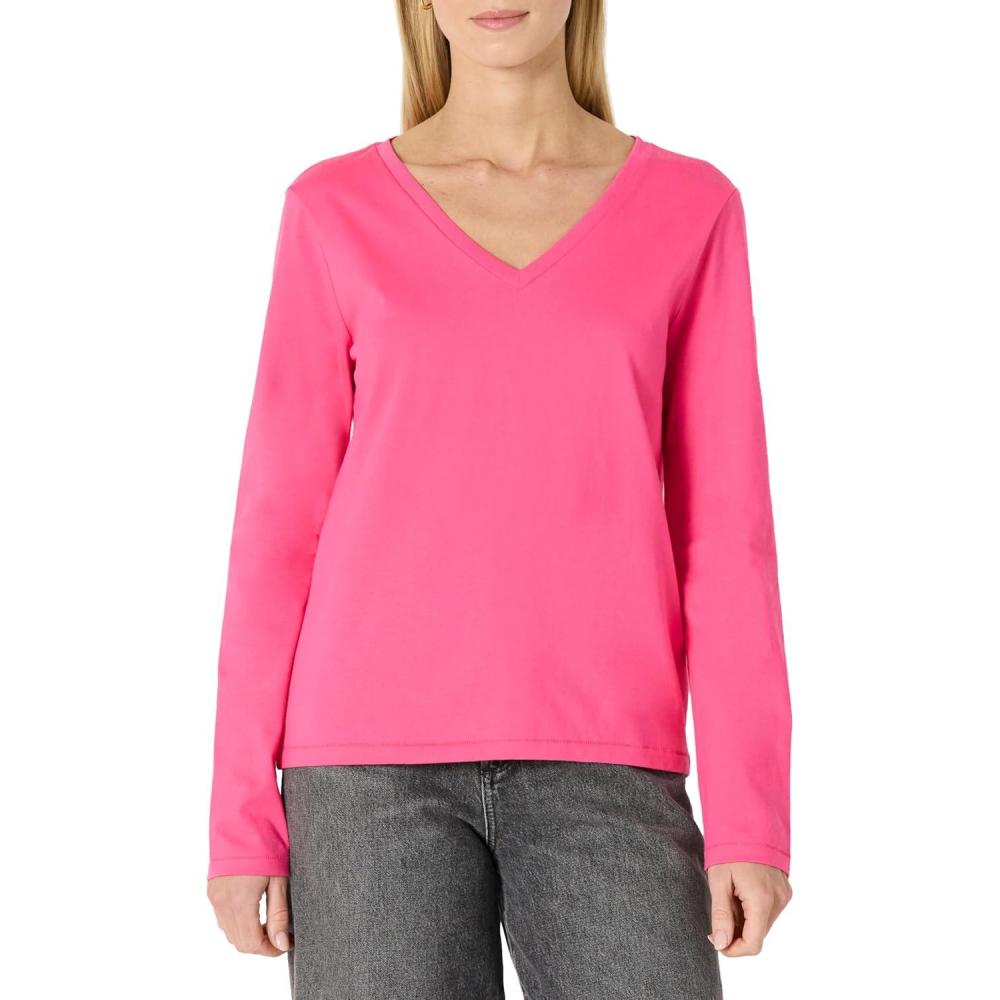 Amazon Essentials Women’s 100% Cotton Regular-Fit Long-Sleeve V-Neck T-Shirt(Hot Pink)