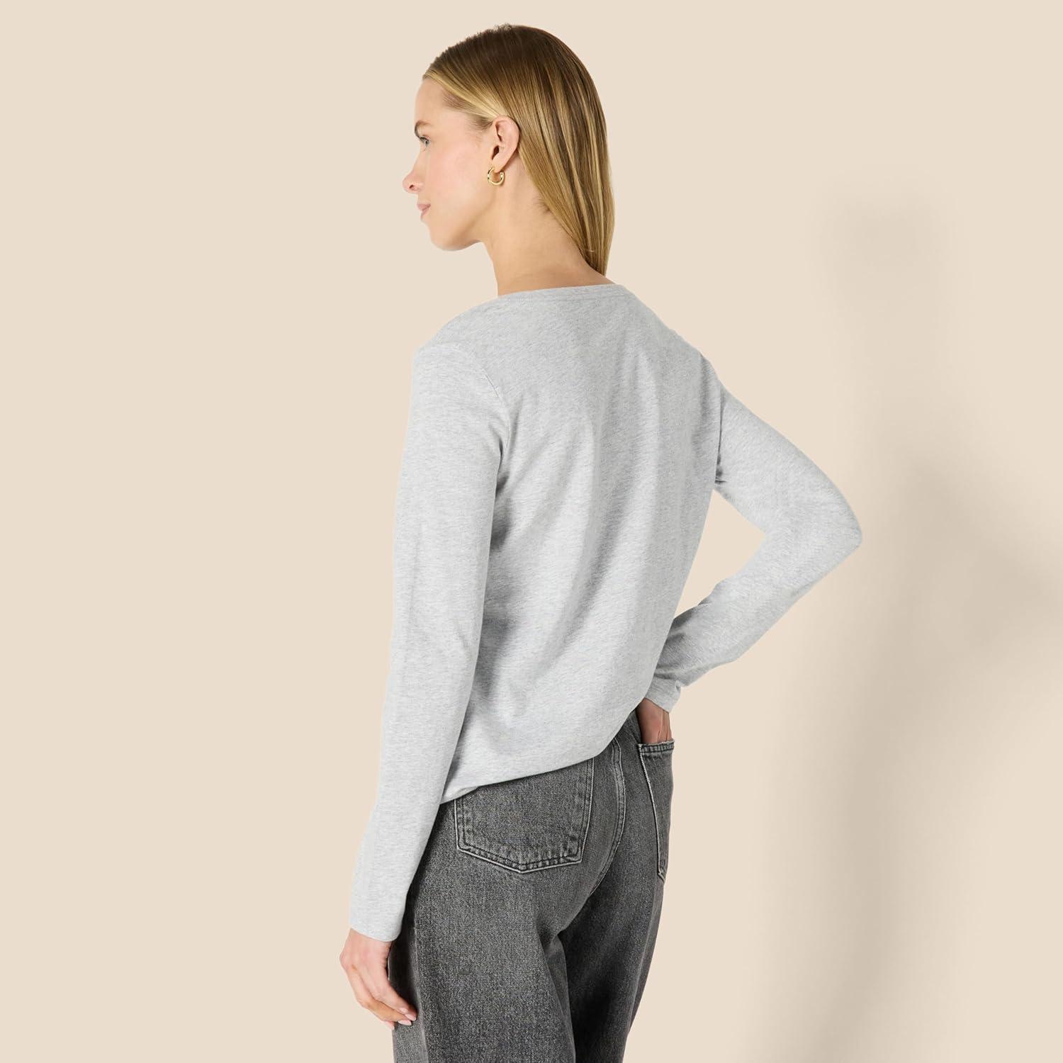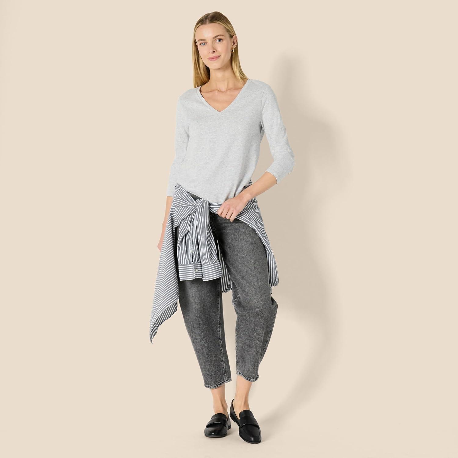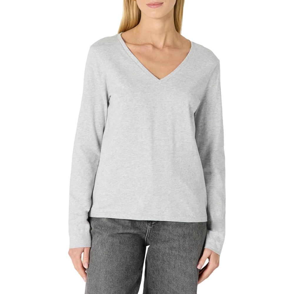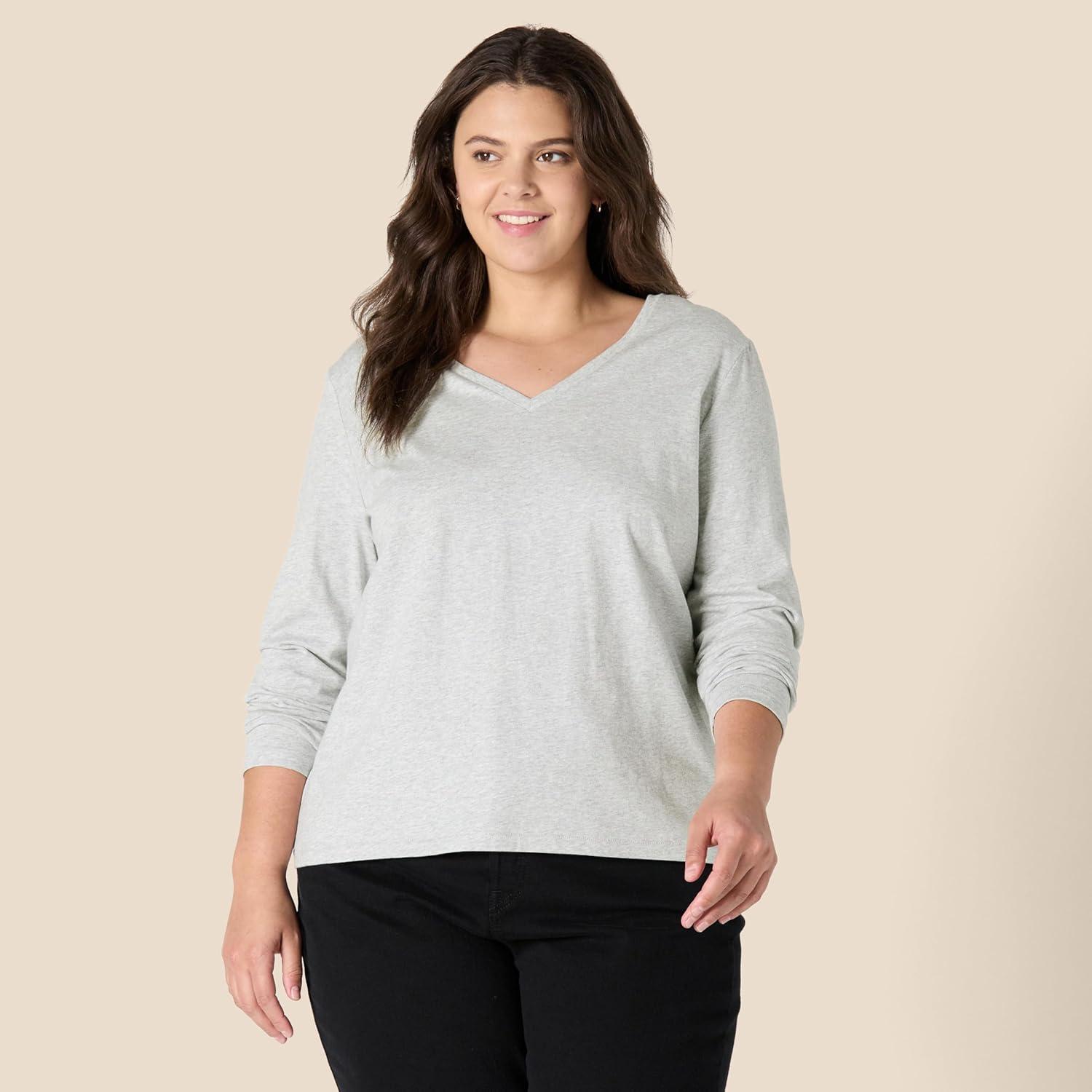 Amazon Essentials Women’s 100% Cotton Regular-Fit Long-Sleeve V-Neck T-Shirt(Light Grey Heather)