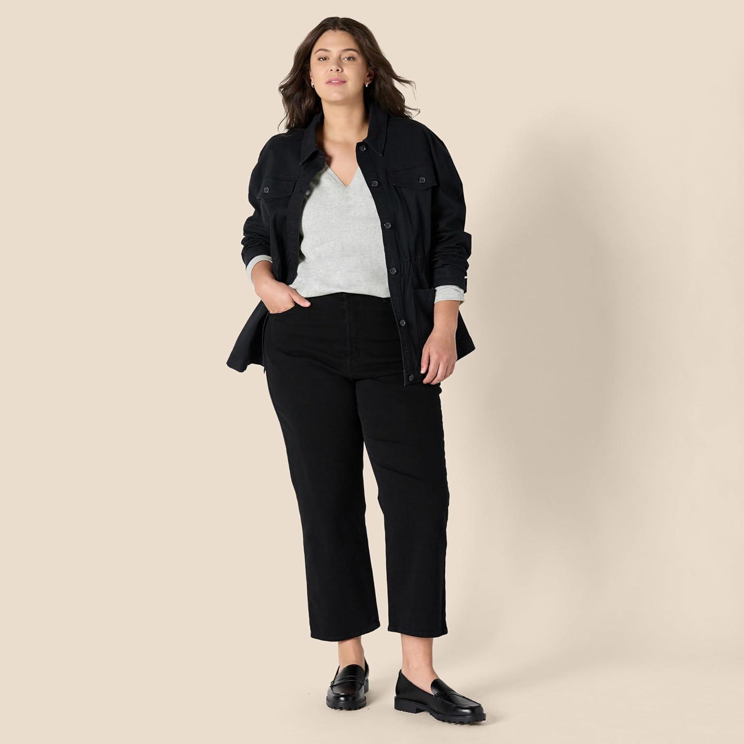 Amazon Essentials Women’s 100% Cotton Regular-Fit Long-Sleeve V-Neck T-Shirt(Navy)