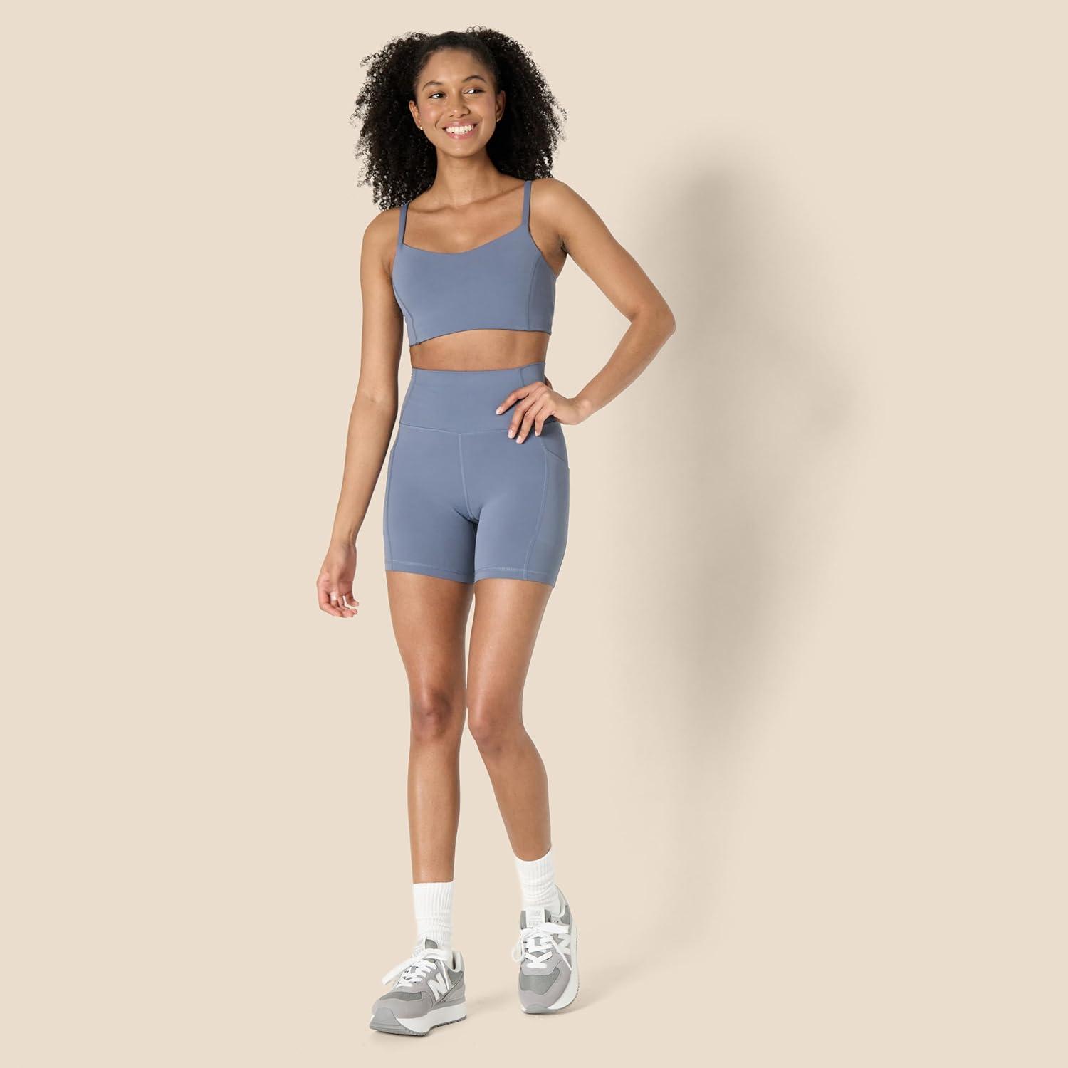 Amazon Essentials Women’s Active FormFlex Buttery Soft High Waist Yoga Biker Shorts(Ocean Blue)