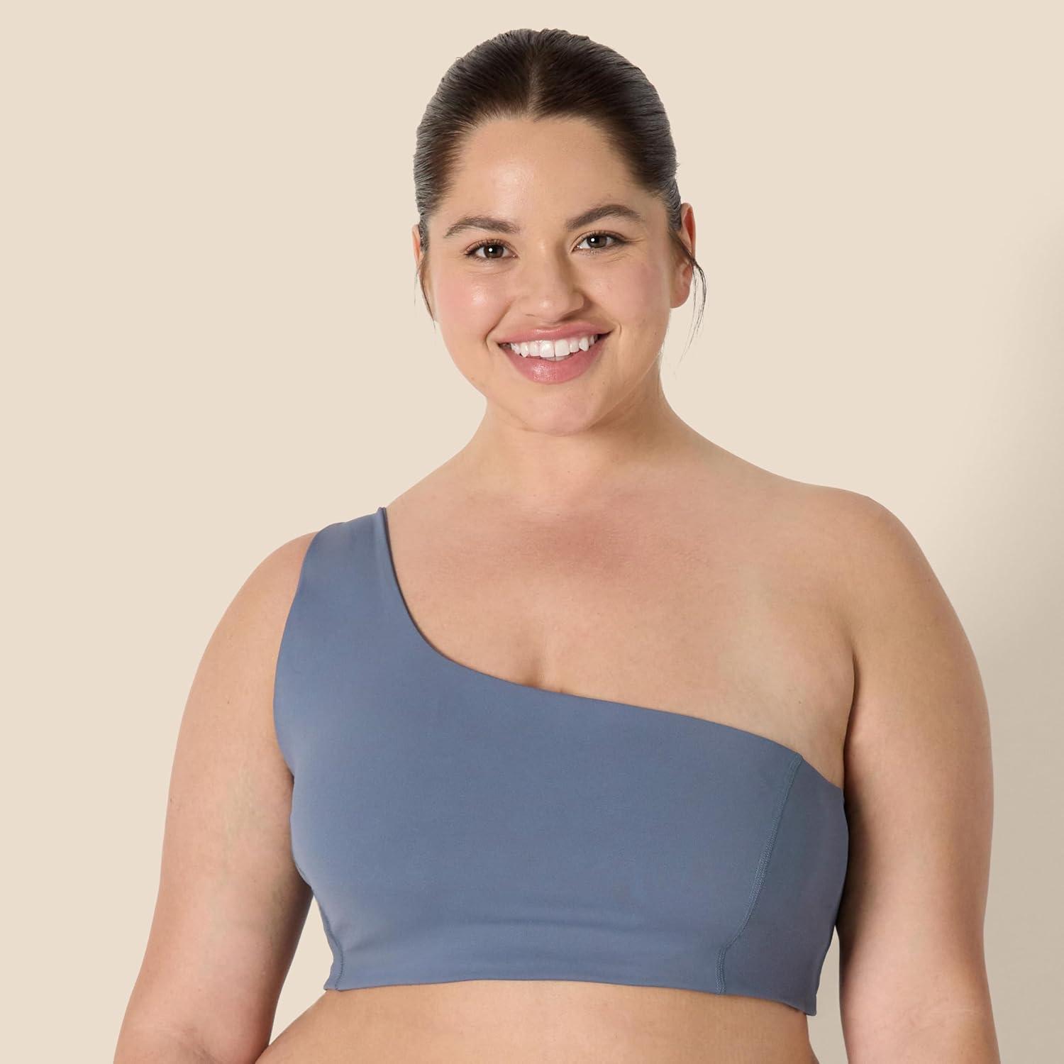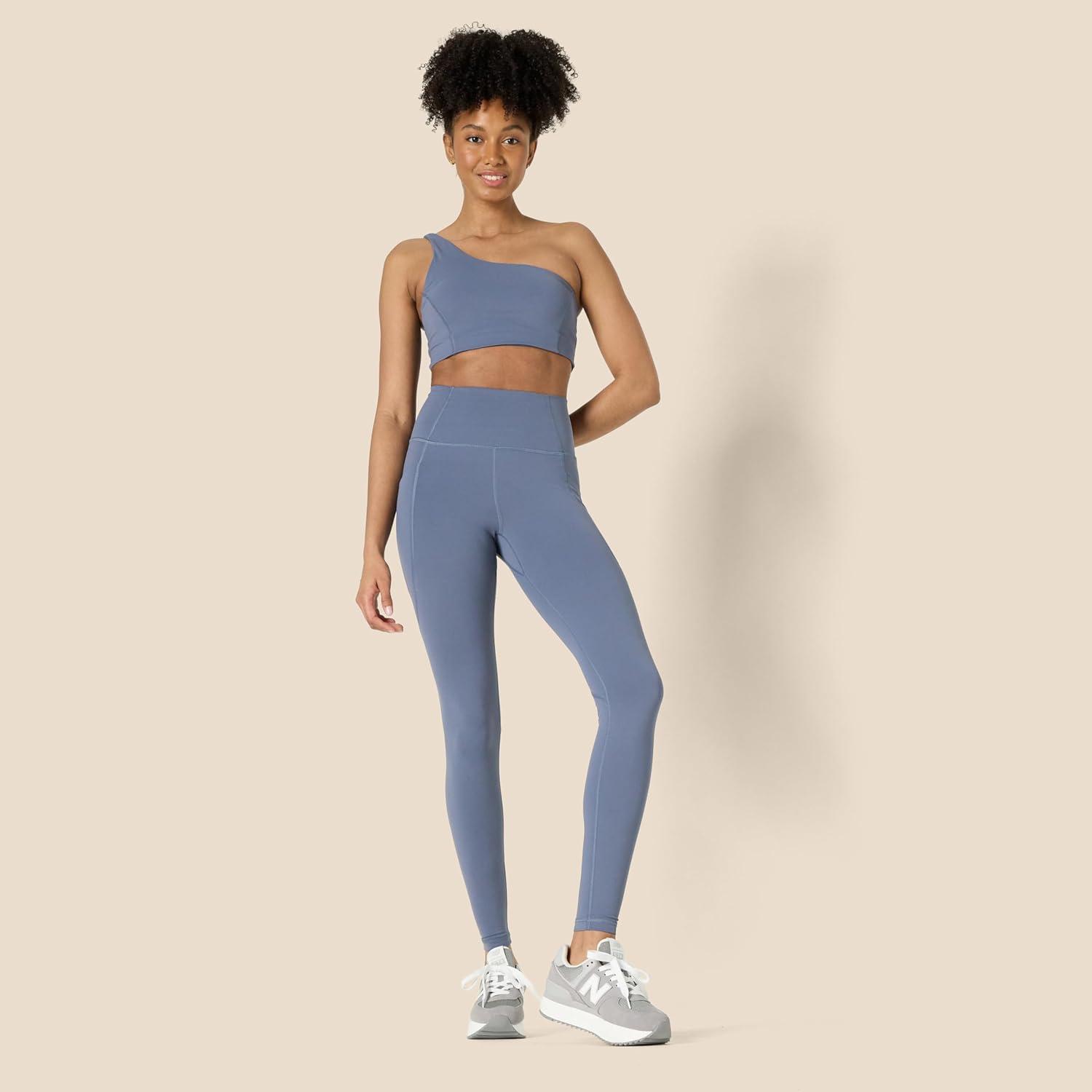 Amazon Essentials Women’s Active FormFlex Buttery Soft Light Support One Shoulder Strappy Back Sports Bra(Slate Grey)