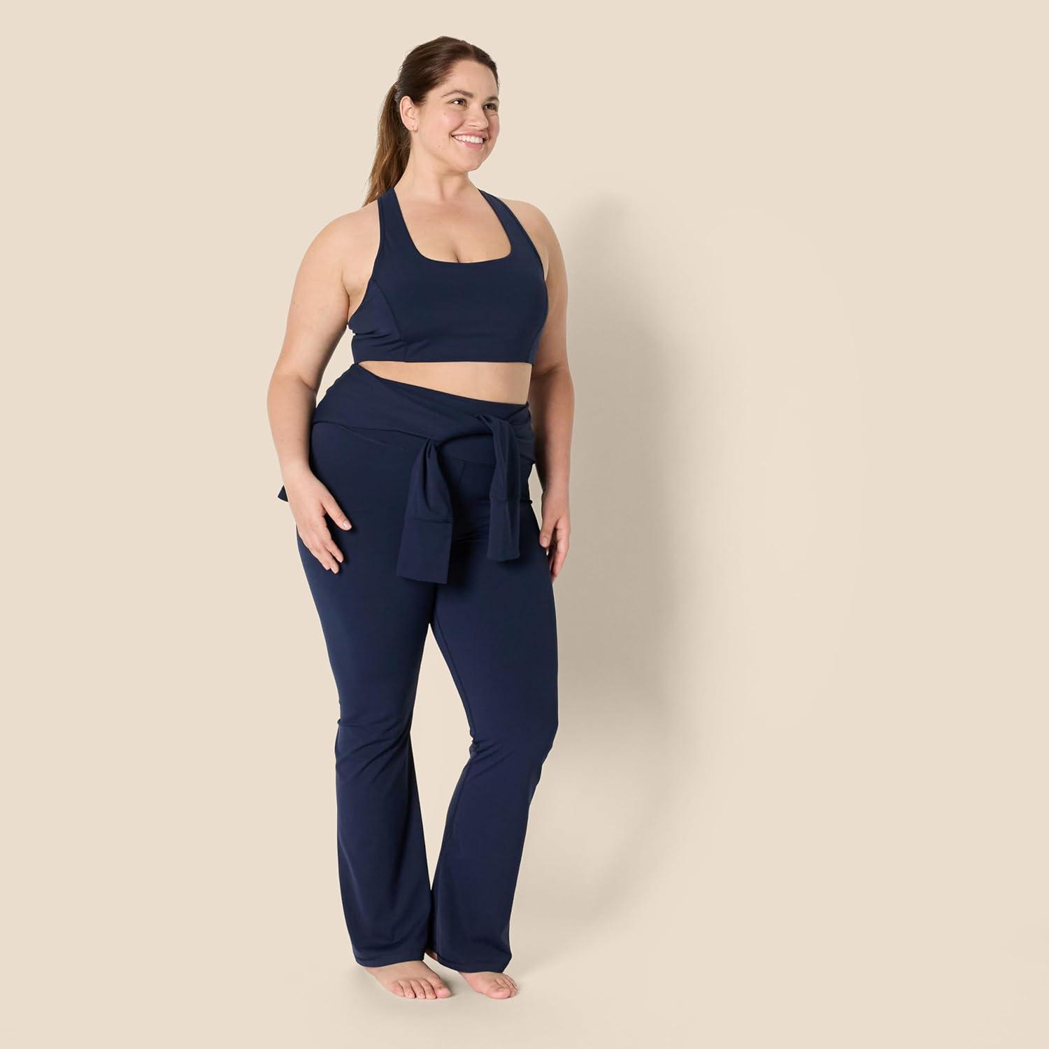 Amazon Essentials Women’s Active FormFlex Buttery Soft Light Support Square Neck Racerback Sports Bra(Navy)
