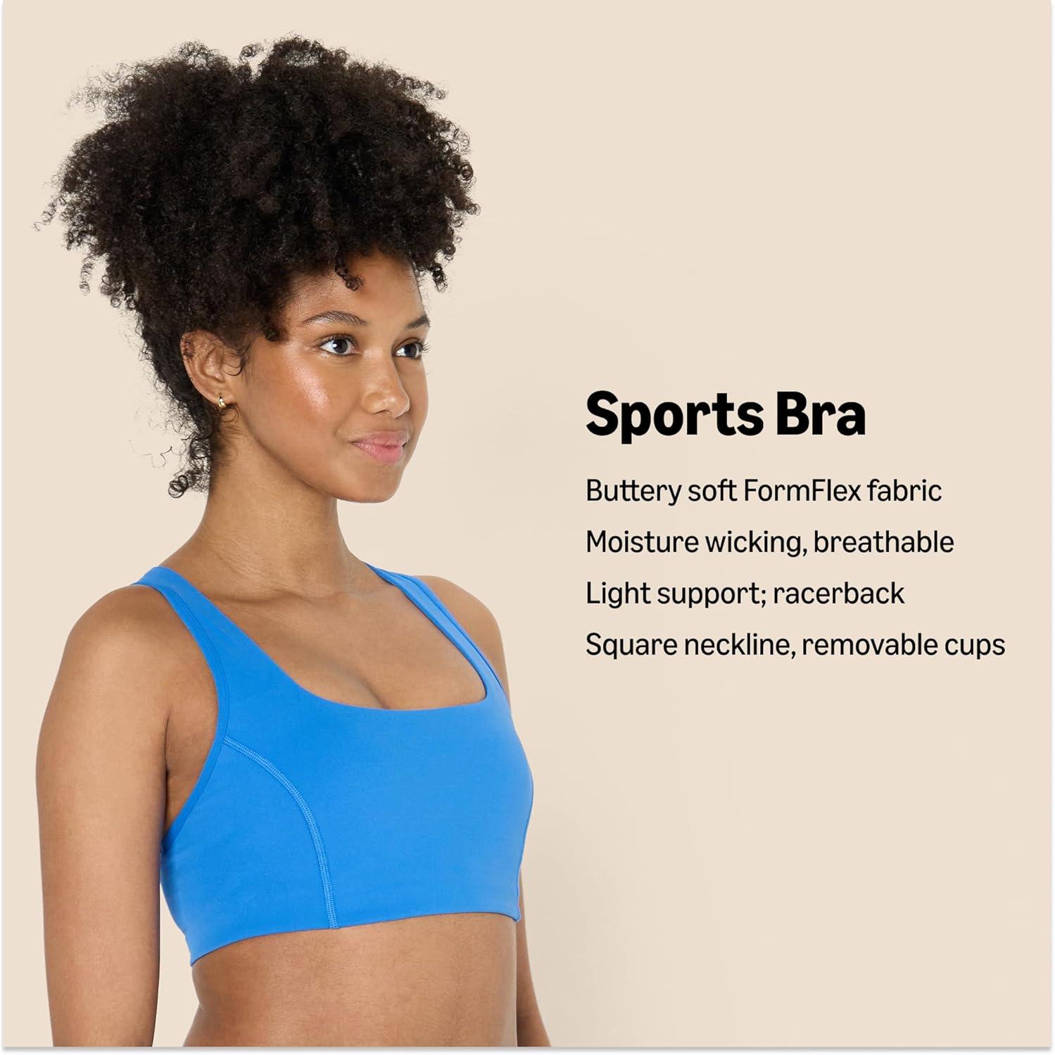Amazon Essentials Women’s Active FormFlex Buttery Soft Light Support Square Neck Racerback Sports Bra(Ocean Blue)