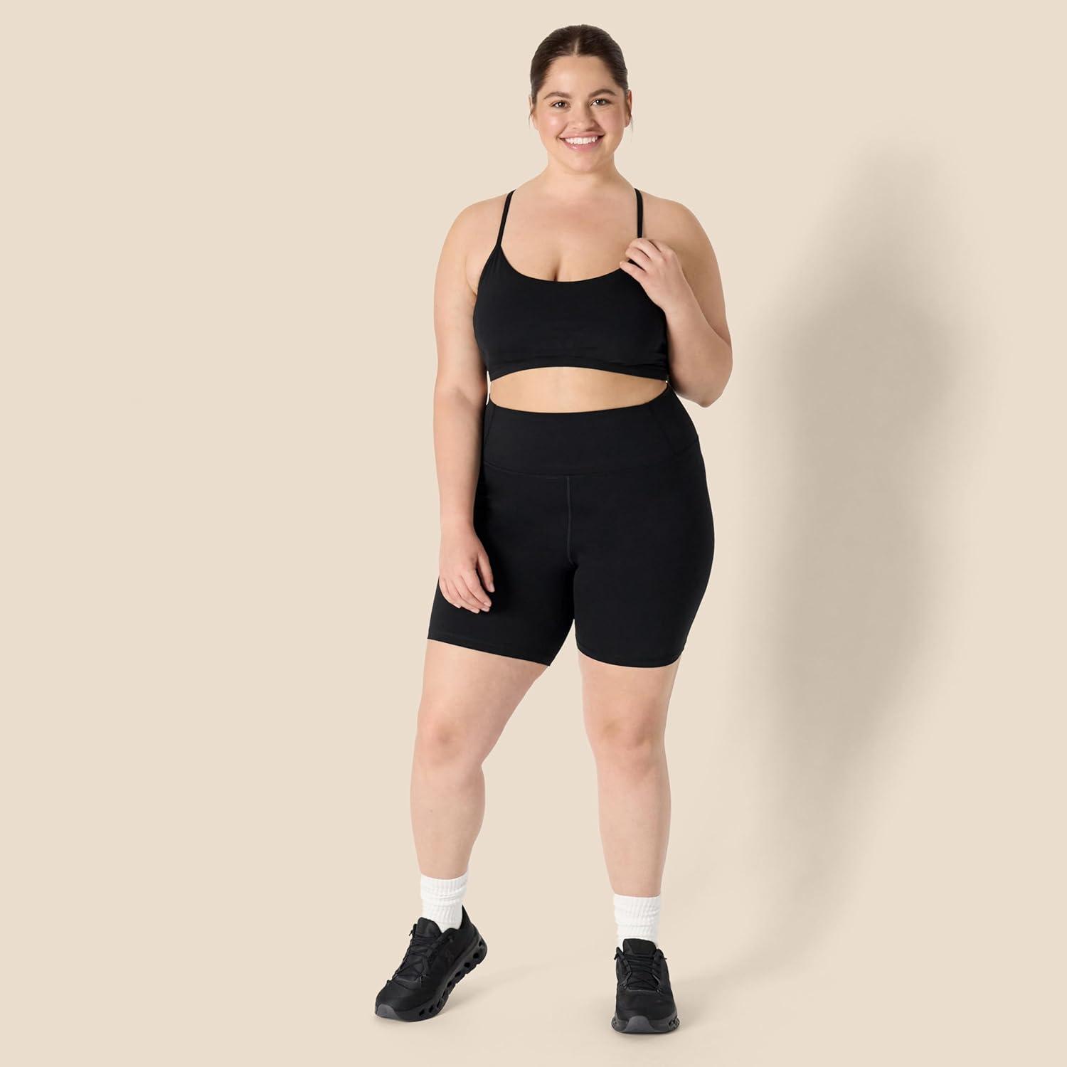 Amazon Essentials Women’s Active FormFlex Buttery Soft Light Support Y-Back Thin Strap Yoga Sports Bra(Black)