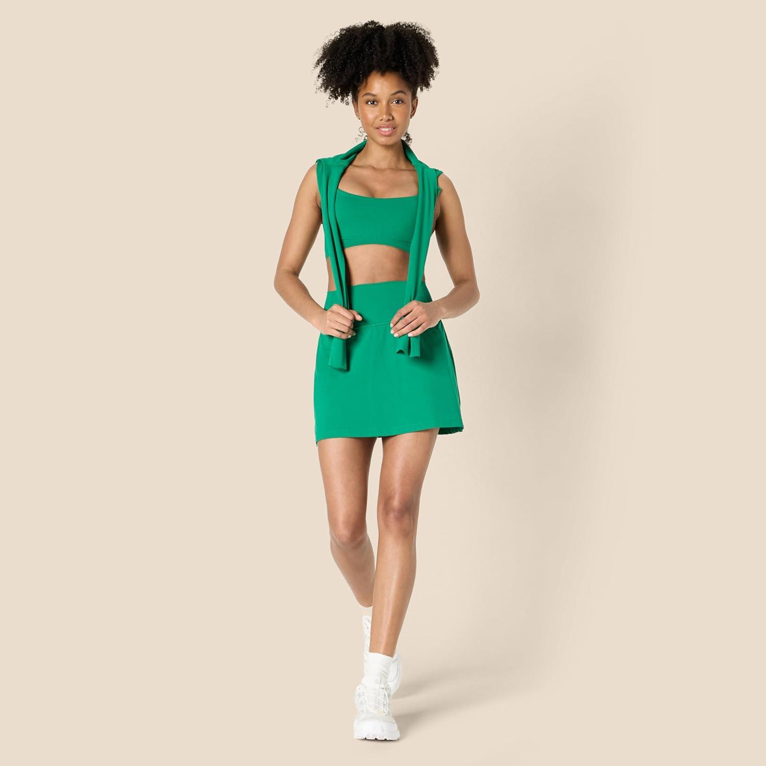 Amazon Essentials Women’s Active Formflex Buttery Soft Tennis Skirt with Built-in Shorts with Pockets(Emerald Green)
