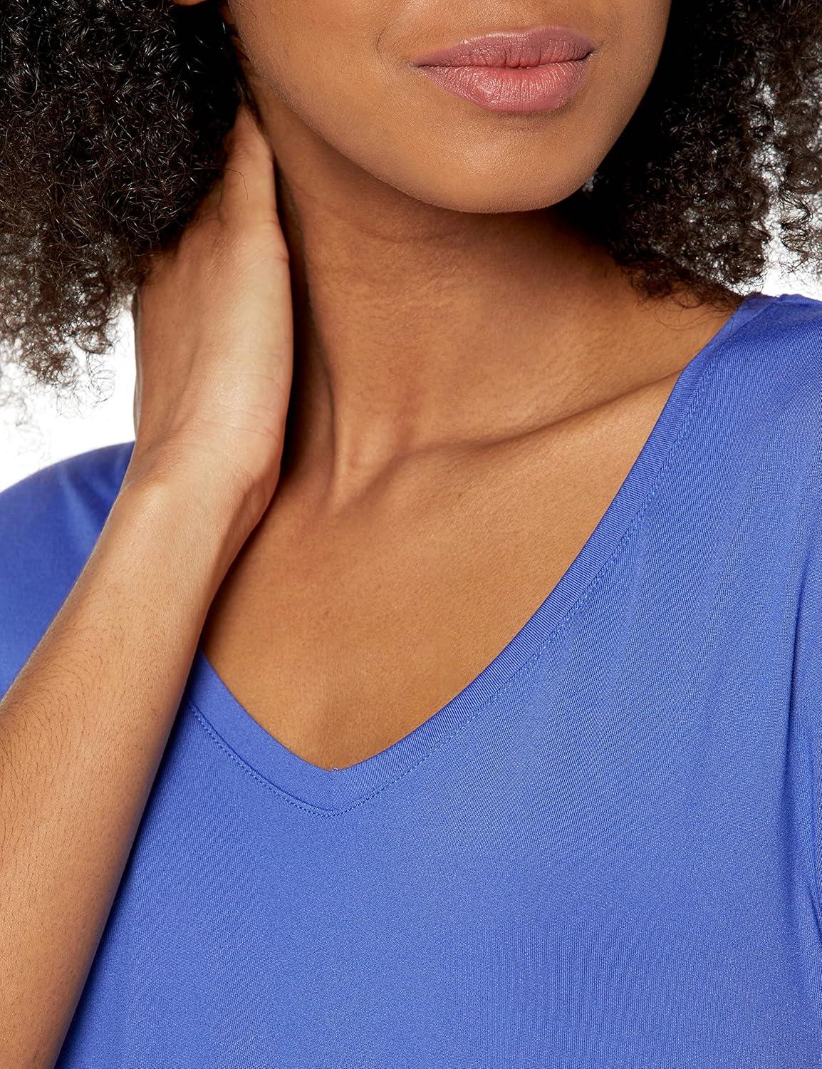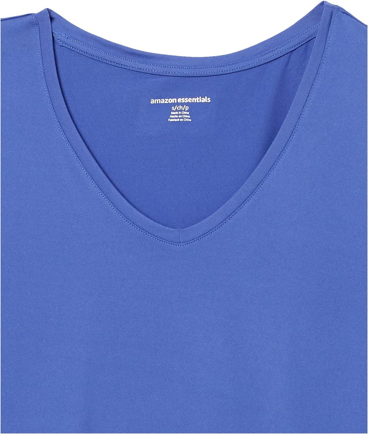 Amazon Essentials Women’s Active Quick Dry Tech Stretch Short-Sleeve V-Neck T-Shirt (Available in Plus Size), Pack of 2(Black/Bright Blue)