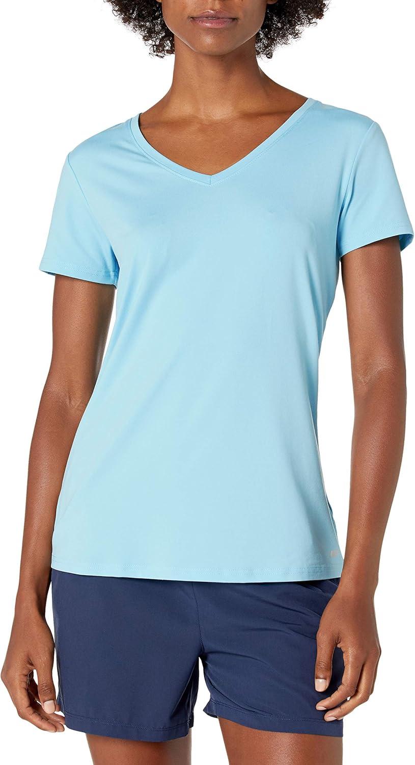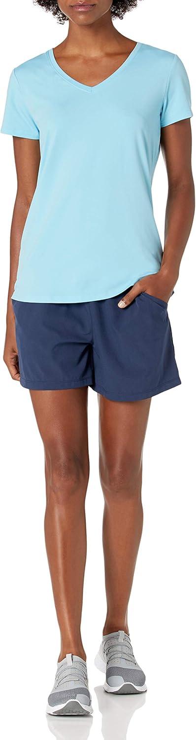 Amazon Essentials Women’s Active Quick Dry Tech Stretch Short-Sleeve V-Neck T-Shirt (Available in Plus Size), Pack of 2(Blue/Teal Green Space Dye)