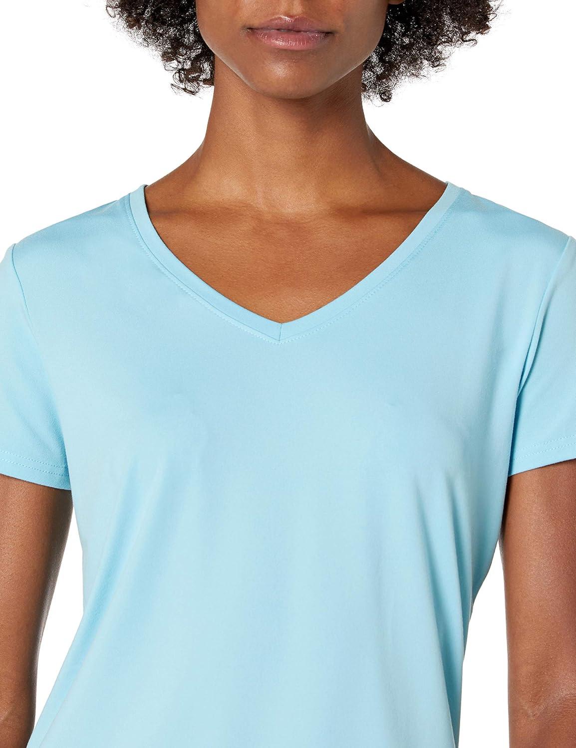 imageAmazon Essentials Womens Active Quick Dry Tech Stretch ShortSleeve VNeck TShirt Available in Plus Size Pack of 2BlueTeal Green Space Dye