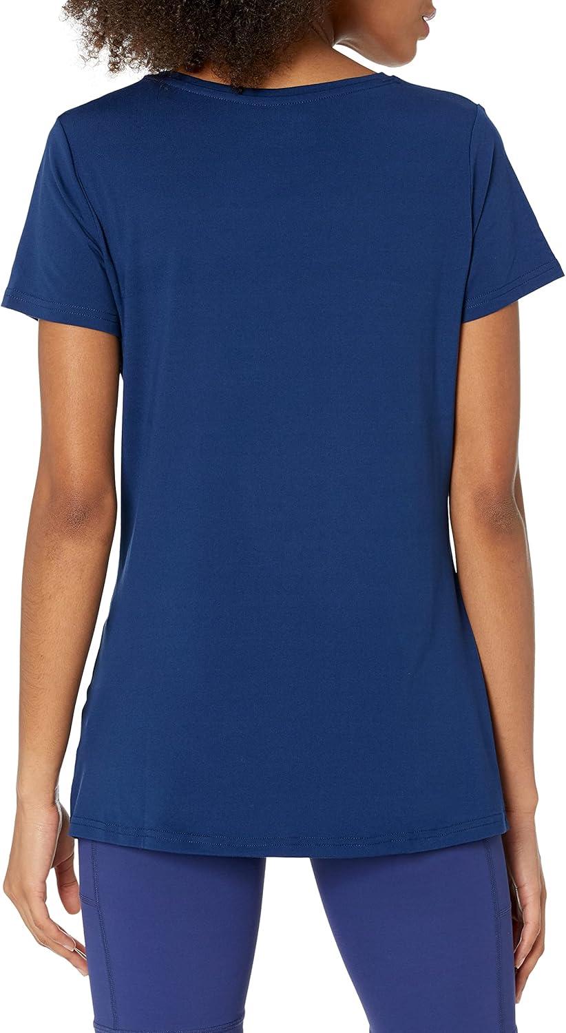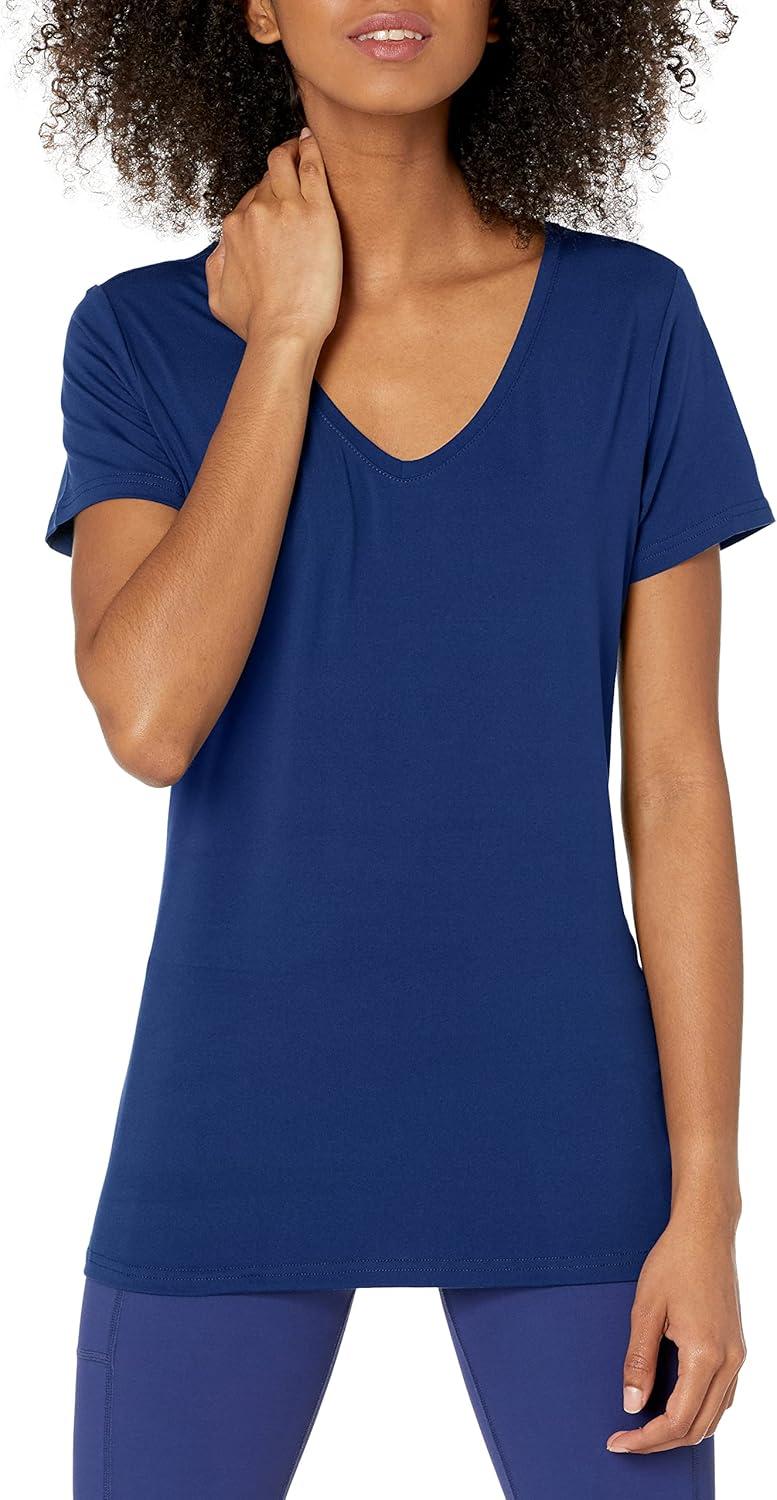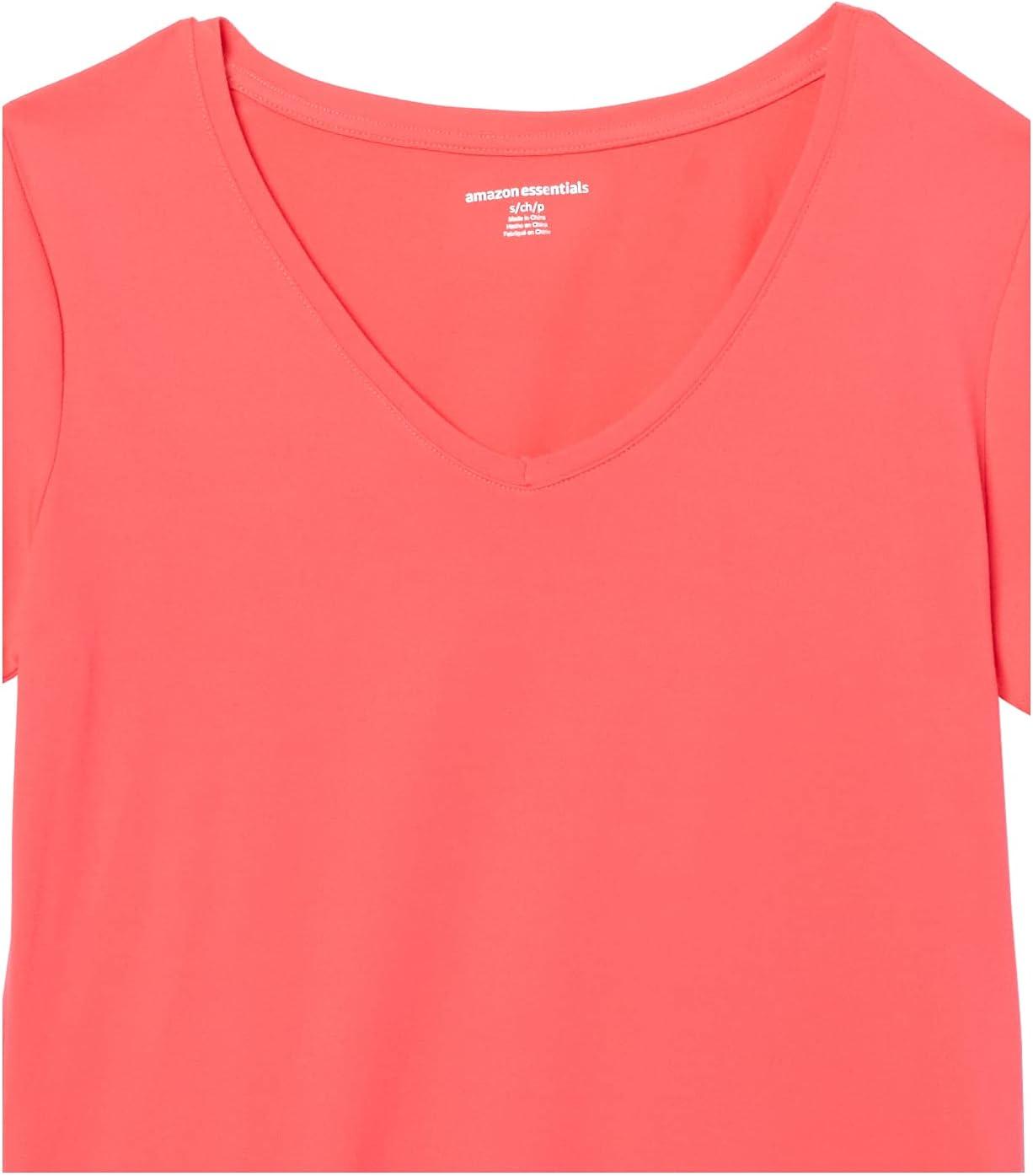 Amazon Essentials Women’s Active Quick Dry Tech Stretch Short-Sleeve V-Neck T-Shirt (Available in Plus Size), Pack of 2(Coral Orange/Navy)