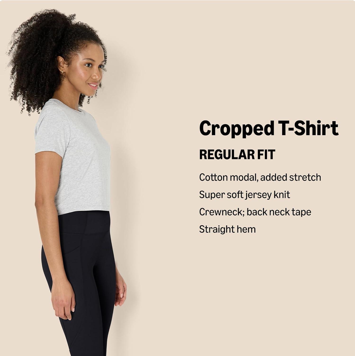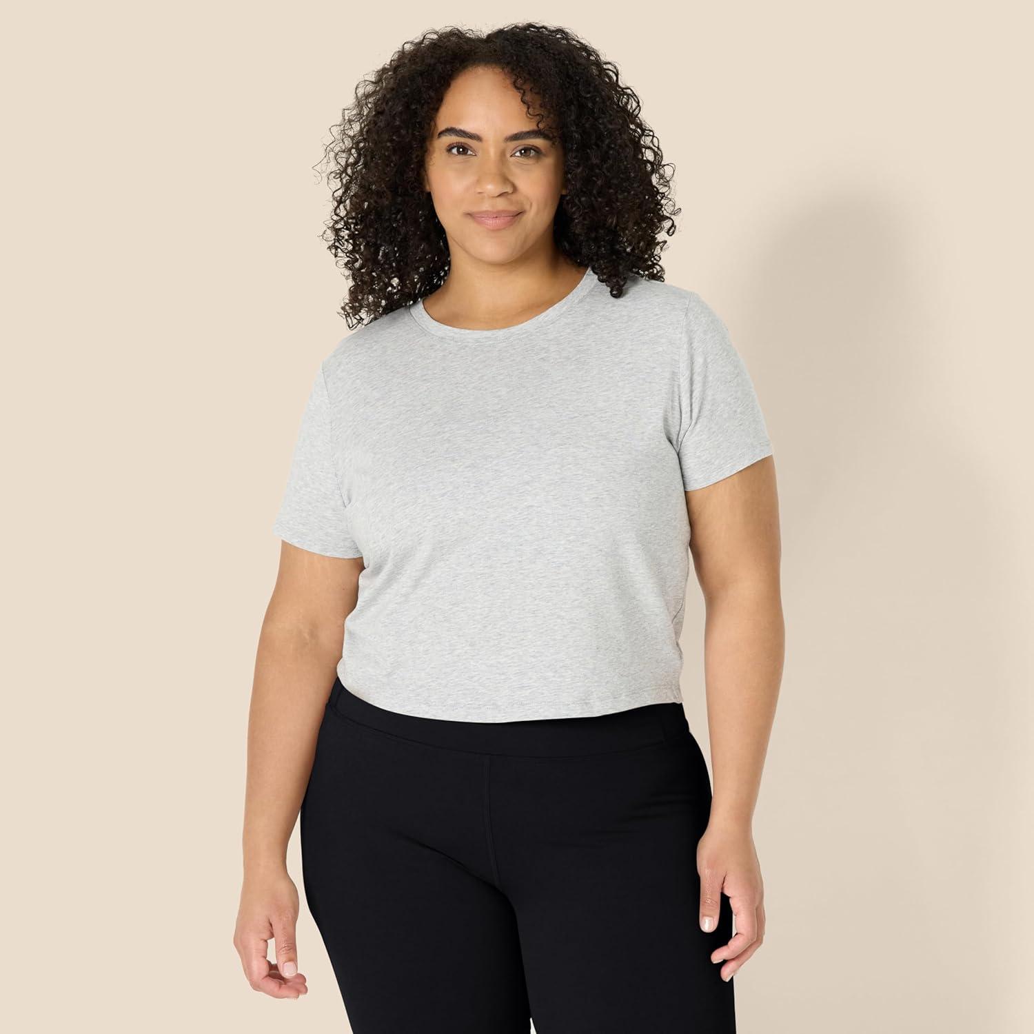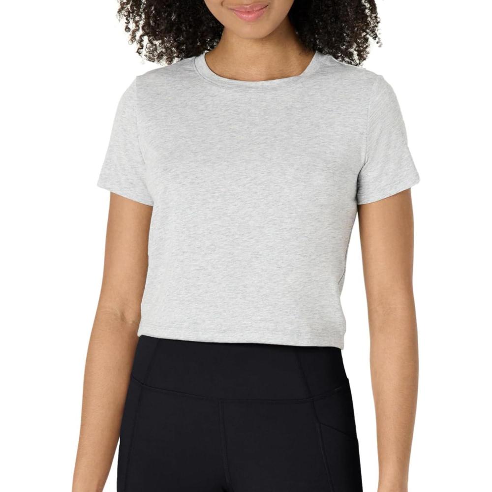 Amazon Essentials Womens Active Soft Cotton Crewneck Short Sleeve Yoga Workout Lightweight Cropped T-Shirt(Light Grey Heather)