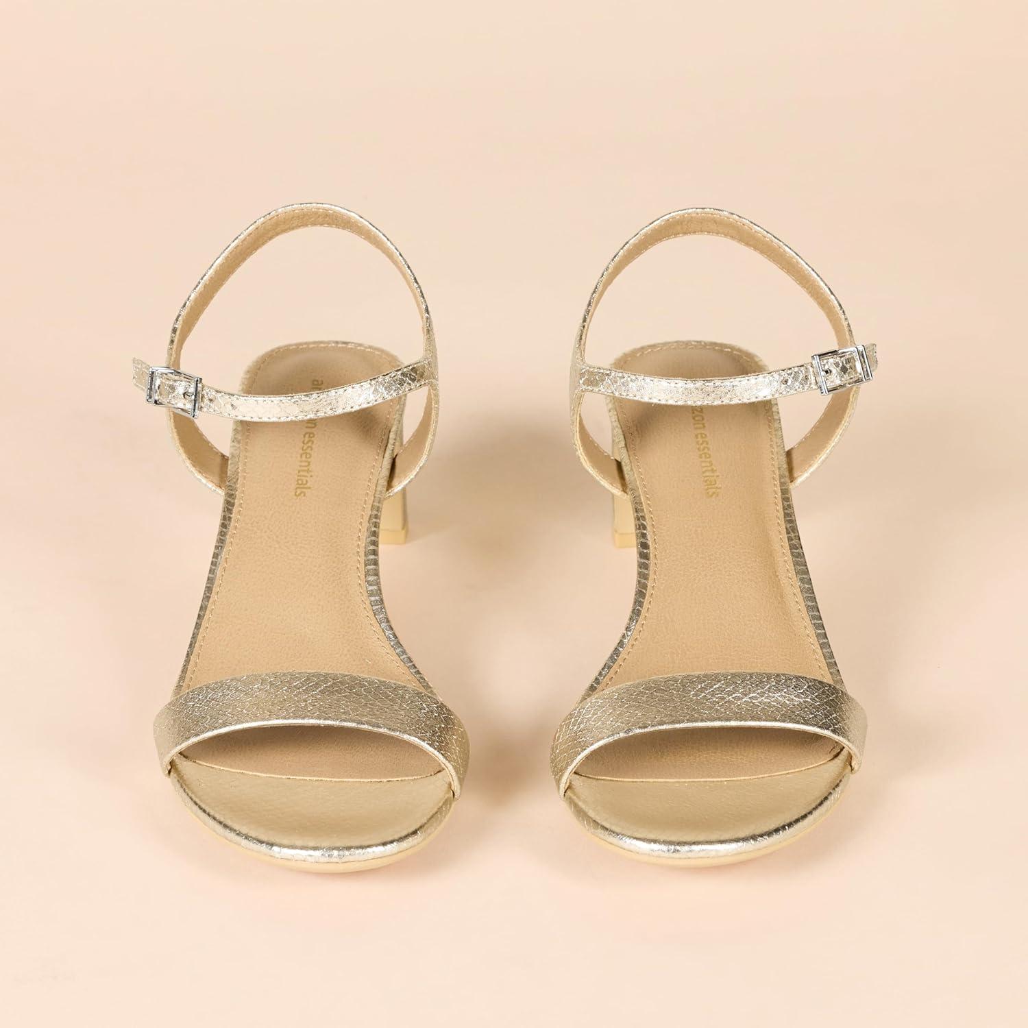 Amazon Essentials Women’s Ankle Strap Low Heel(Metallic Gold Faux Snake)