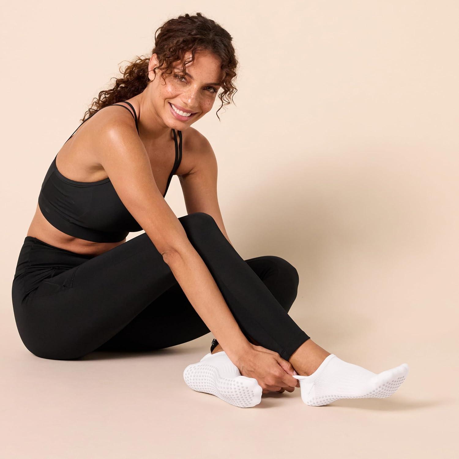 Amazon Essentials Women’s Athletic Grip Ankle Socks, 4 Pairs(White)