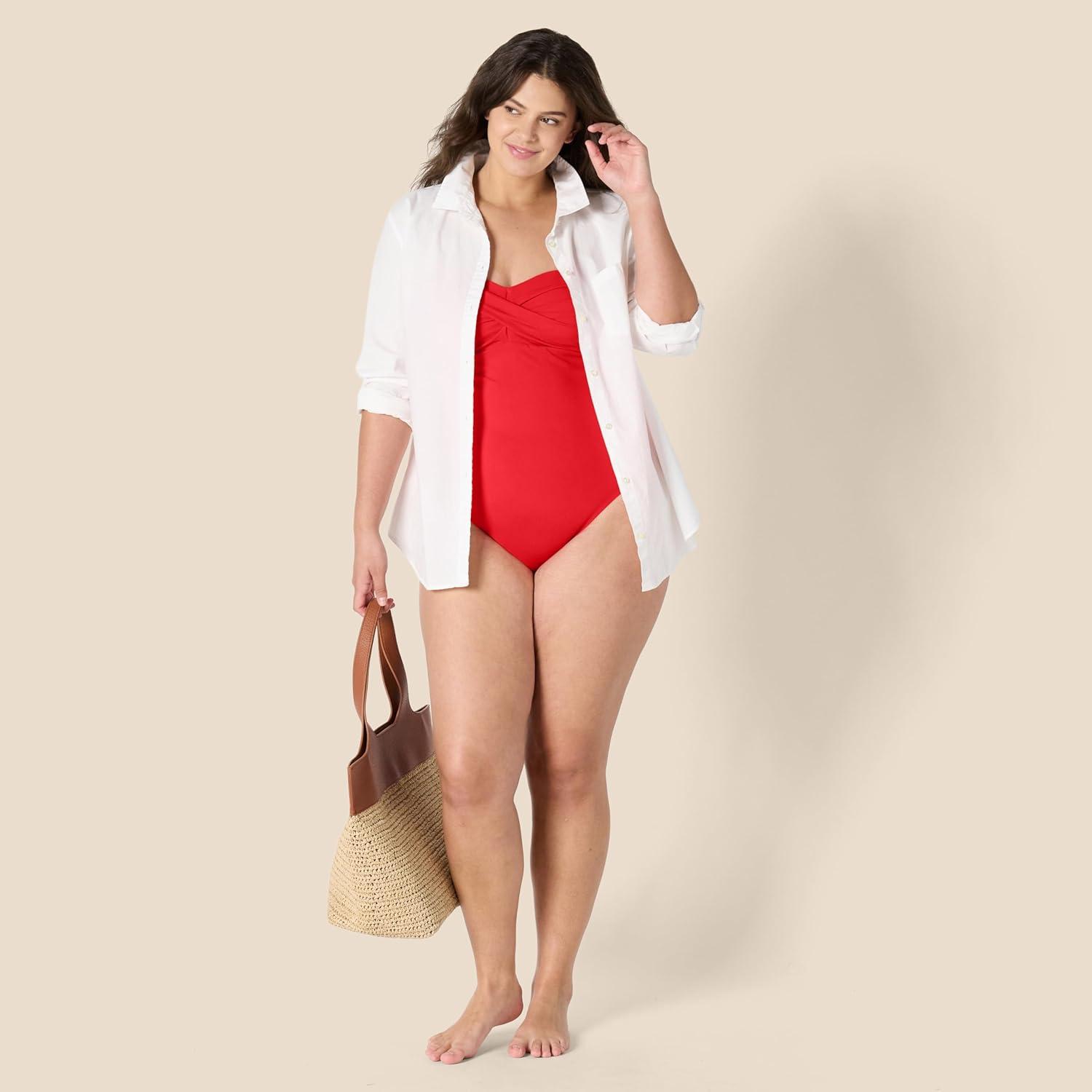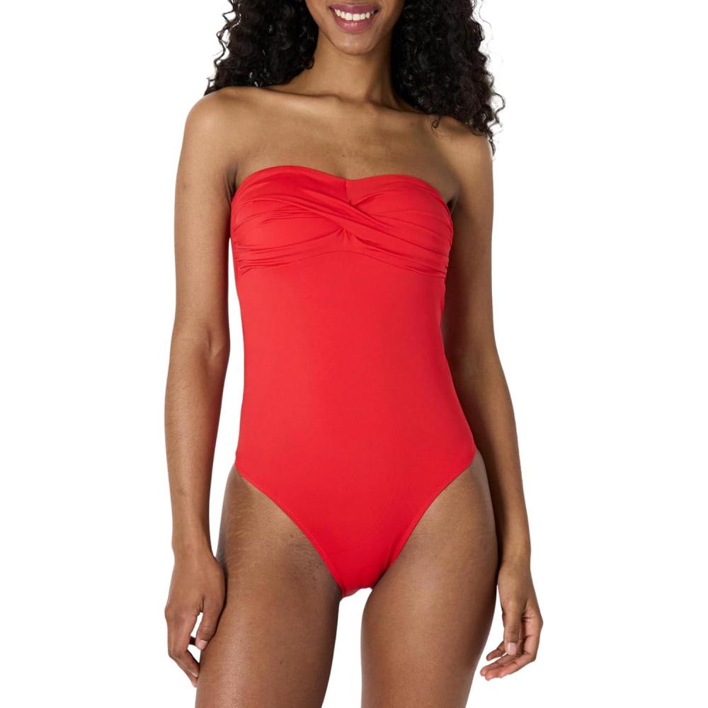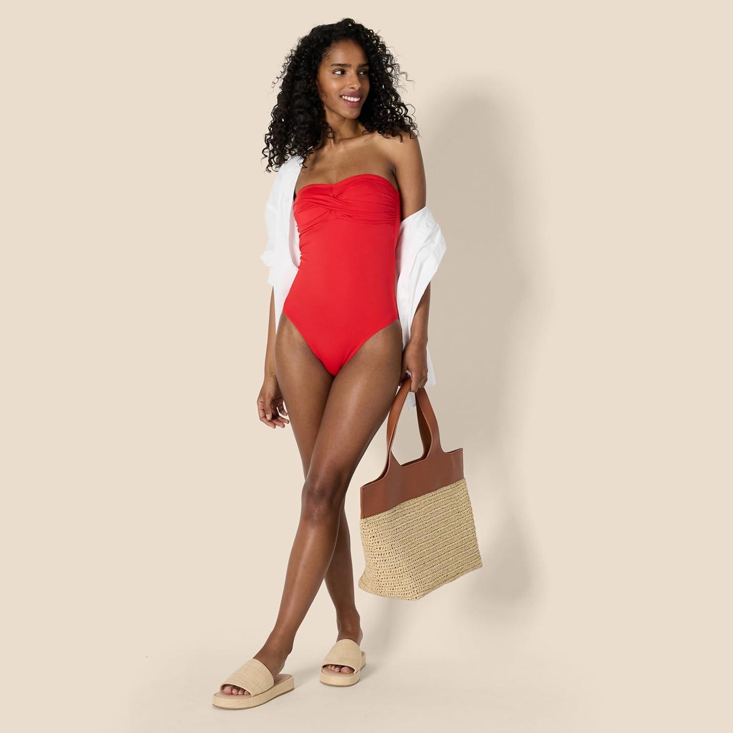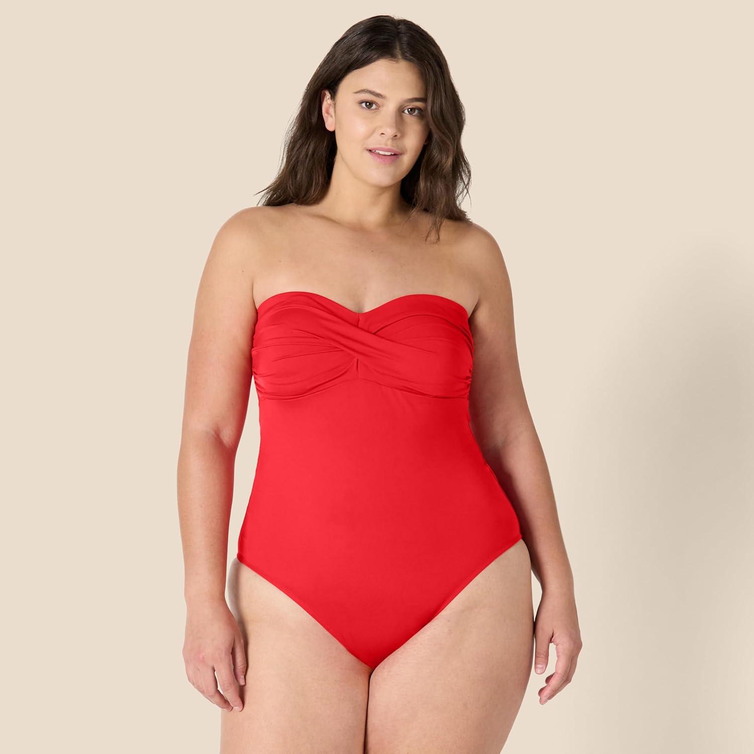 Amazon Essentials Women’s Bandeau One Piece Swimsuit(Bright Poppy Red)