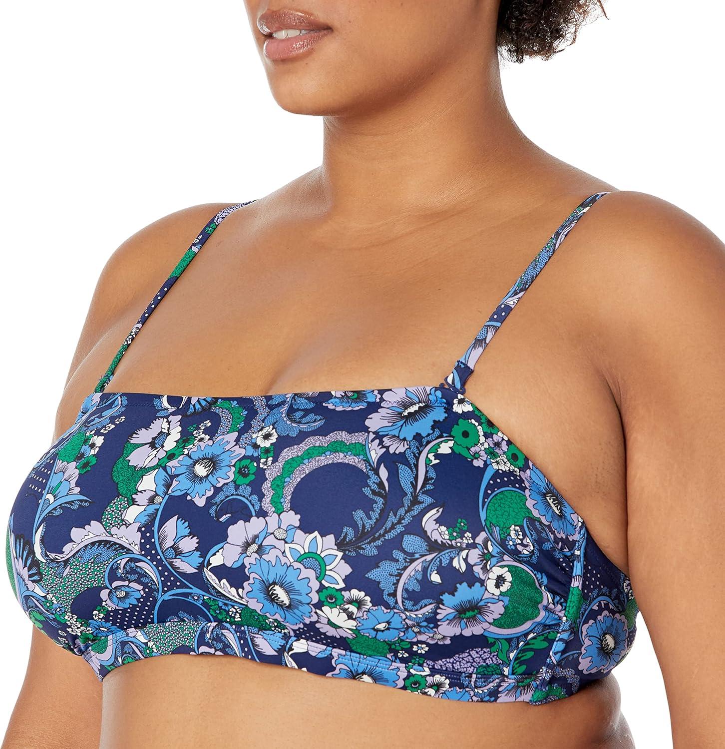 Amazon Essentials Women’s Bandeau Swimsuit Top (Available in Plus Size) – Discontinued Colors(Deep Blue Paisley)