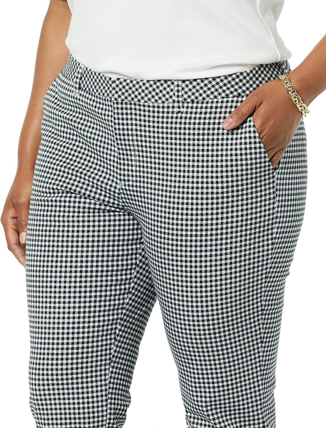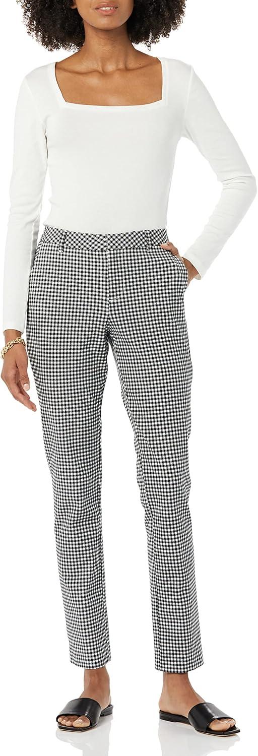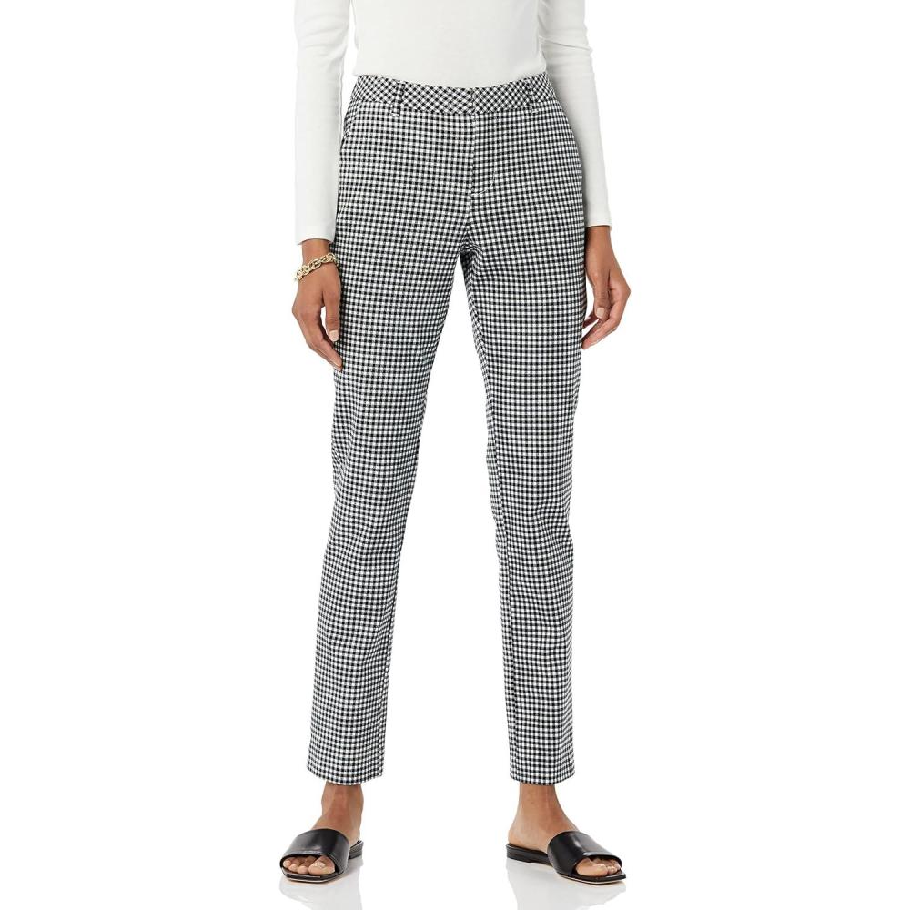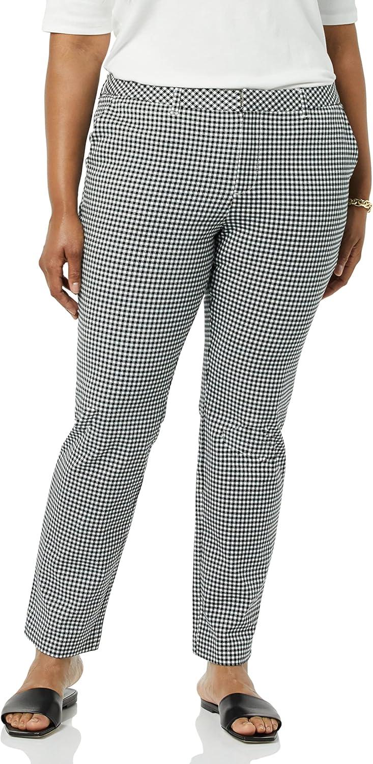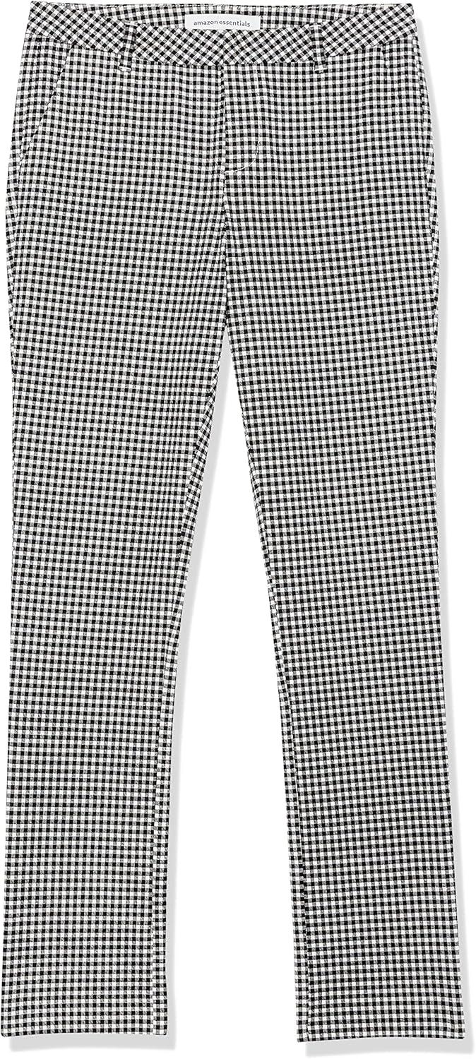 Amazon Essentials Women’s Bi-Stretch Full Length Straight Leg Pant(White Gingham)