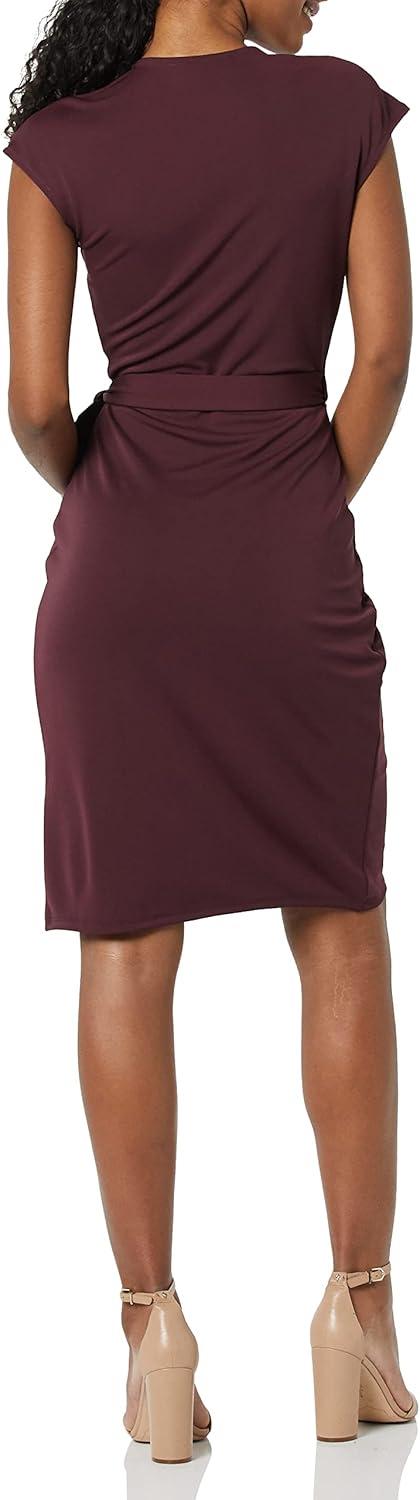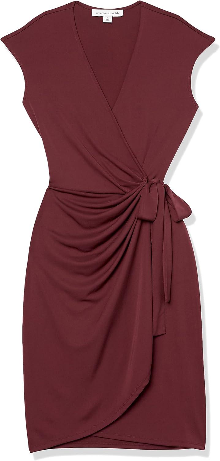 Amazon Essentials Women's Classic Cap Sleeve Wrap Dress (Available in Plus Size)(Burgundy)