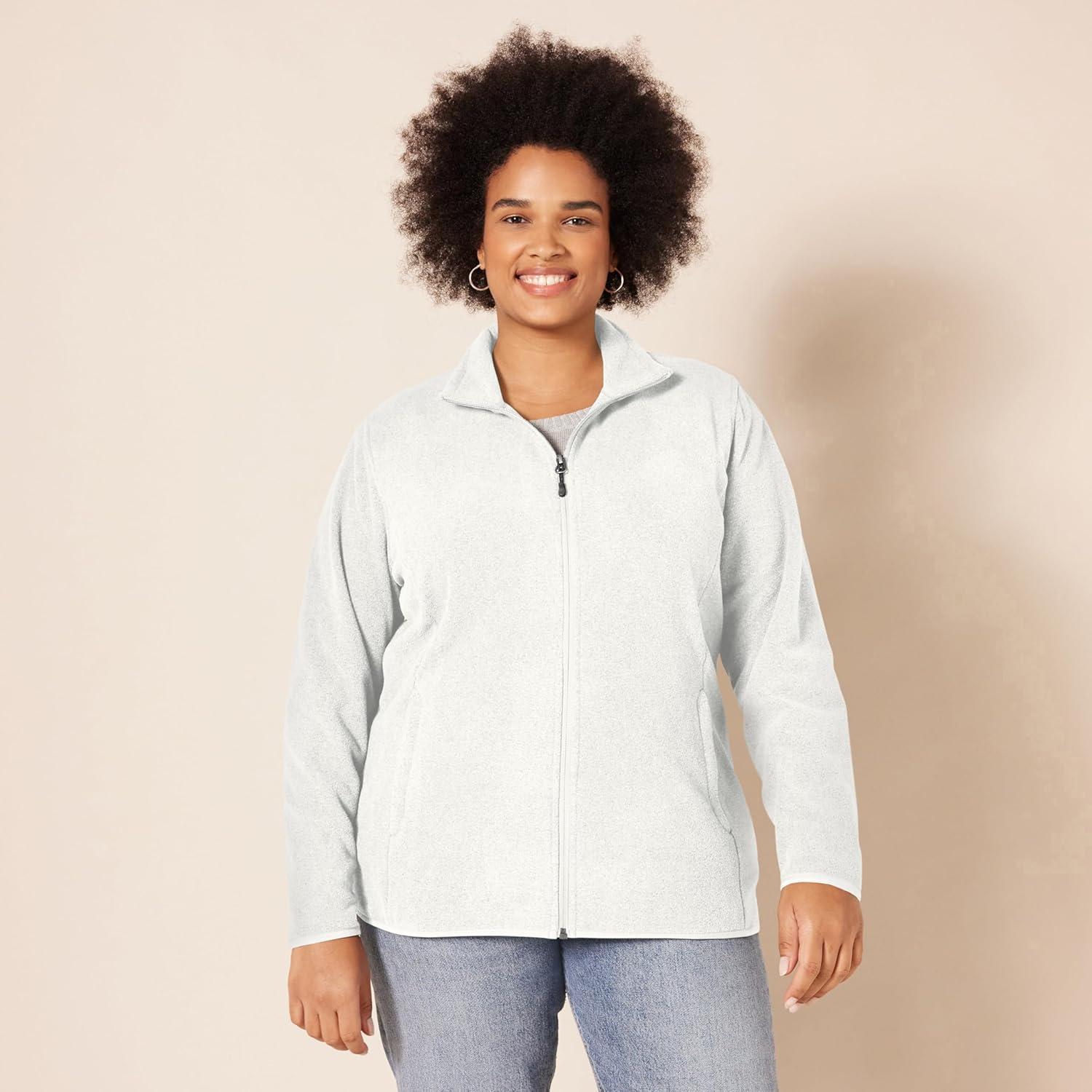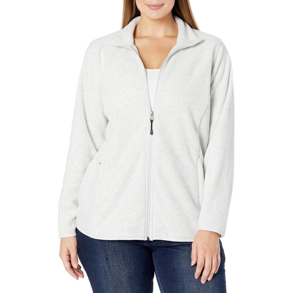 Amazon Essentials Women’s Classic-Fit Full-Zip Polar Soft Fleece Jacket (Available in Plus Size)(Light Grey Heather)