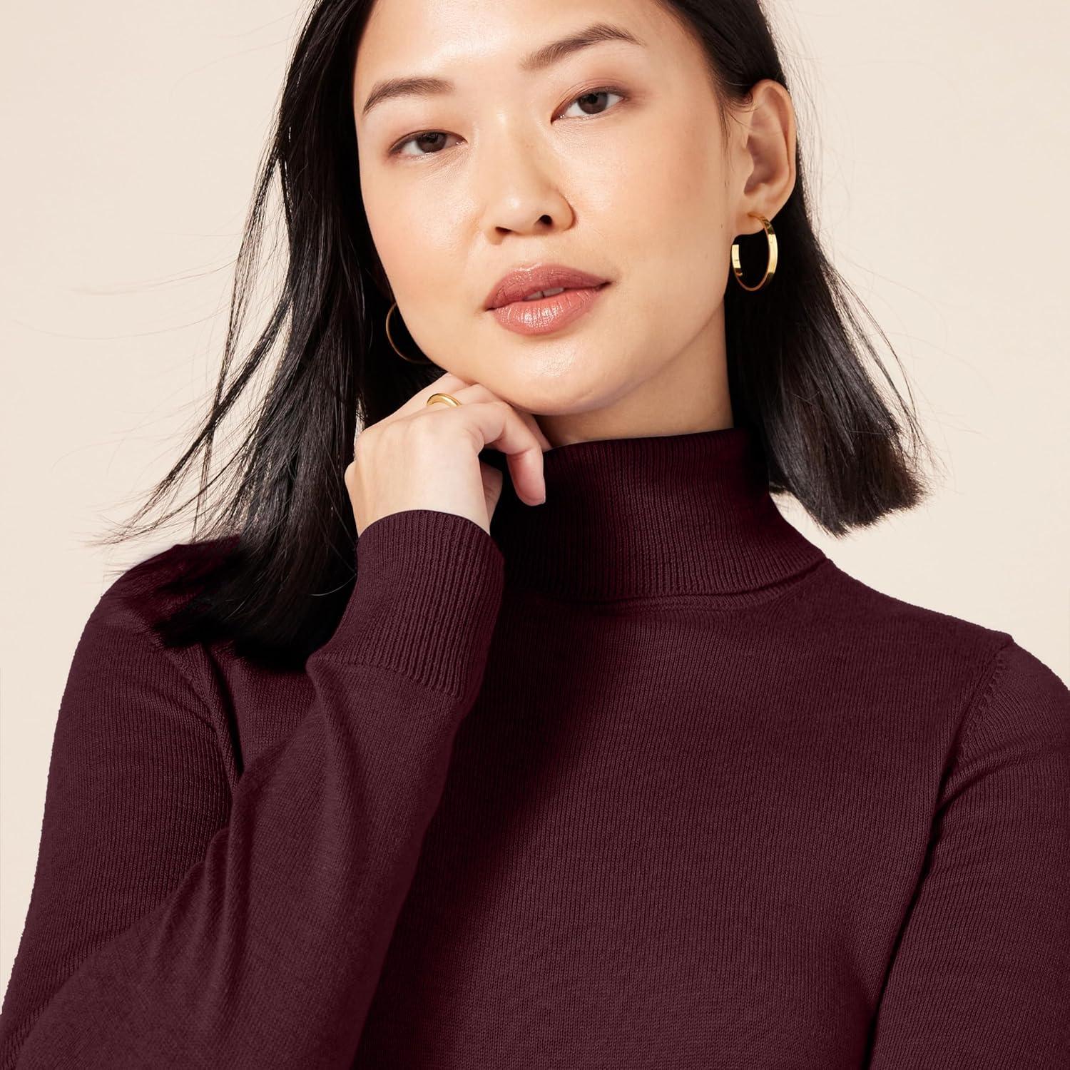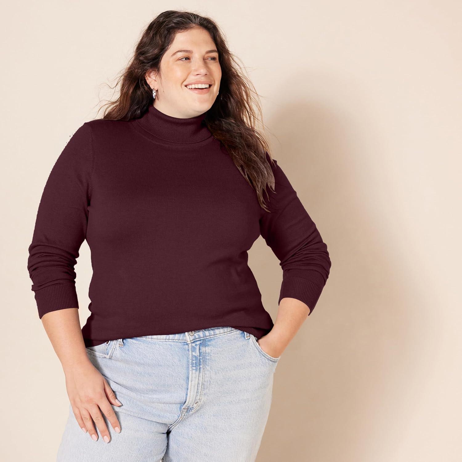 Amazon Essentials Women’s Classic-Fit Lightweight Long-Sleeve Turtleneck Sweater (Available in Plus Size)(Burgundy)