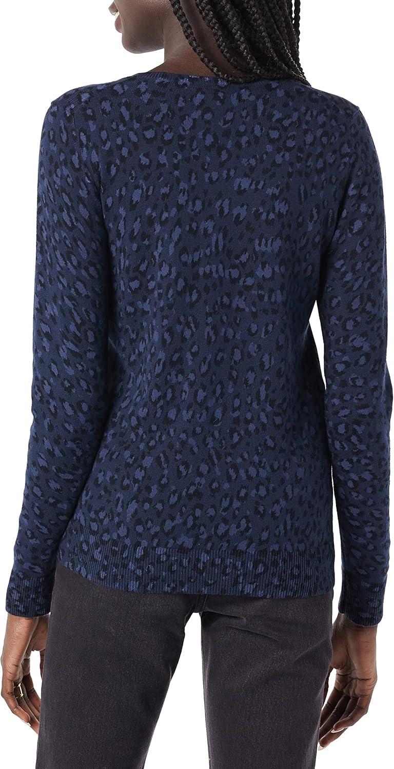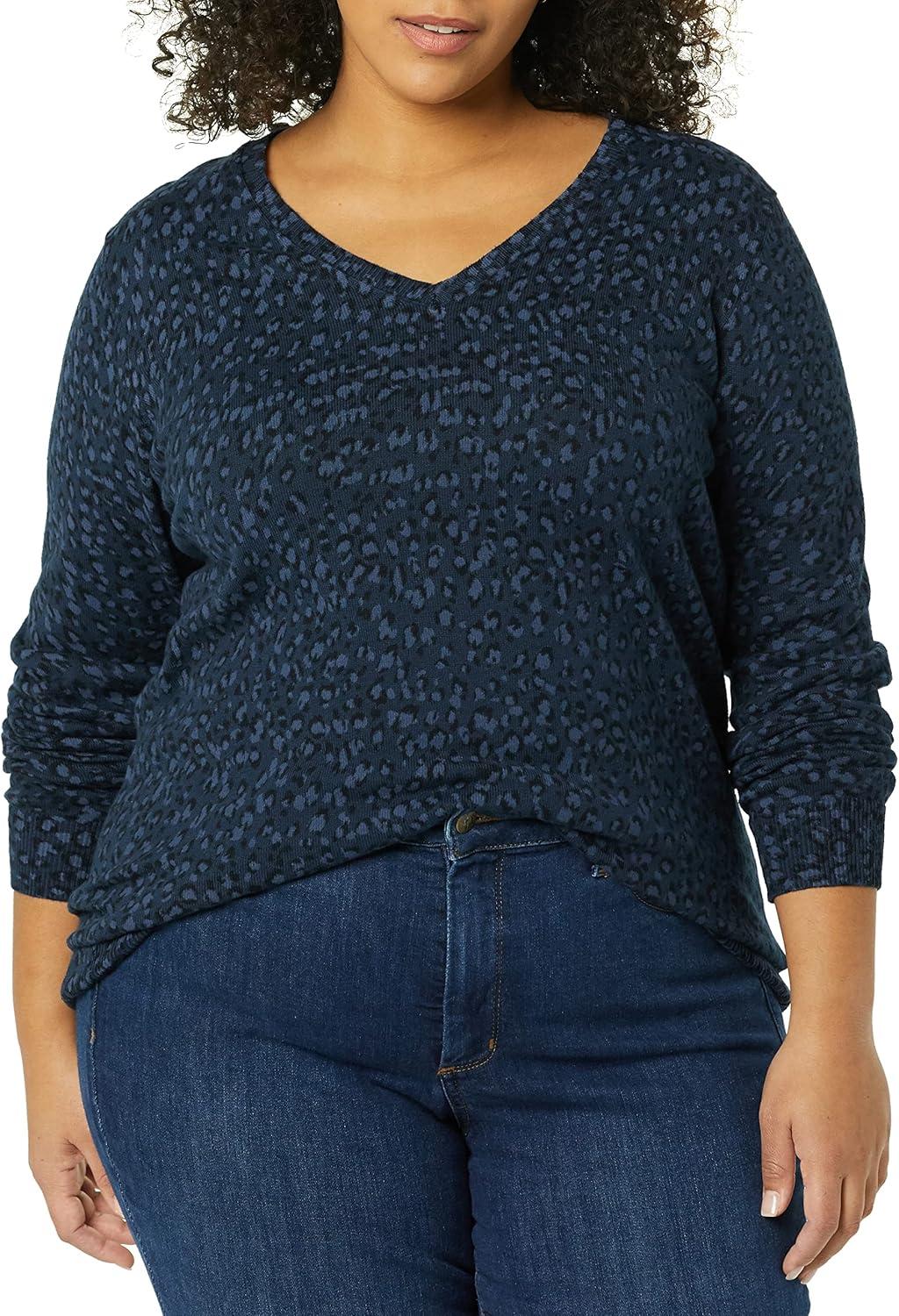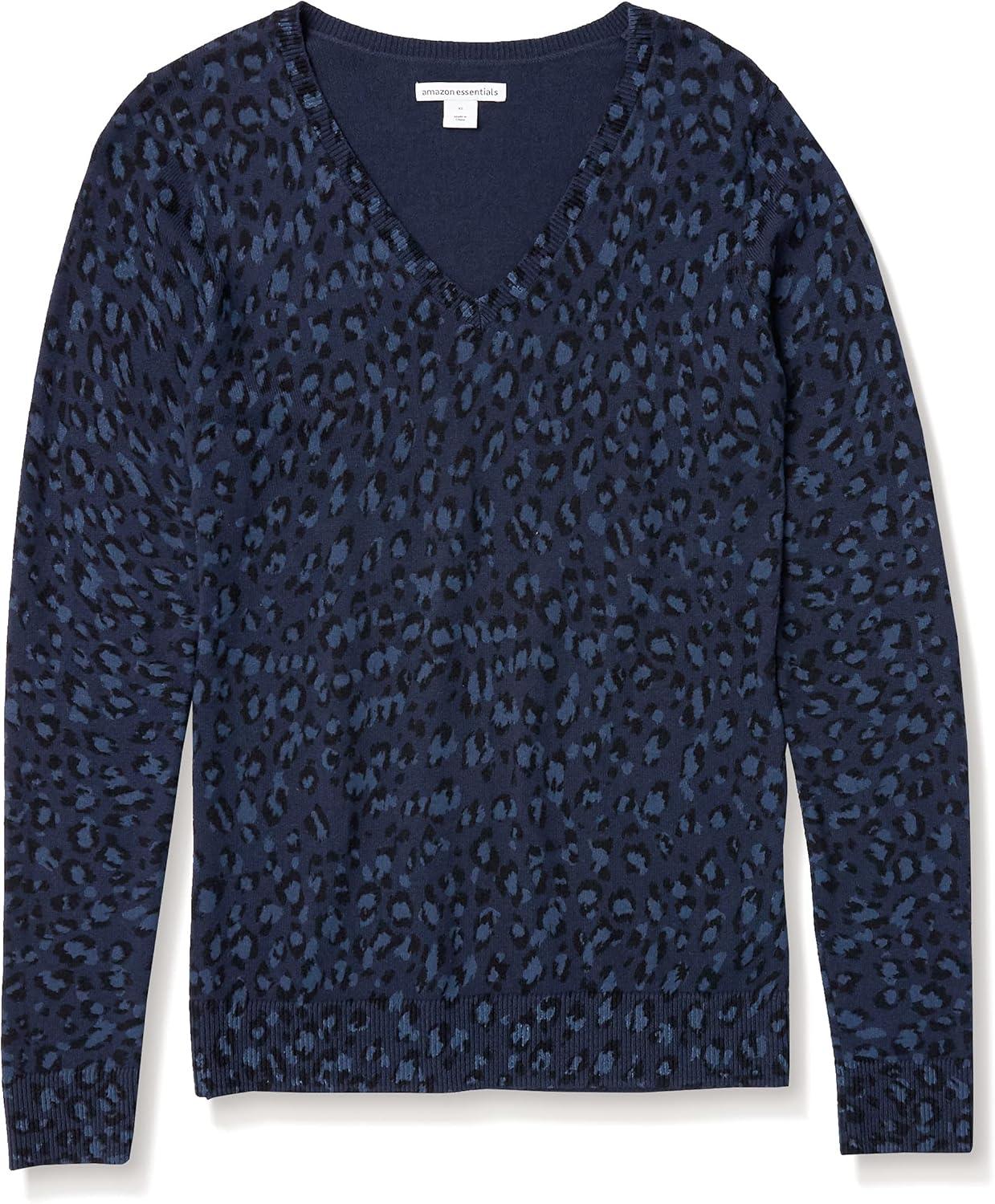 Amazon Essentials Women’s Classic-Fit Lightweight Long-Sleeve V-Neck Sweater (Available in Plus Size)(Black Navy Cheetah)