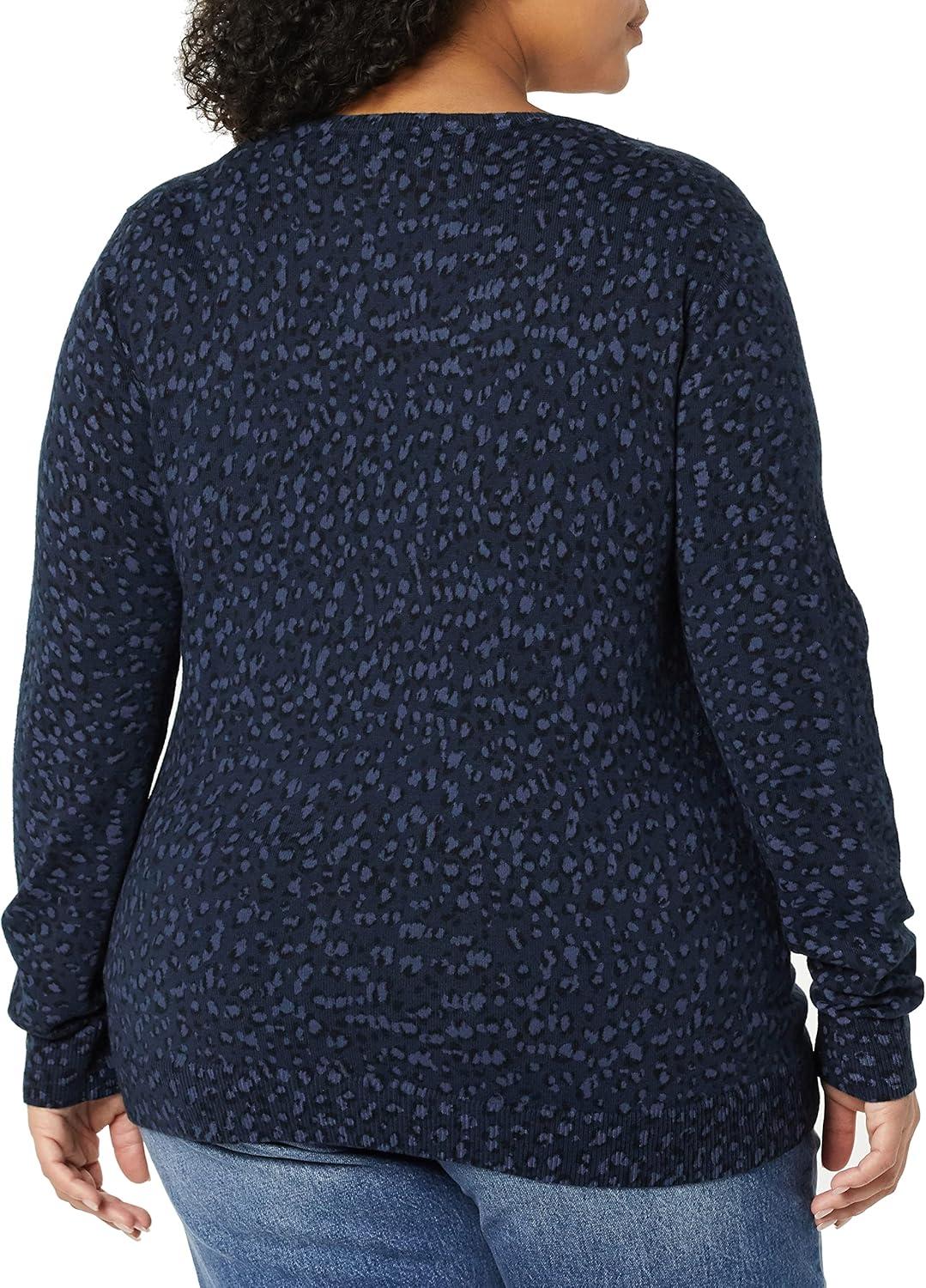 Amazon Essentials Women's Classic-Fit Lightweight Long-Sleeve V-Neck Sweater (Available in Plus Size)(Black Navy Cheetah)