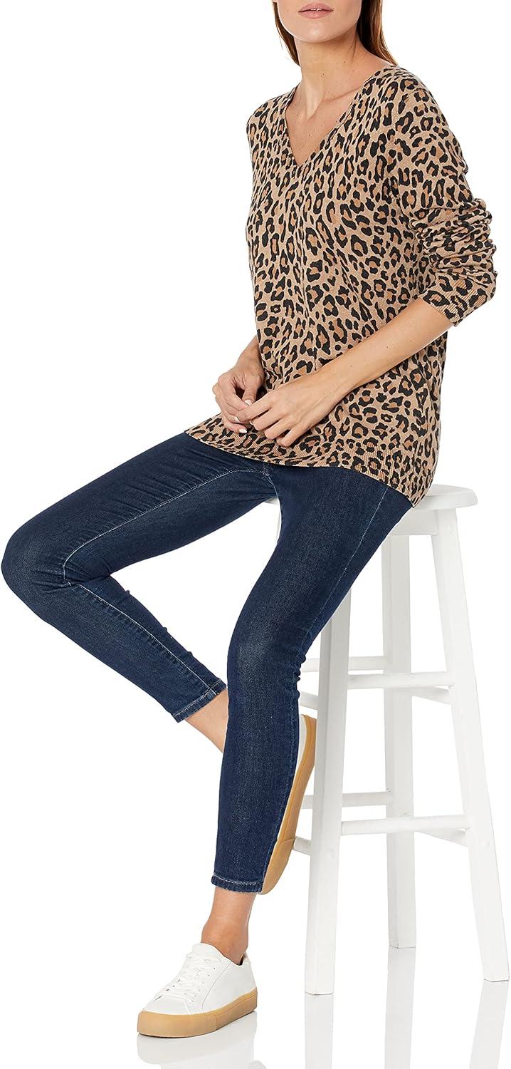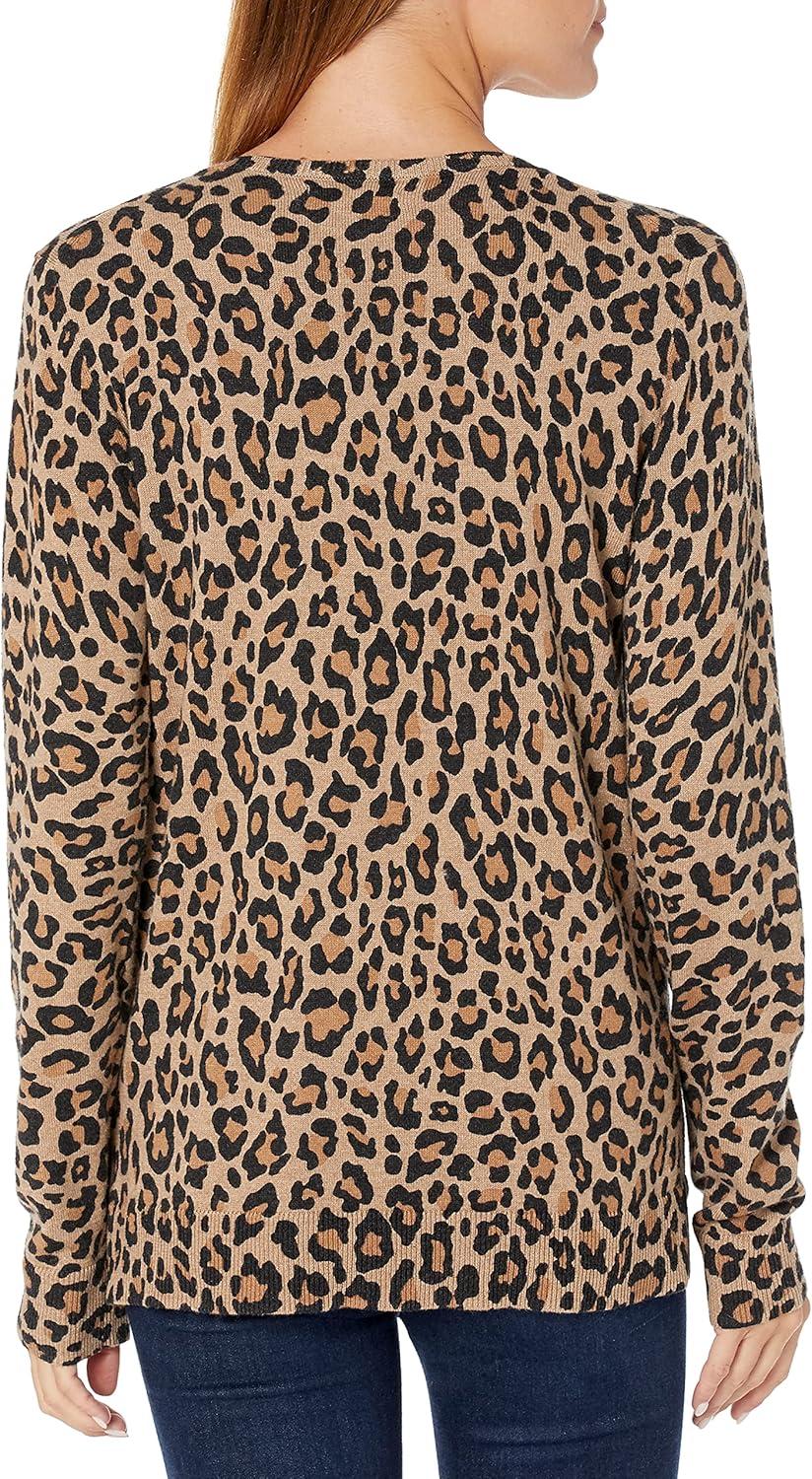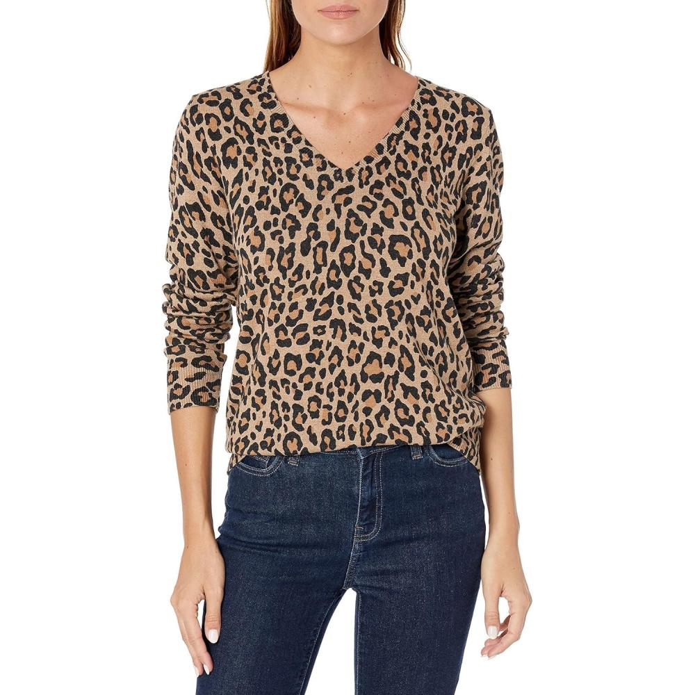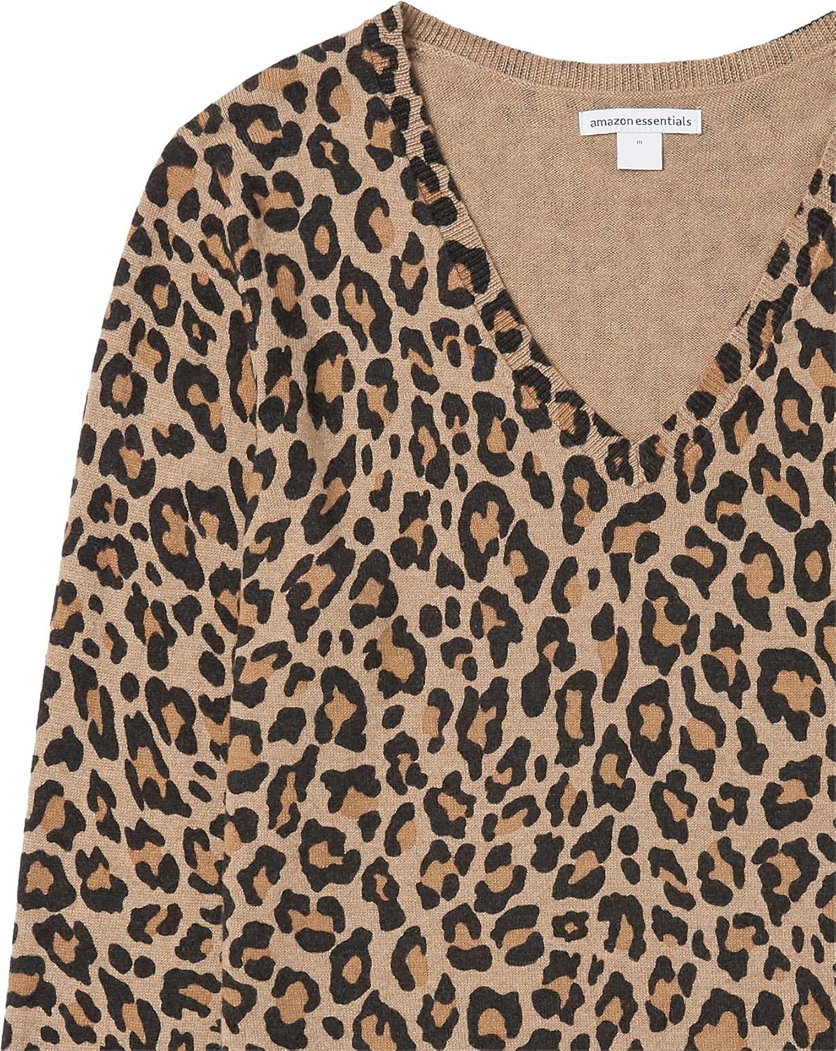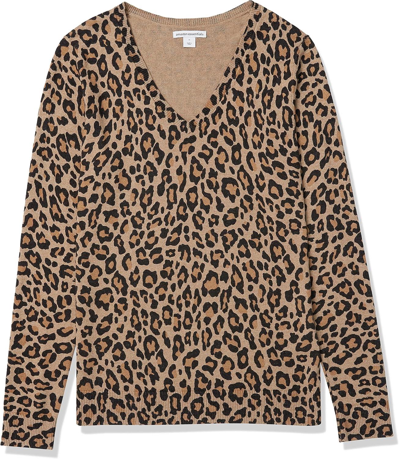 Amazon Essentials Women’s Classic-Fit Lightweight Long-Sleeve V-Neck Sweater (Available in Plus Size)(Camel Leopard)
