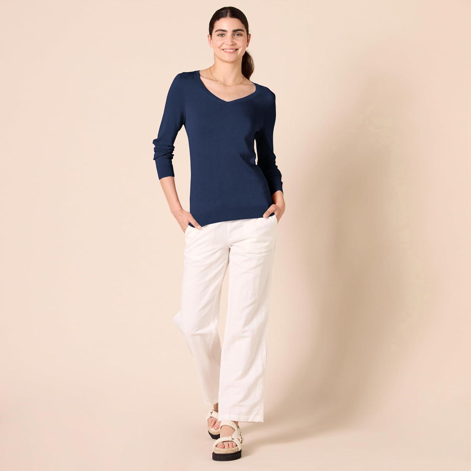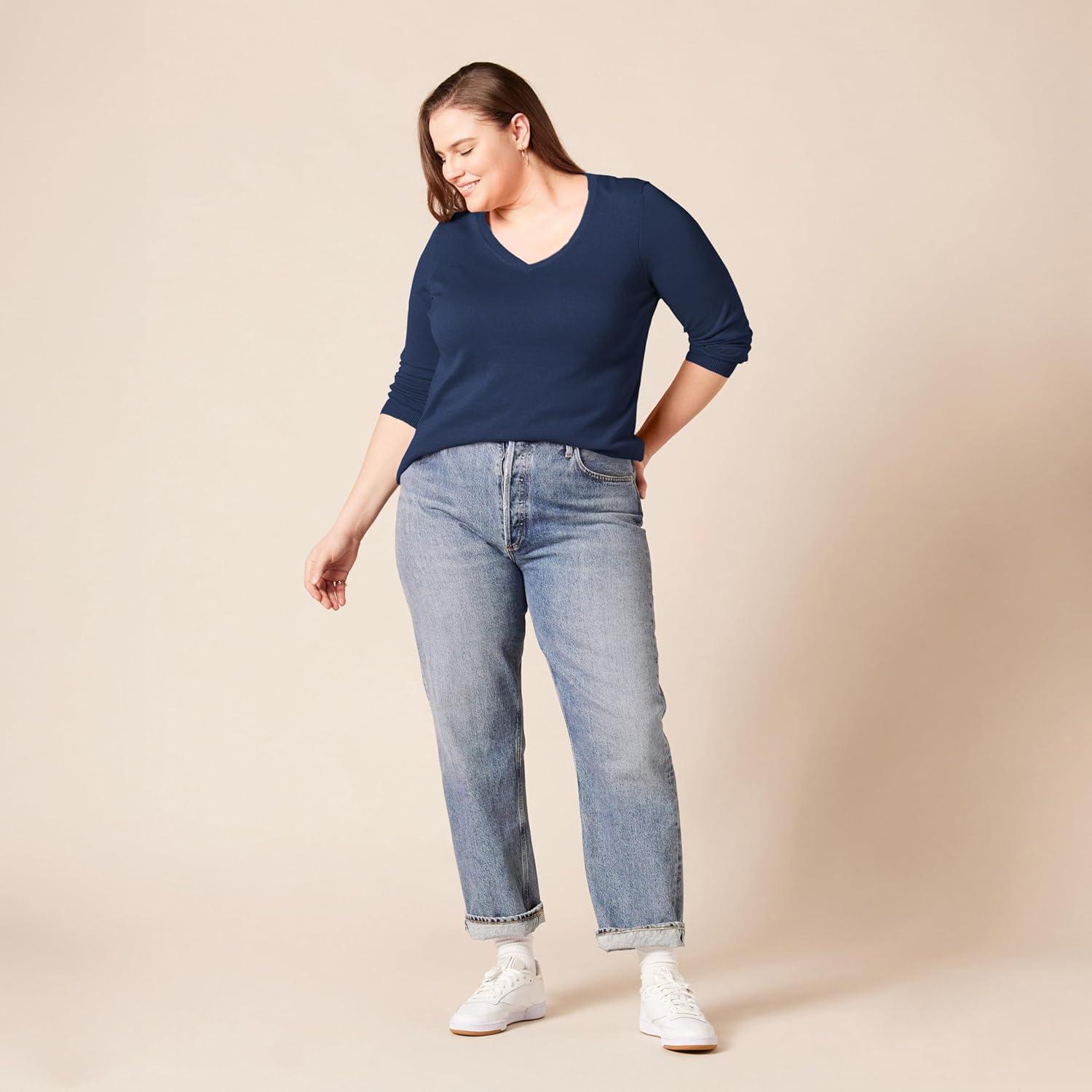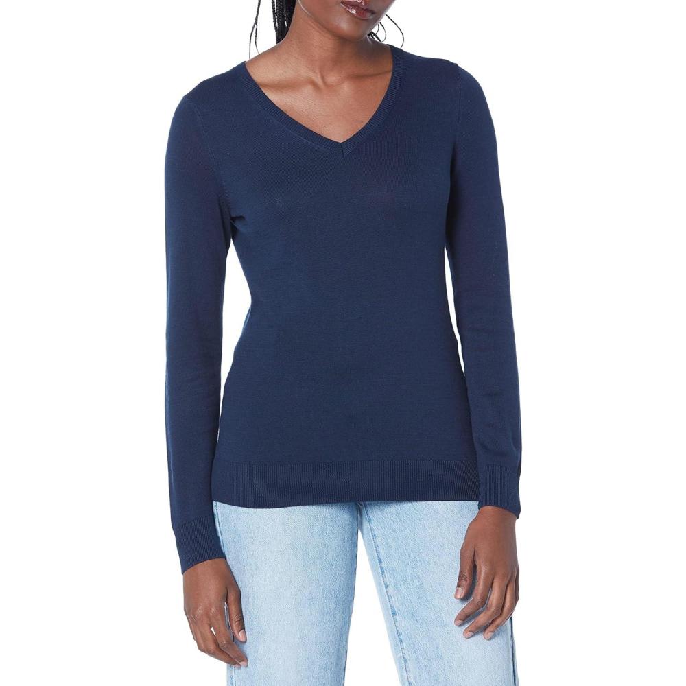 Amazon Essentials Women’s Classic-Fit Lightweight Long-Sleeve V-Neck Sweater (Available in Plus Size)(Navy)