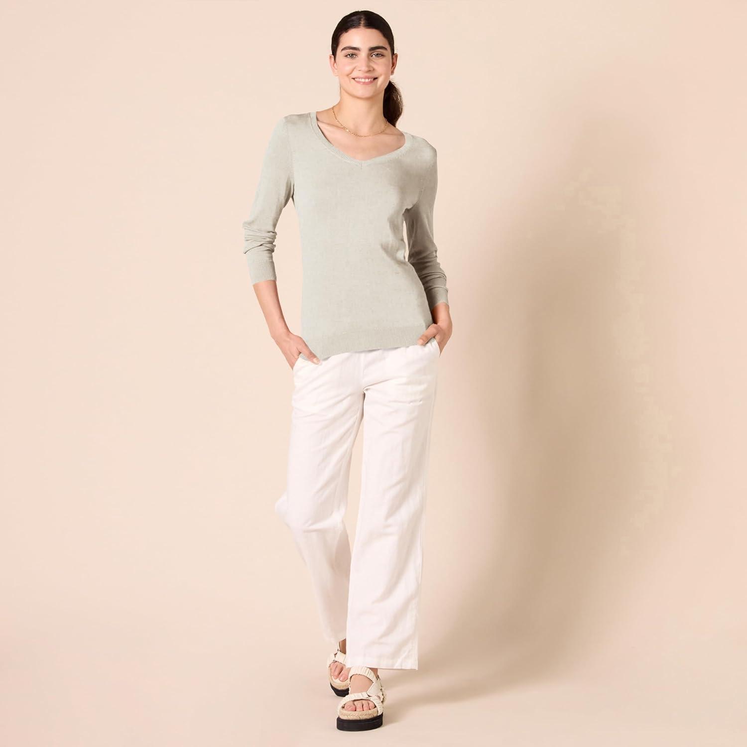 Amazon Essentials Women’s Classic-Fit Lightweight Long-Sleeve V-Neck Sweater (Available in Plus Size)(Oatmeal Heather)