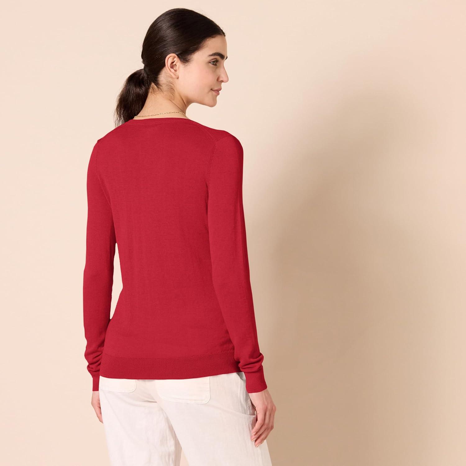 Amazon Essentials Women’s Classic-Fit Lightweight Long-Sleeve V-Neck Sweater (Available in Plus Size)(Red)