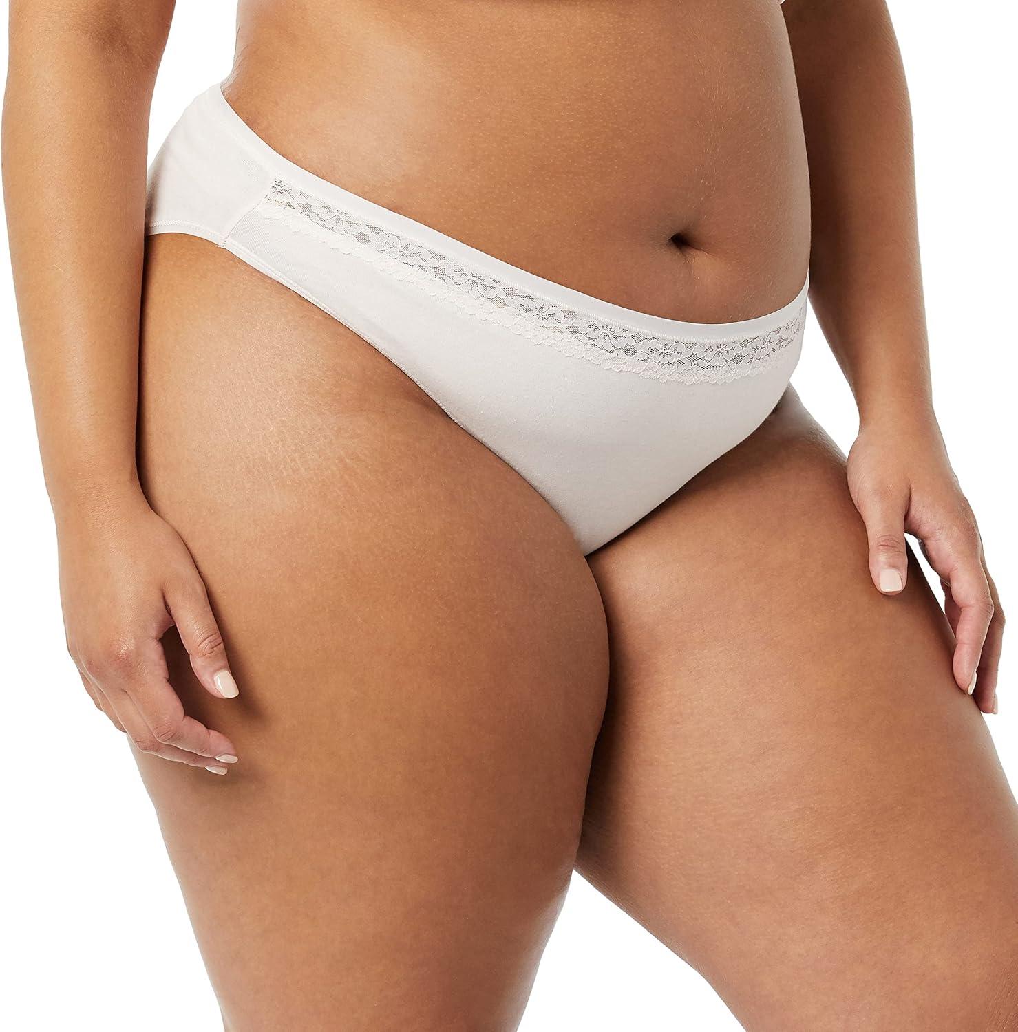 Amazon Essentials Women’s Cotton and Lace Bikini Underwear, Pack of 4(Bright White/Pale Pink/Mauve)