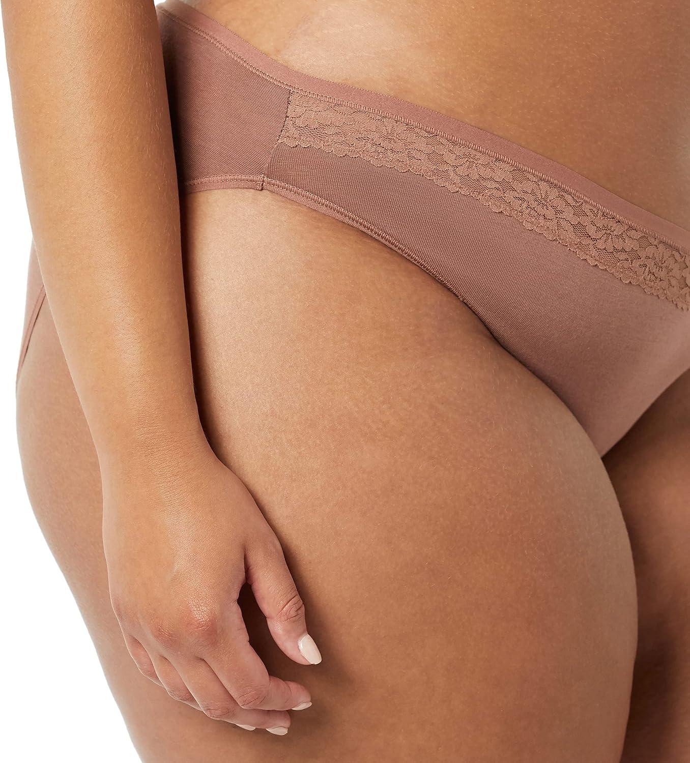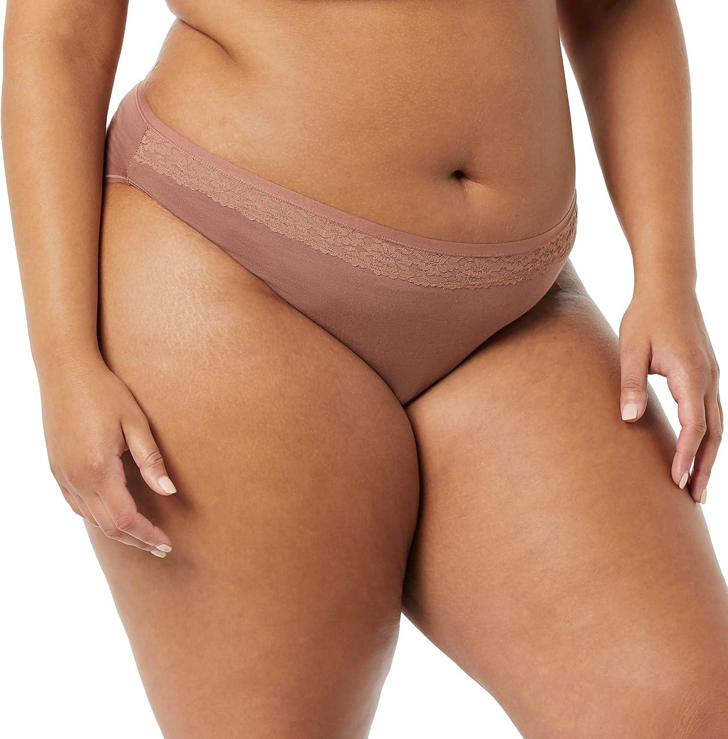 Amazon Essentials Women’s Cotton and Lace Bikini Underwear, Pack of 4(Salmon Pink/Brown/Light Rose)