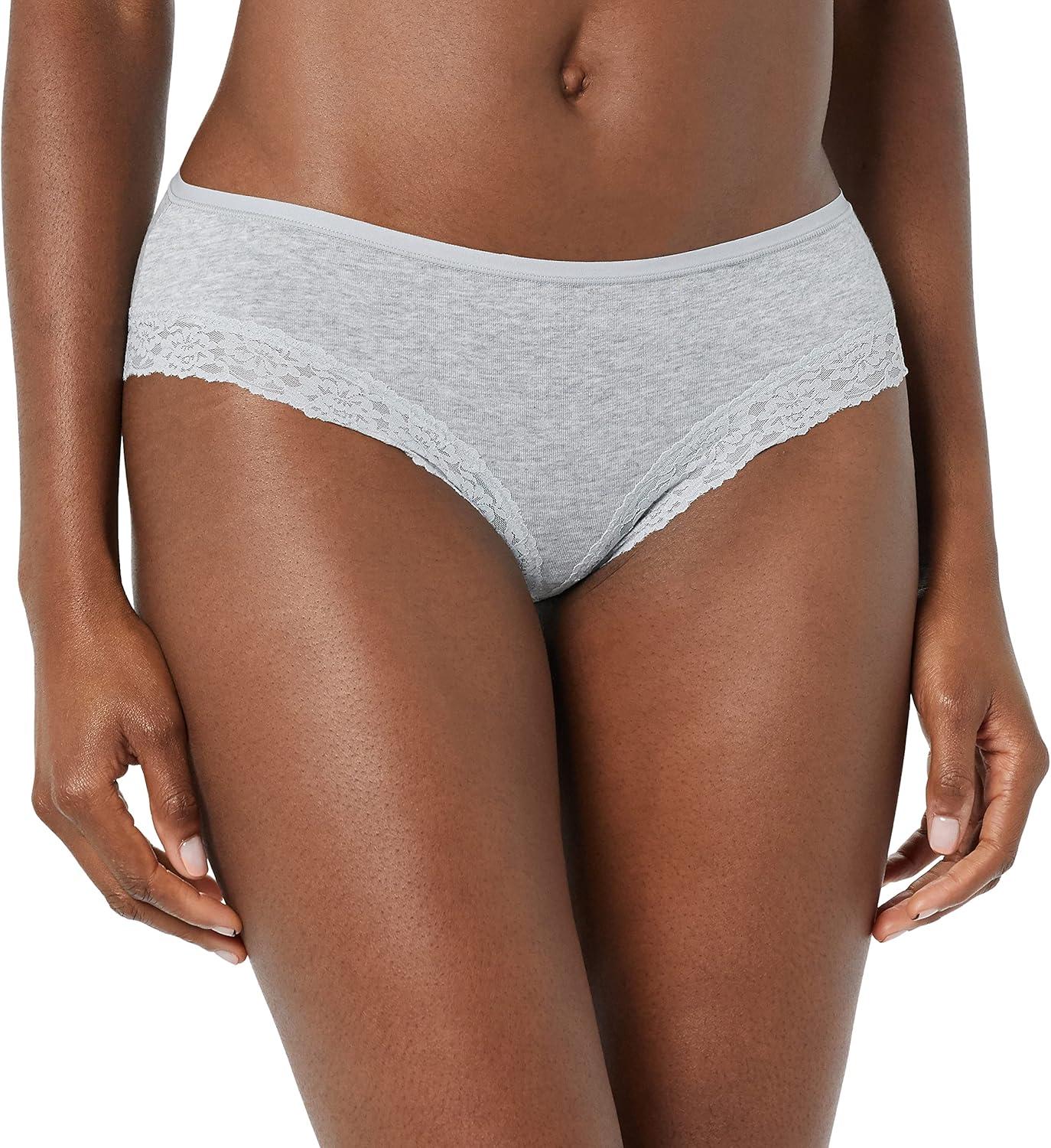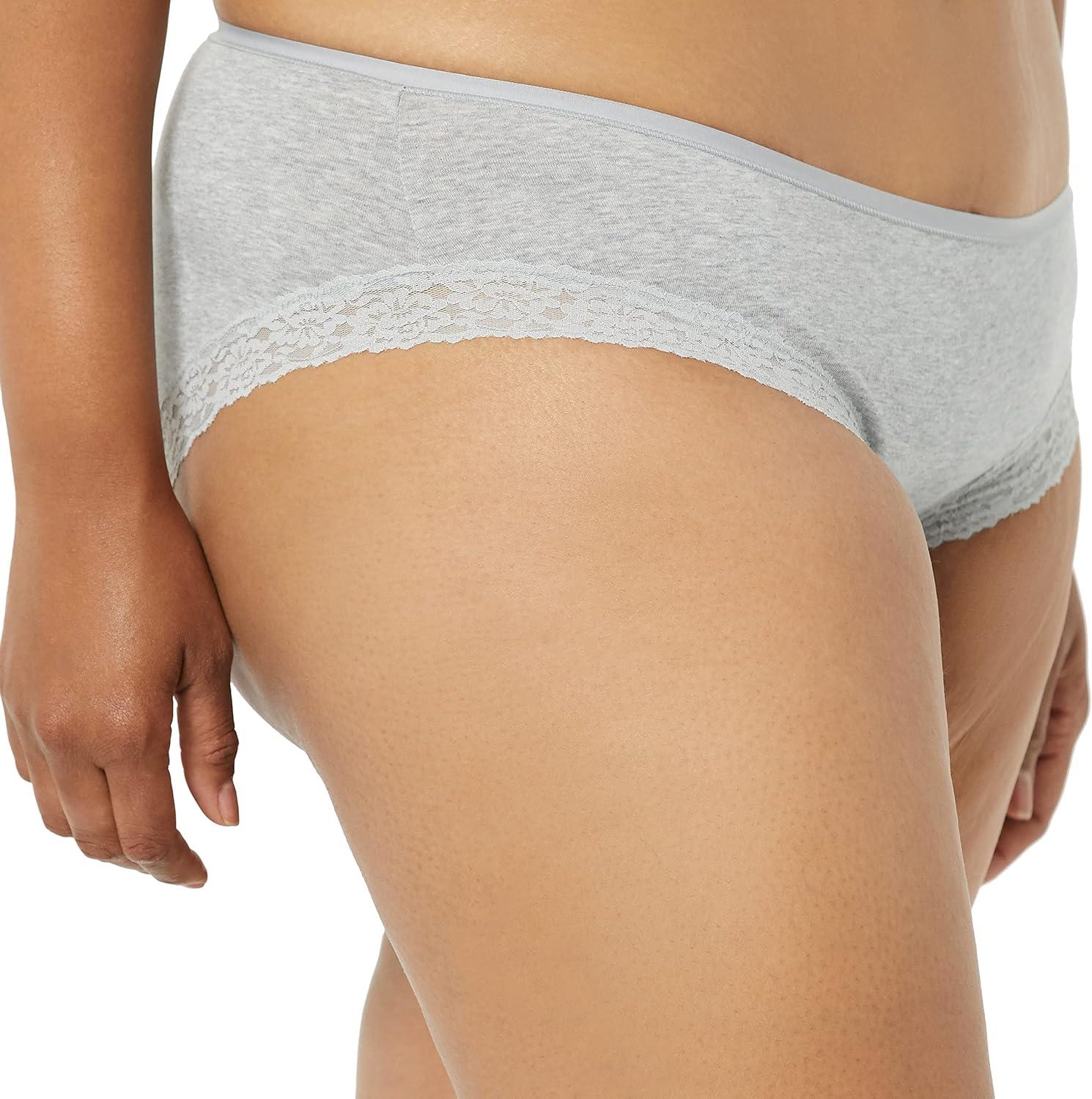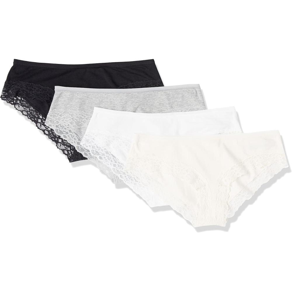 Amazon Essentials Women’s Cotton and Lace Hipster Underwear, Pack of 4(Black/Light Grey Marl/White)