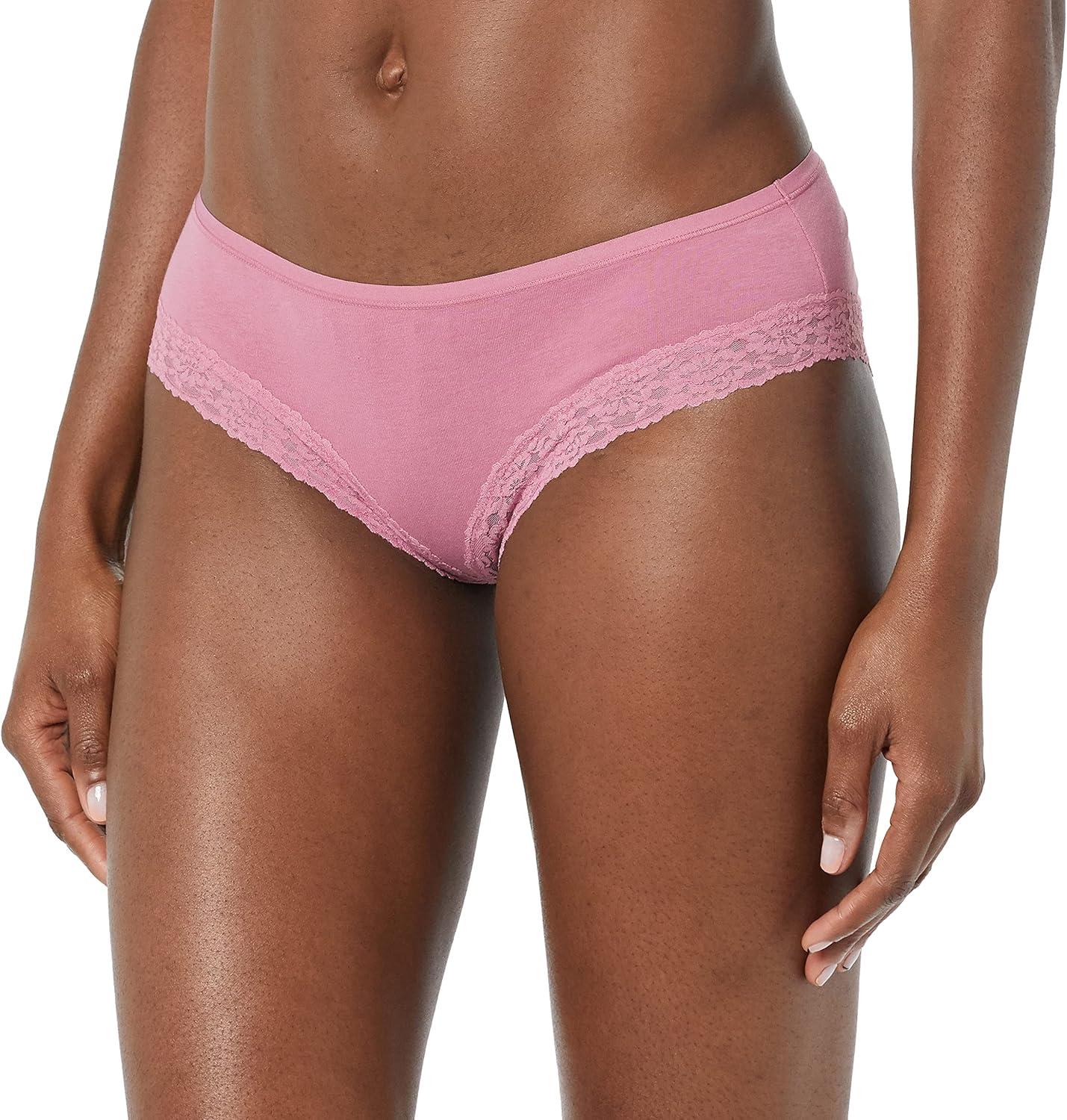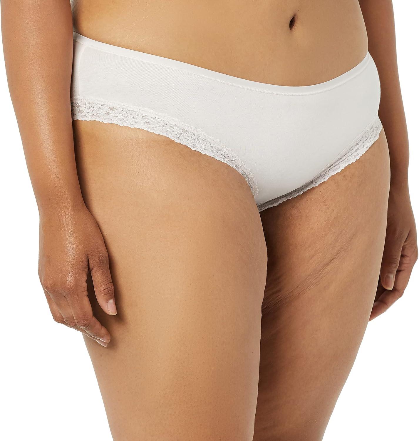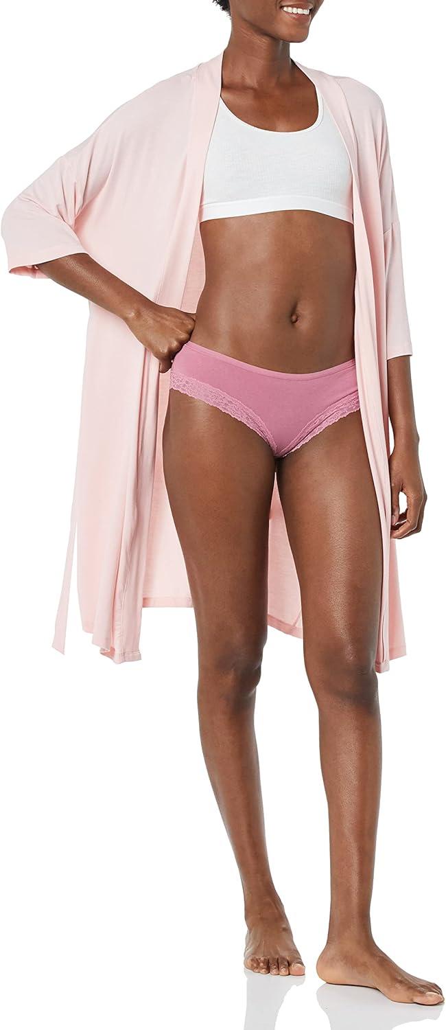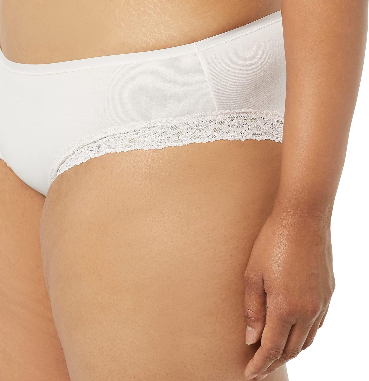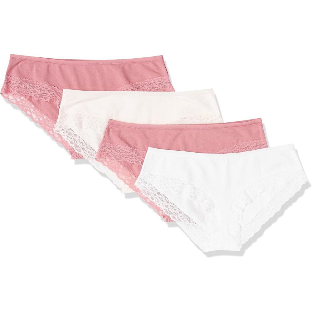 Amazon Essentials Women’s Cotton and Lace Hipster Underwear, Pack of 4(Bright White/Mauve/Pale Pink)