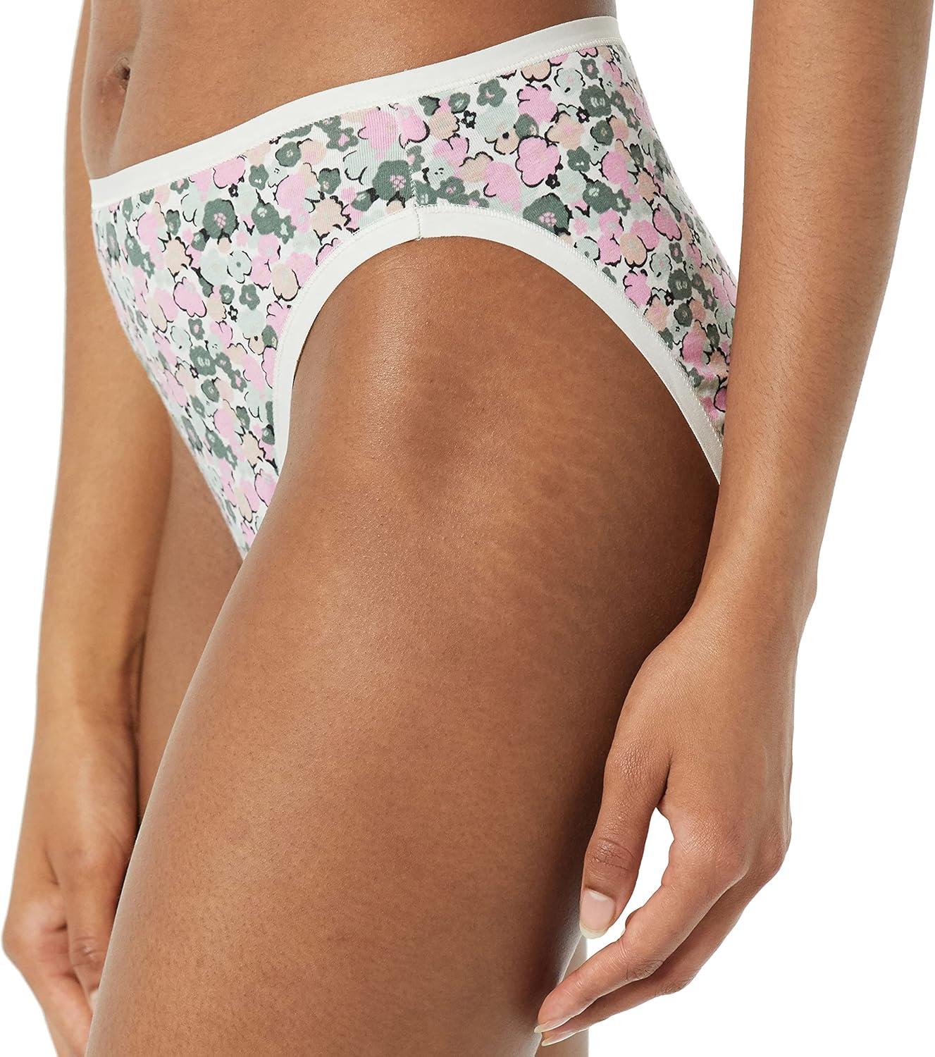 Amazon Essentials Women’s Cotton High Leg Brief Underwear (Available in Plus Size), Breathable, Multipacks(Dots/Floral Print/Thin Stripe)