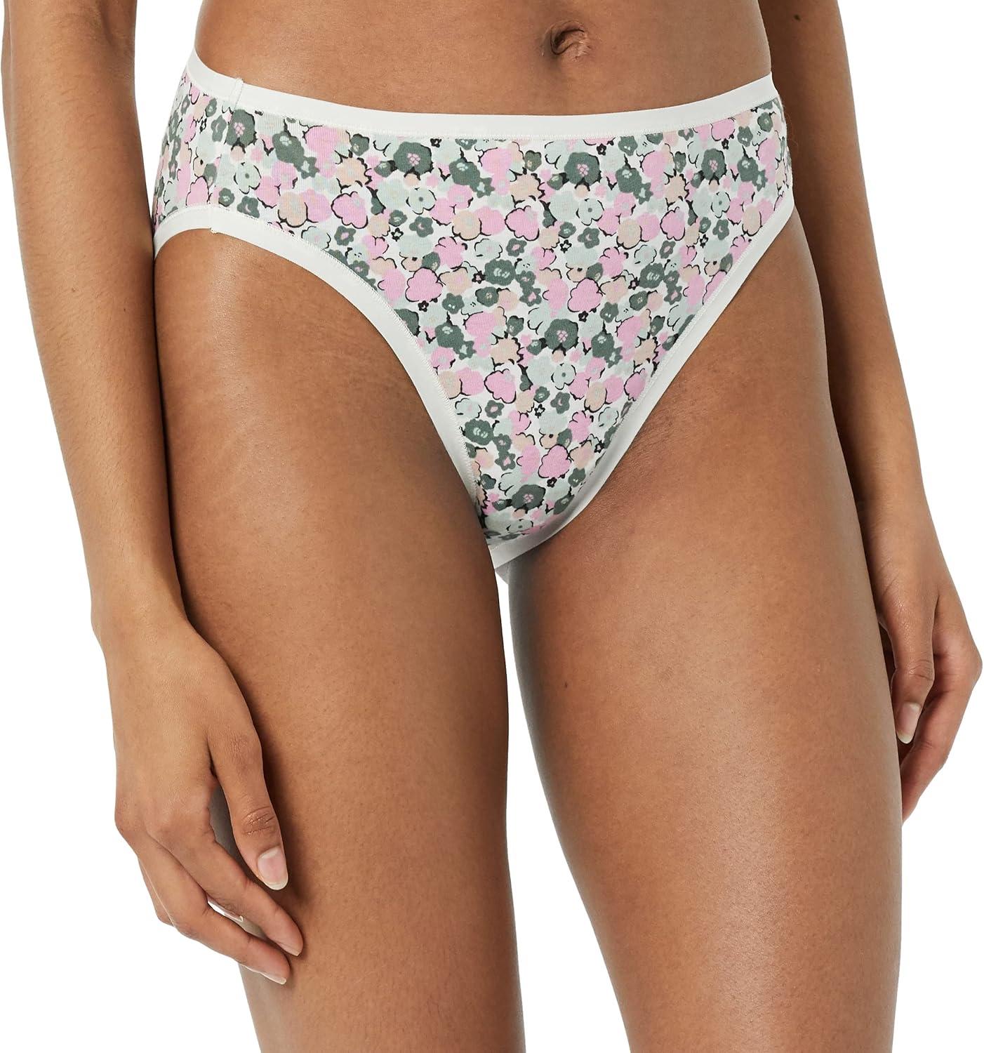 Amazon Essentials Women’s Cotton High Leg Brief Underwear (Available in Plus Size), Breathable, Multipacks(Checked/Dots/Floral/Multicolor)