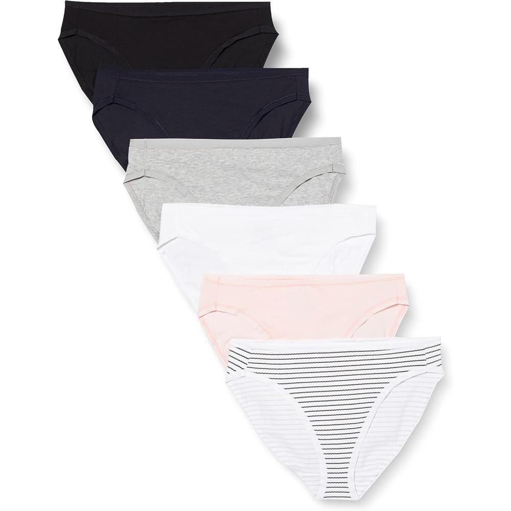 Amazon Essentials Women’s Cotton High Leg Brief Underwear (Available in Plus Size), Breathable, Multipacks(Multicolor/Heather/Stripe)