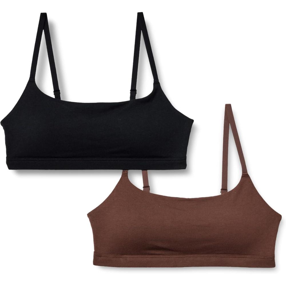 Amazon Essentials Women’s Cotton Jersey Adjustable Scoop Bralette, Pack of 2(Black/Rich Hazel)