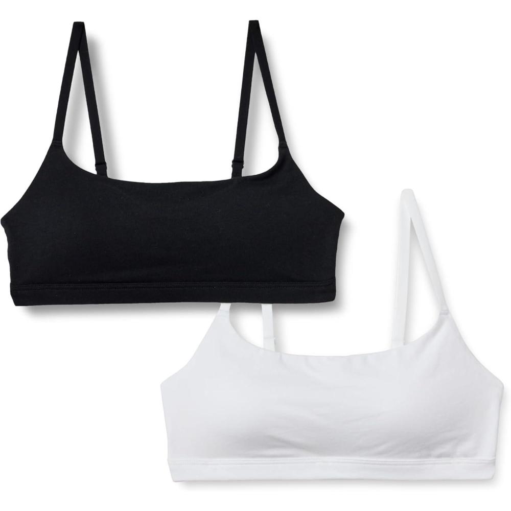 Amazon Essentials Women’s Cotton Jersey Adjustable Scoop Bralette, Pack of 2(Black/White)