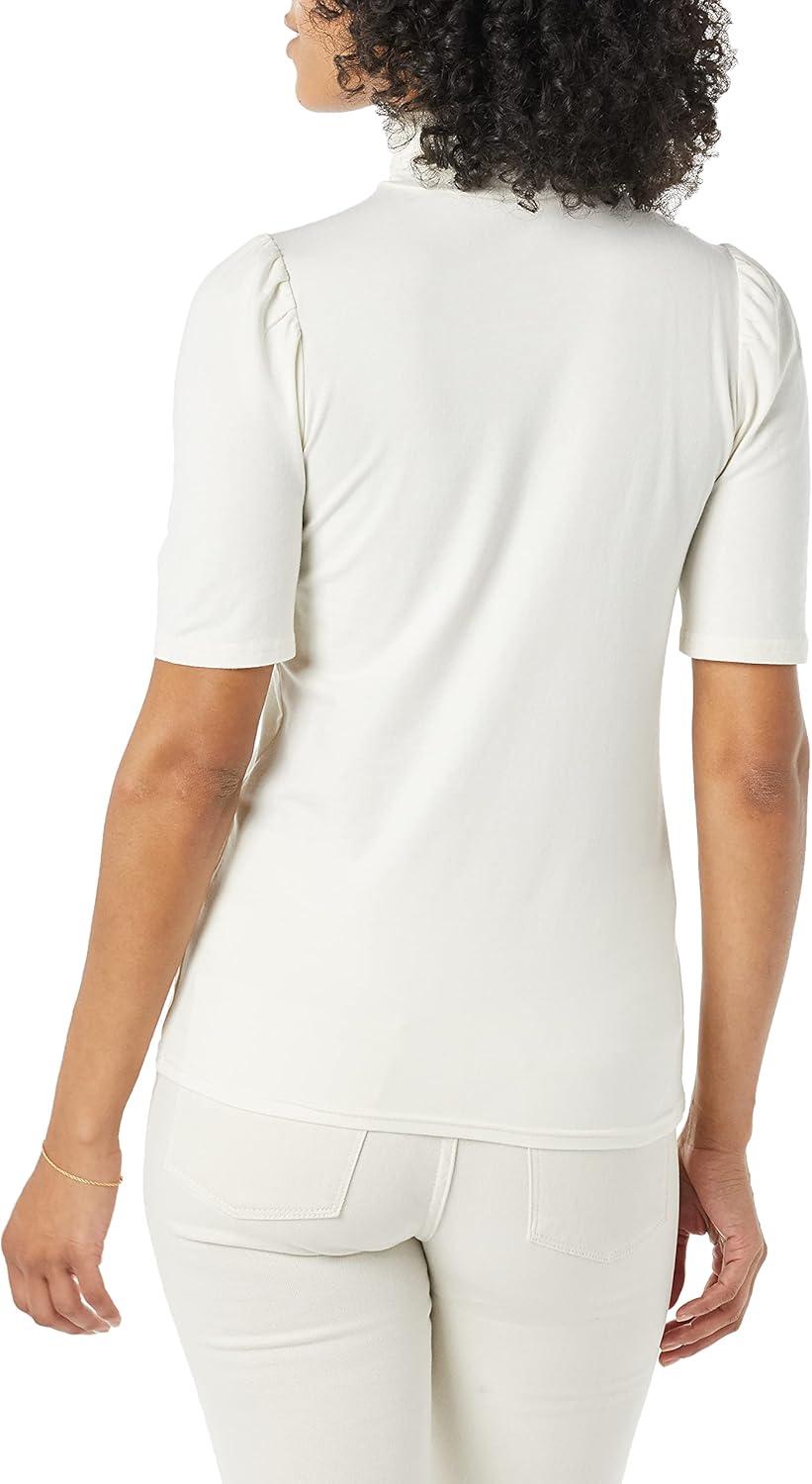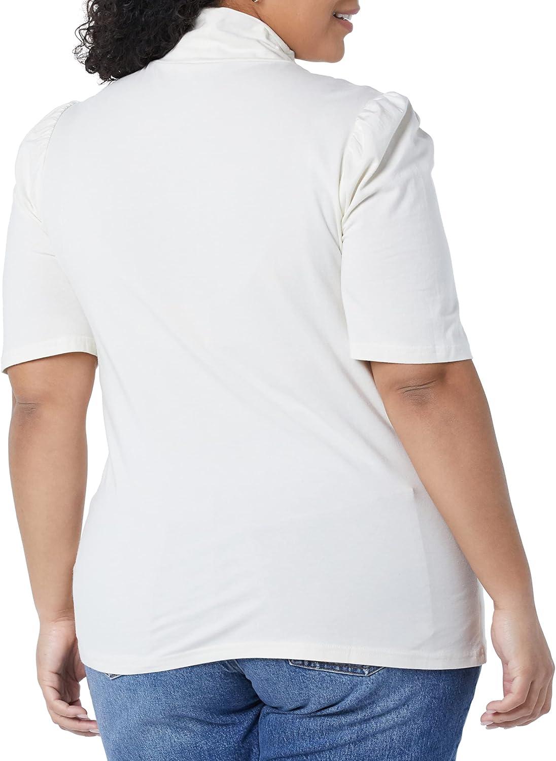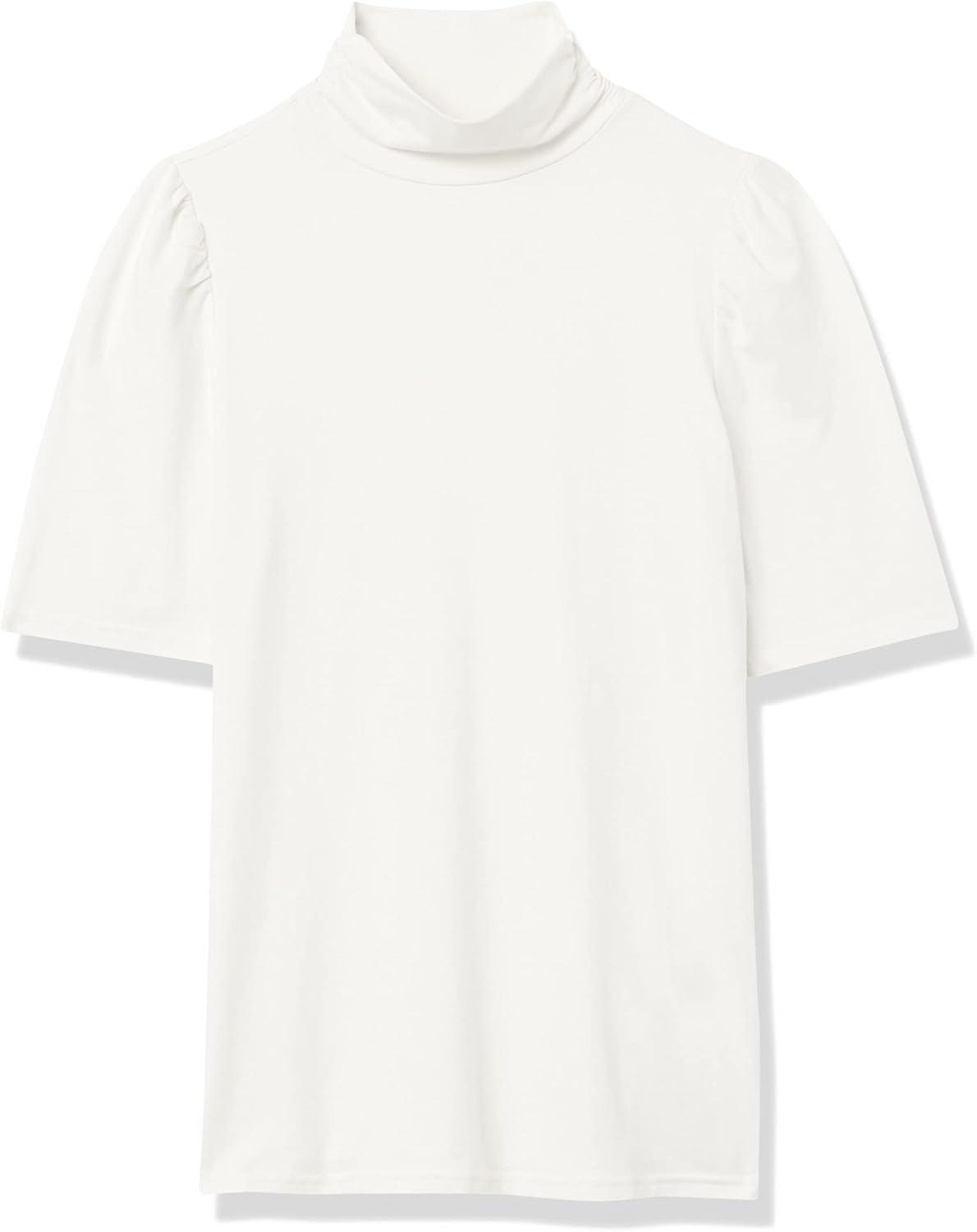 Amazon Essentials Women's Cotton Modal Draped Puff Sleeve Turtleneck(Ivory)