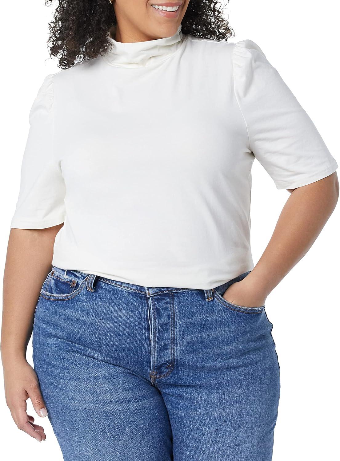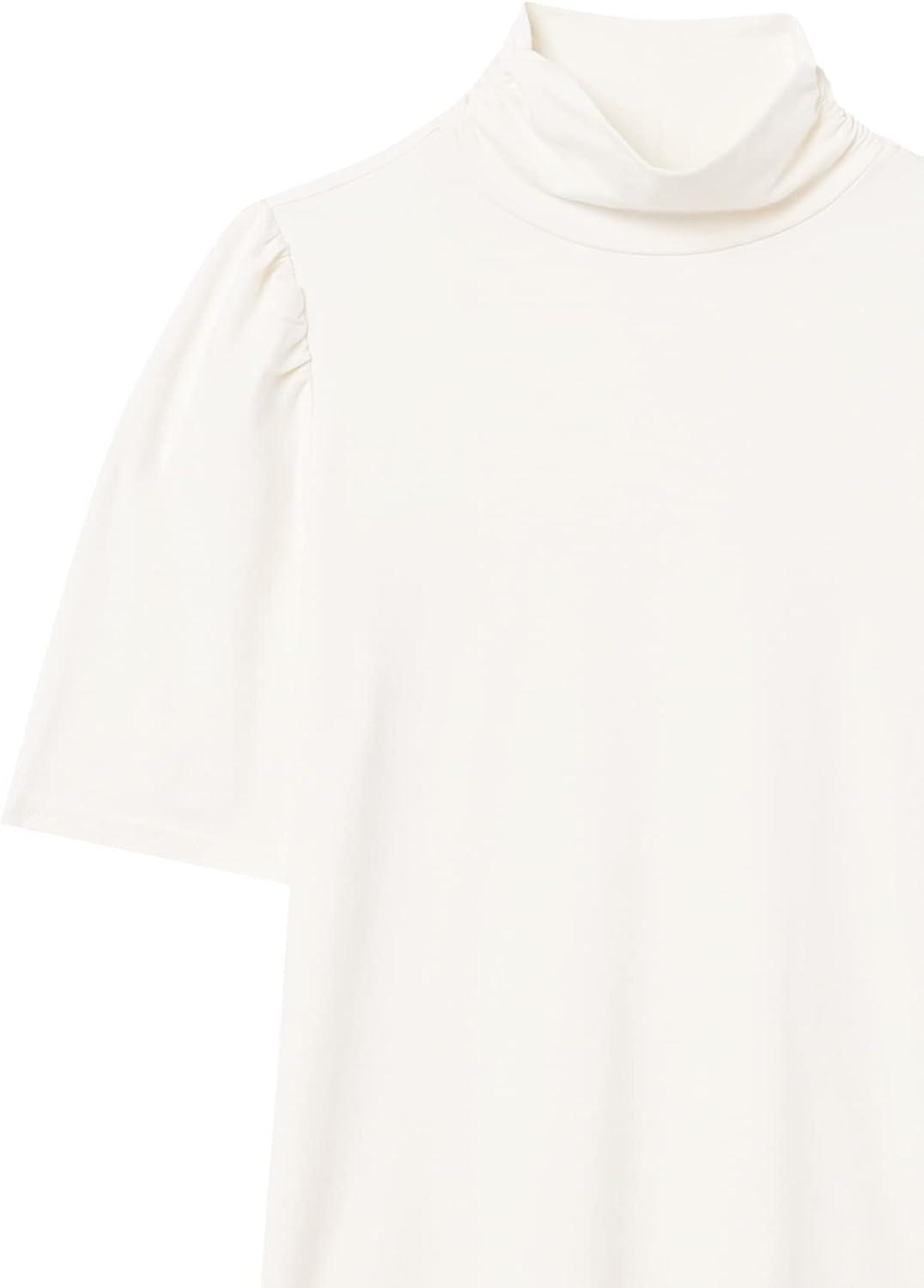 Amazon Essentials Women’s Cotton Modal Draped Puff Sleeve Turtleneck(Ivory)