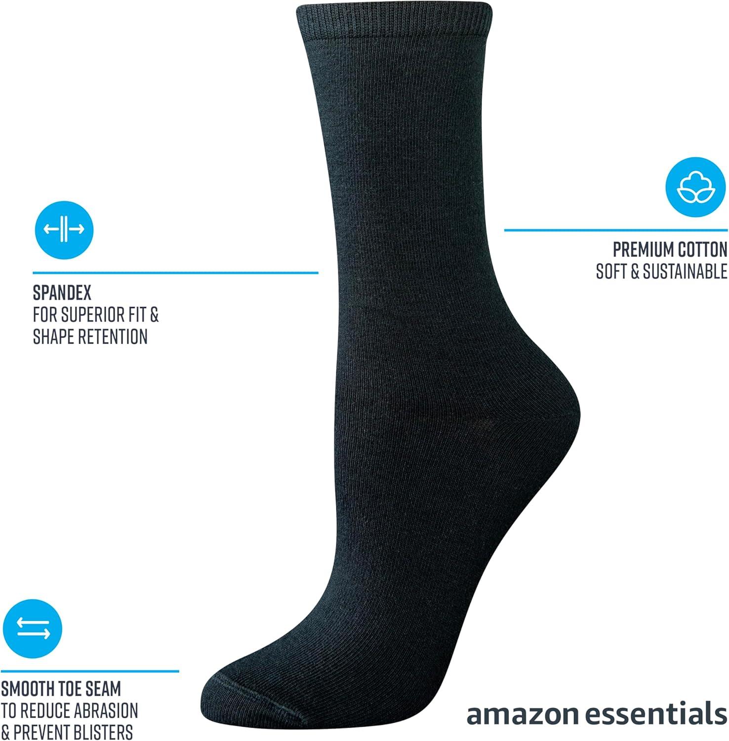 Amazon Essentials Women’s Crew Socks, Cotton, 6 Pairs(White)