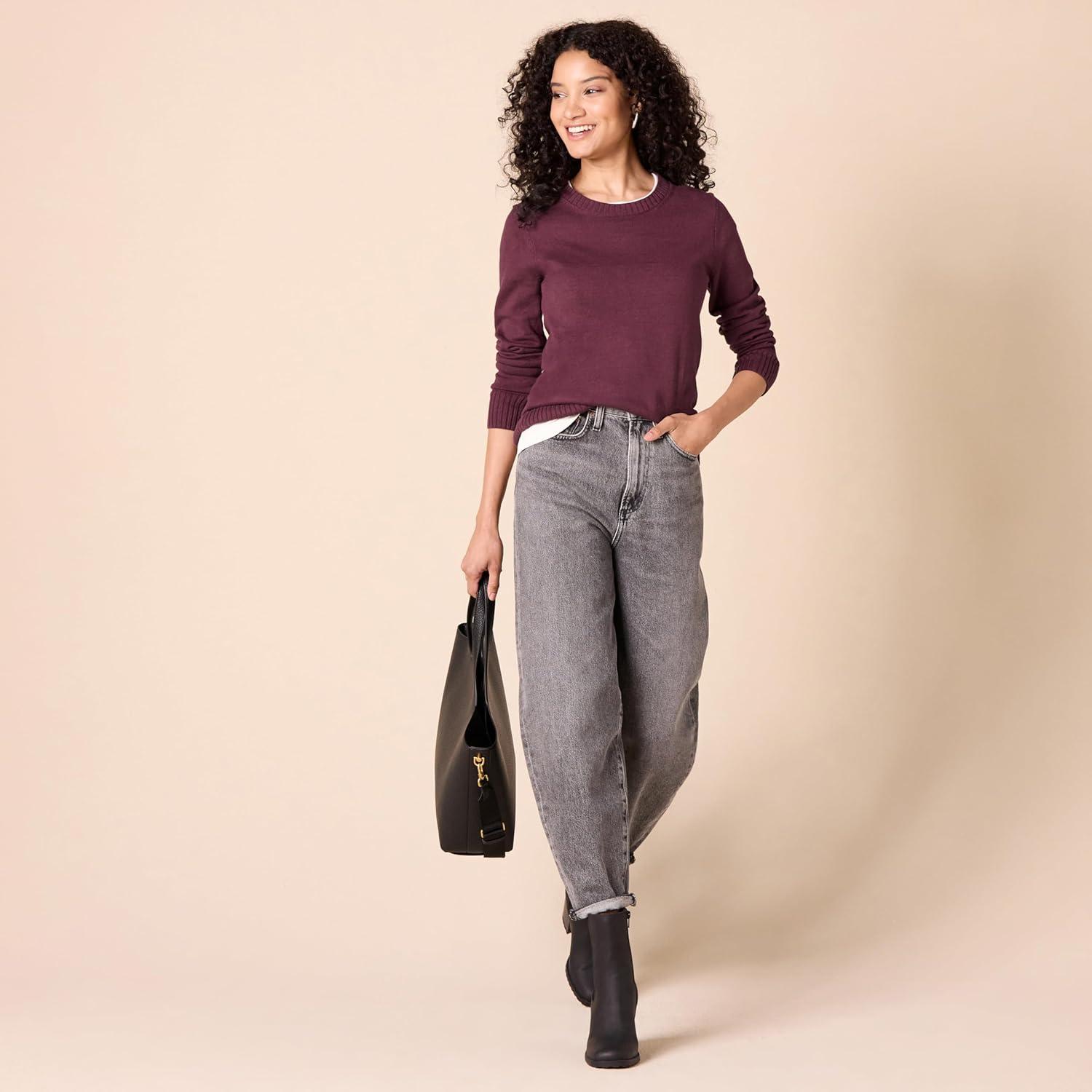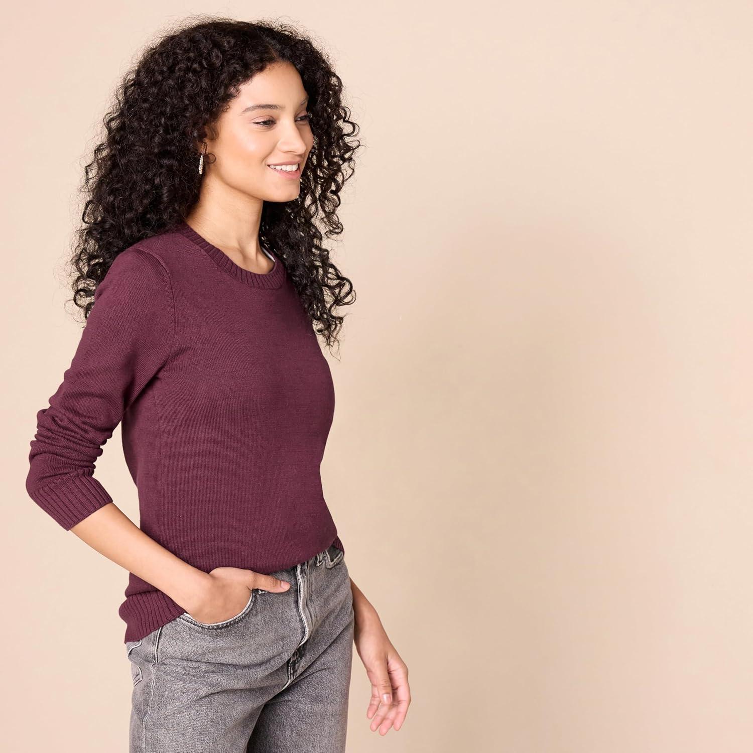 Amazon Essentials Women’s Crewneck Sweater, 100% Cotton, Plus Size Available(Burgundy)