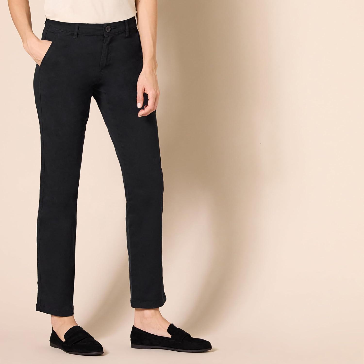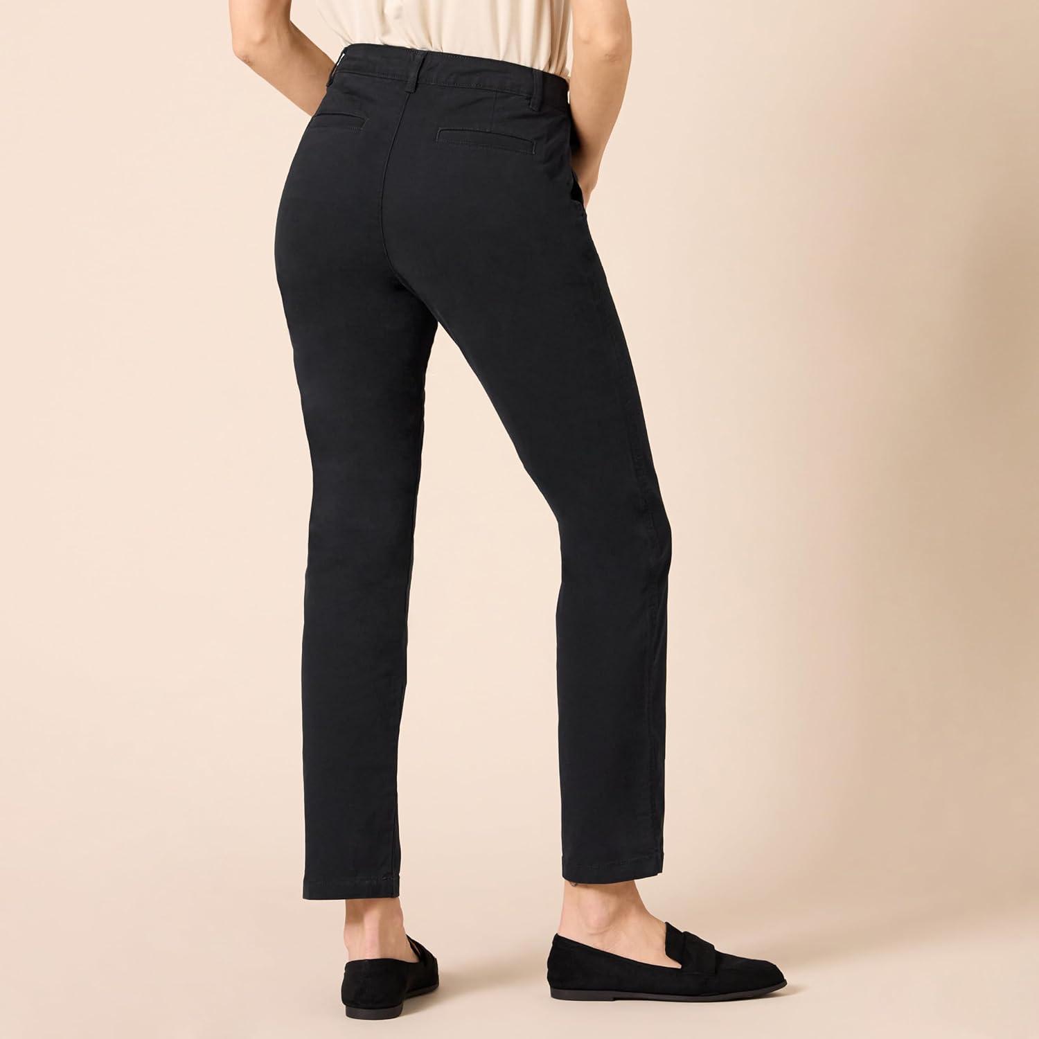 Amazon Essentials Women’s Curvy Straight-Fit Stretch Twill Chino Pant(Black)