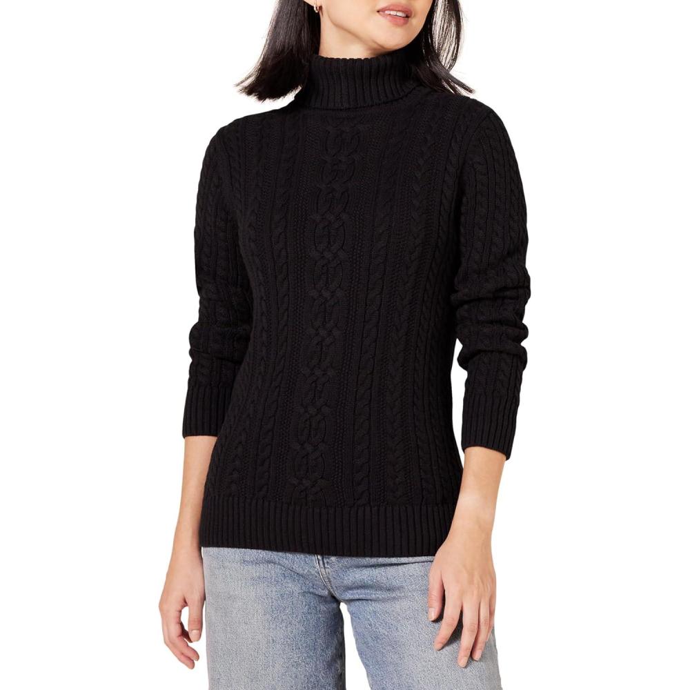 Amazon Essentials Women’s Fisherman Cable Turtleneck Sweater (Available in Plus Size)(Black)
