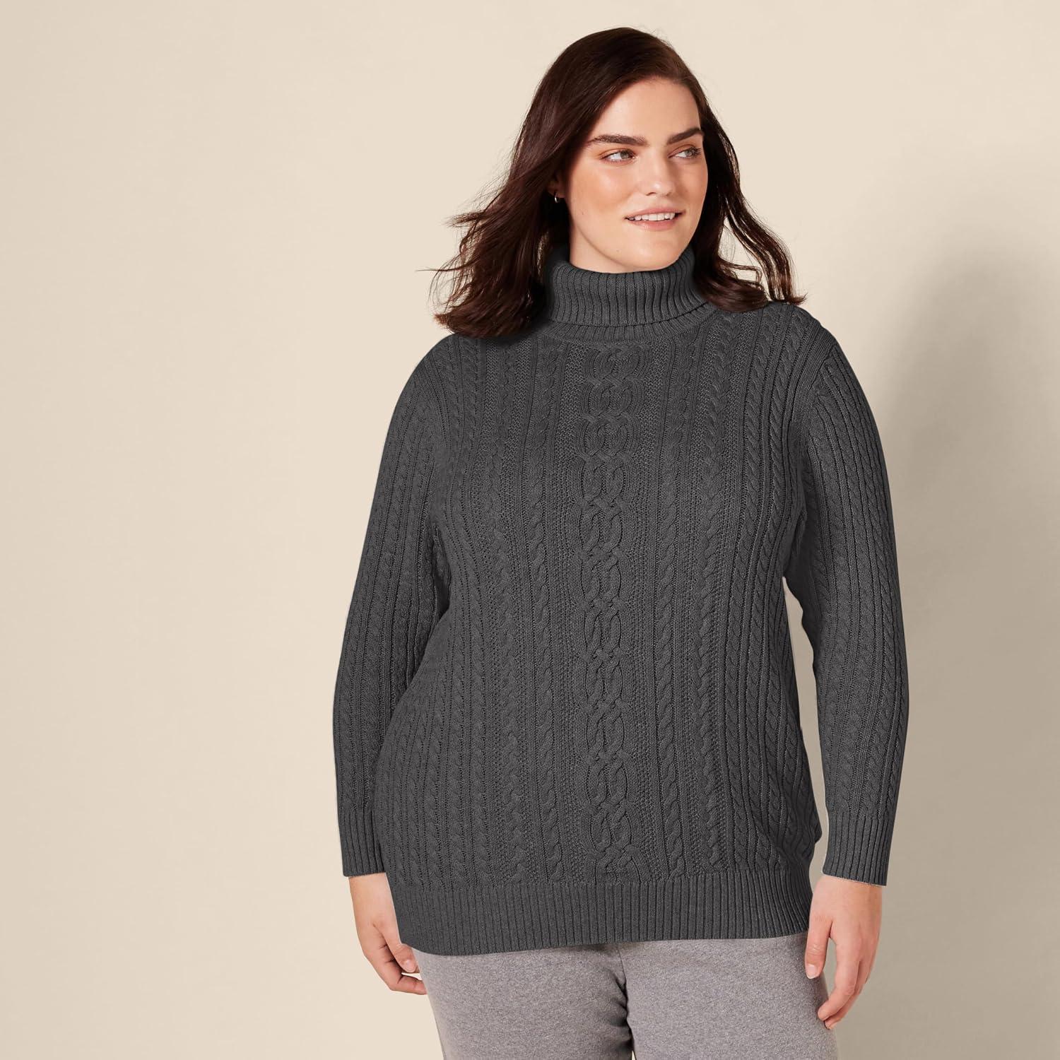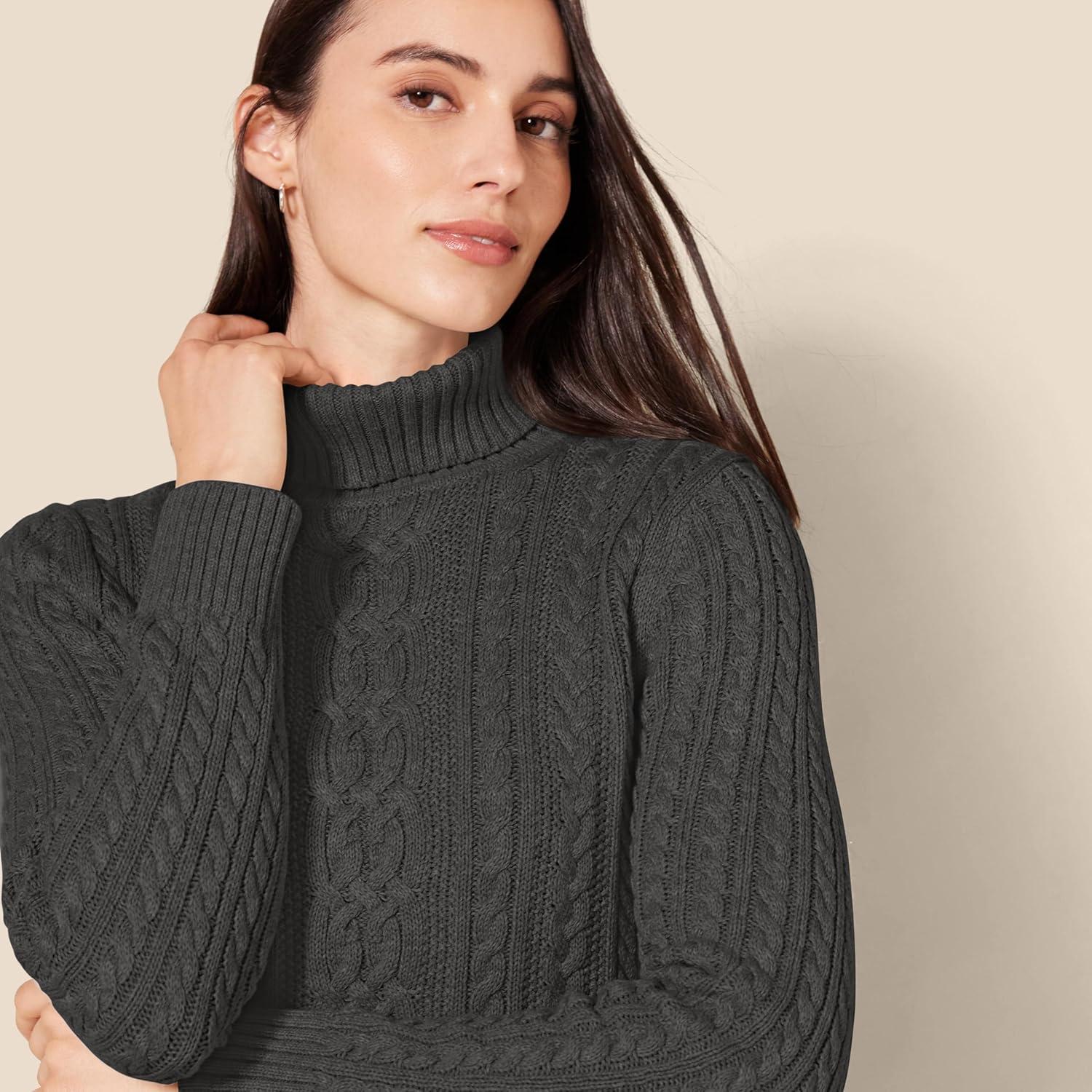 Amazon Essentials Women’s Fisherman Cable Turtleneck Sweater (Available in Plus Size)(Charcoal Heather)