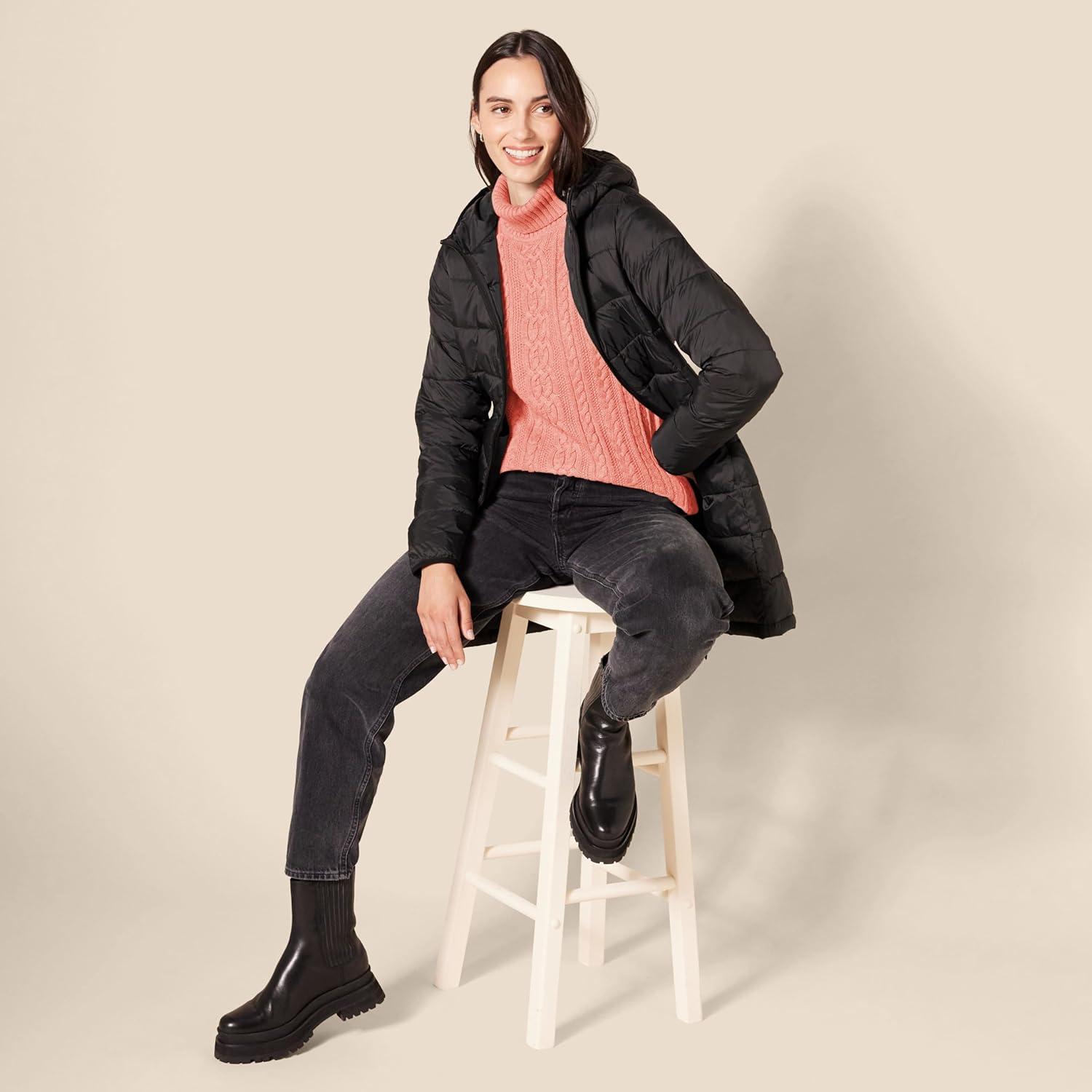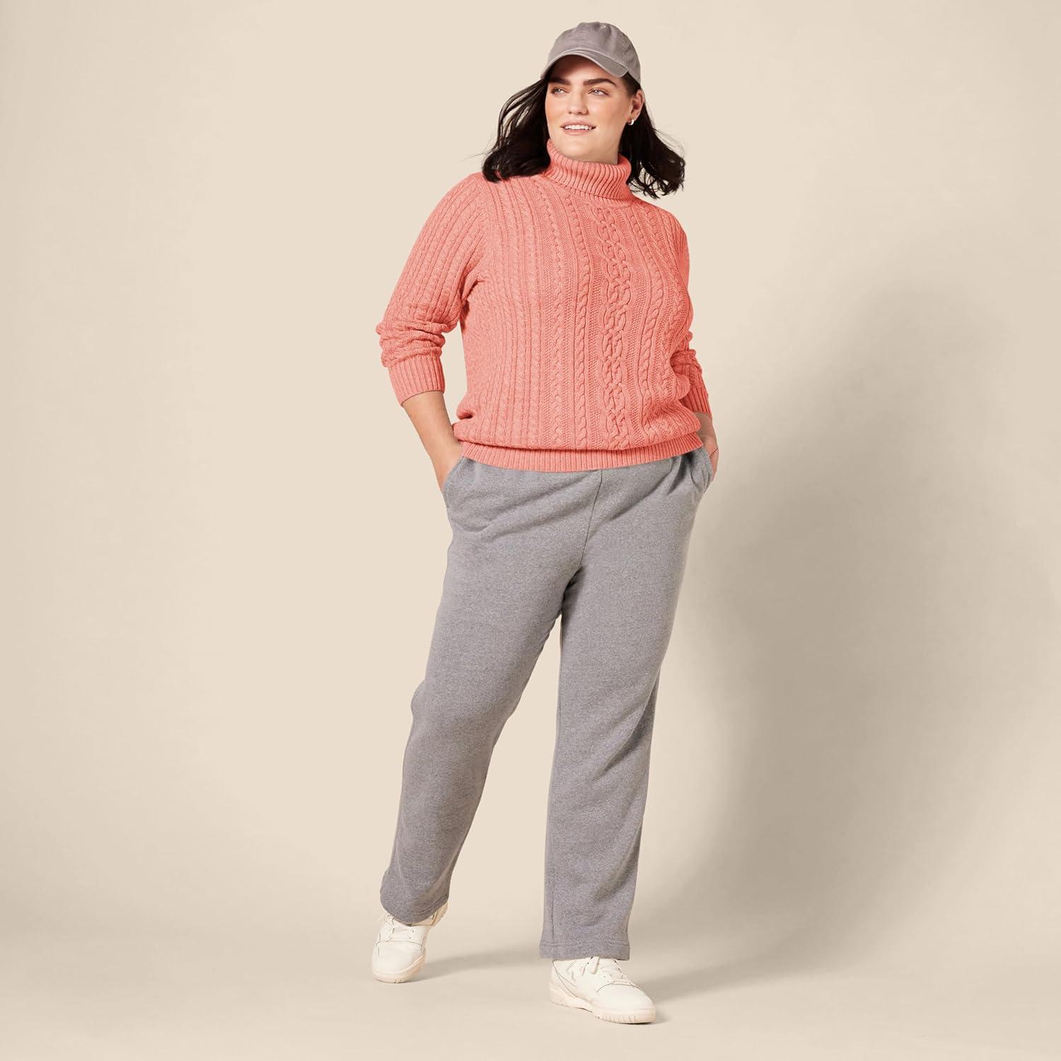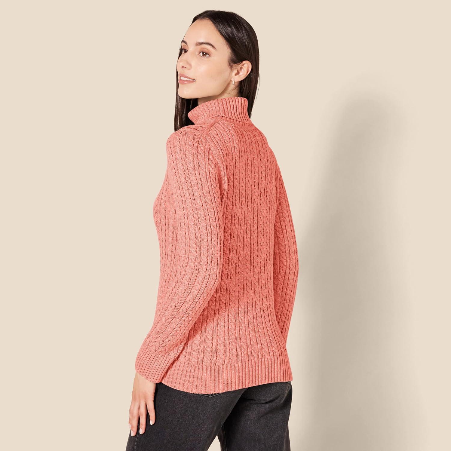 Amazon Essentials Women’s Fisherman Cable Turtleneck Sweater (Available in Plus Size)(Coral Pink)