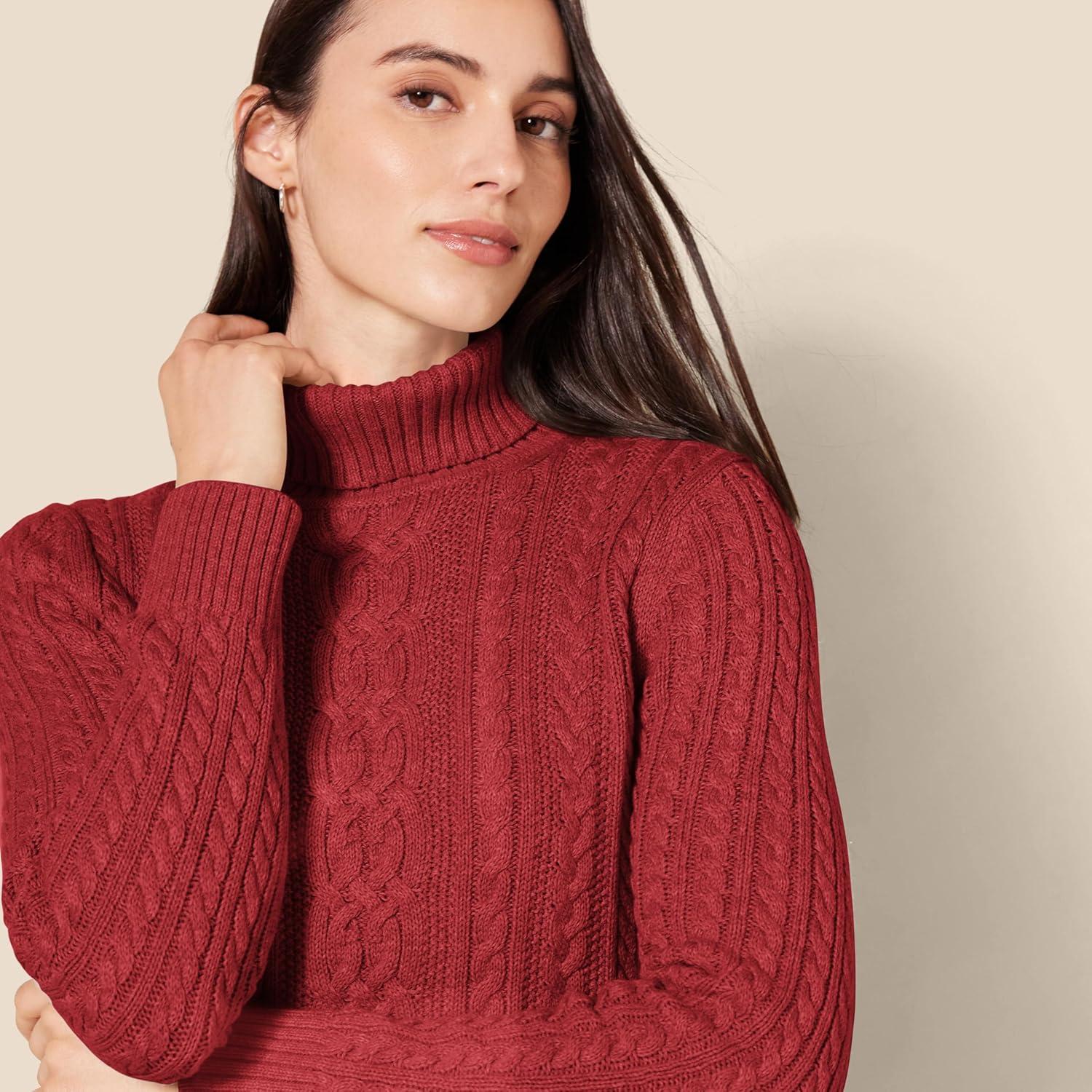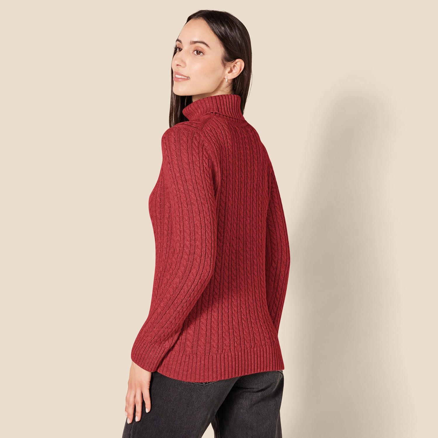 Amazon Essentials Women’s Fisherman Cable Turtleneck Sweater (Available in Plus Size)(Dark Red)