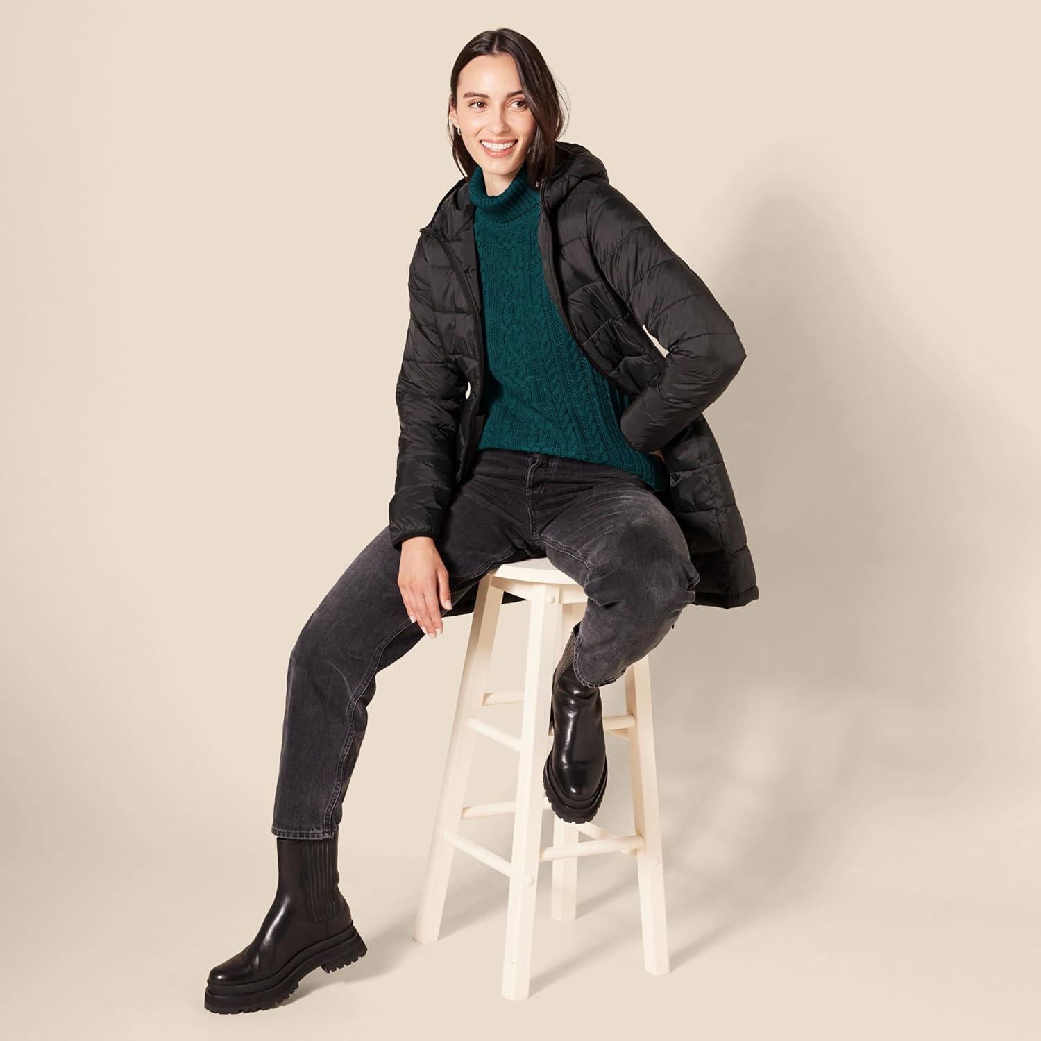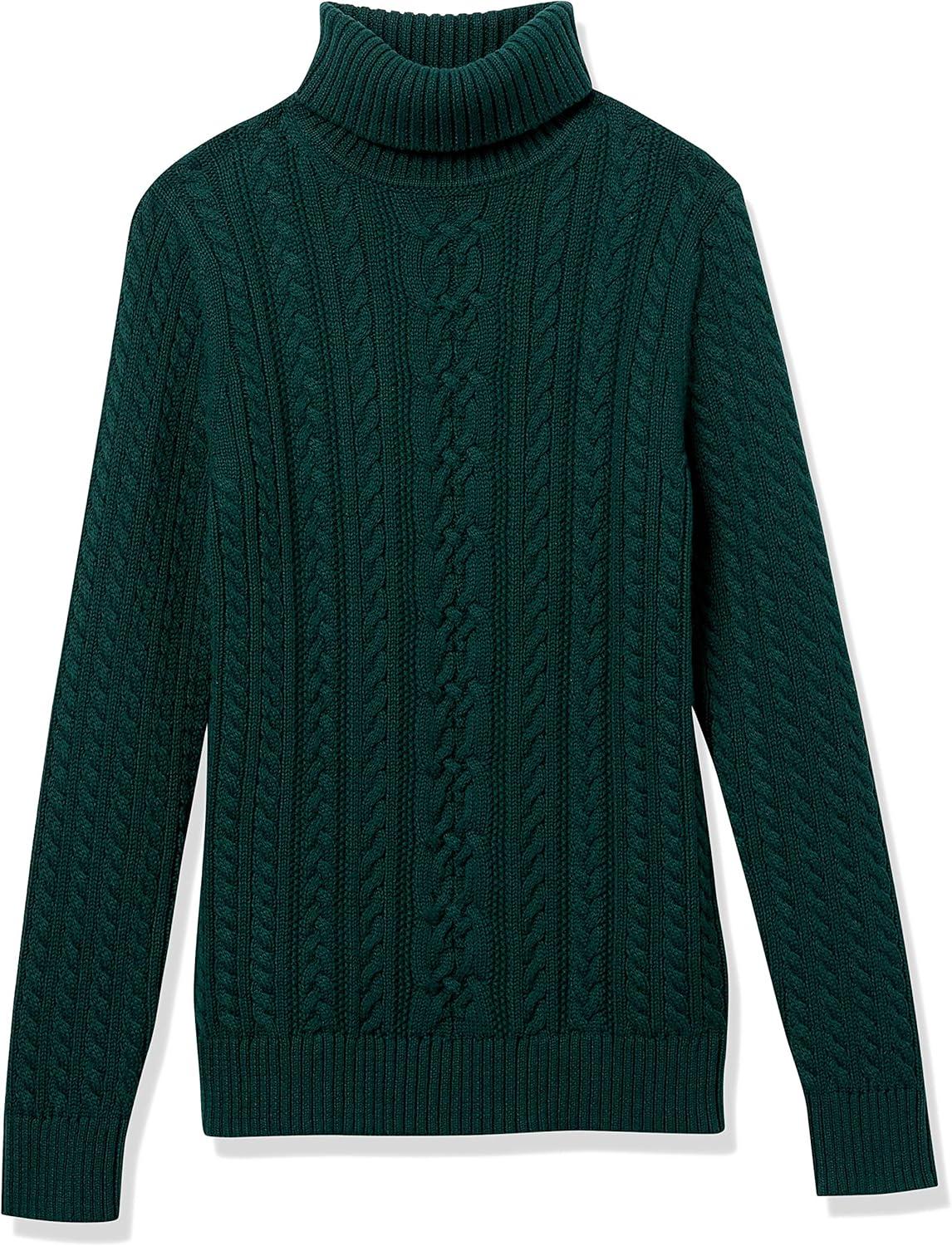 Amazon Essentials Women’s Fisherman Cable Turtleneck Sweater (Available in Plus Size)(Forest Green)