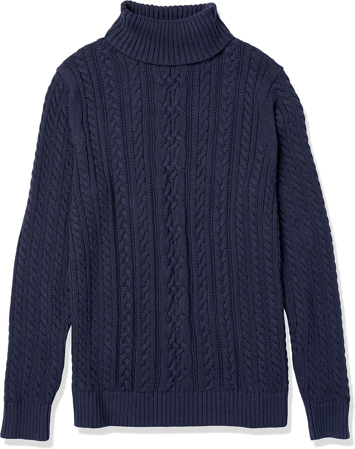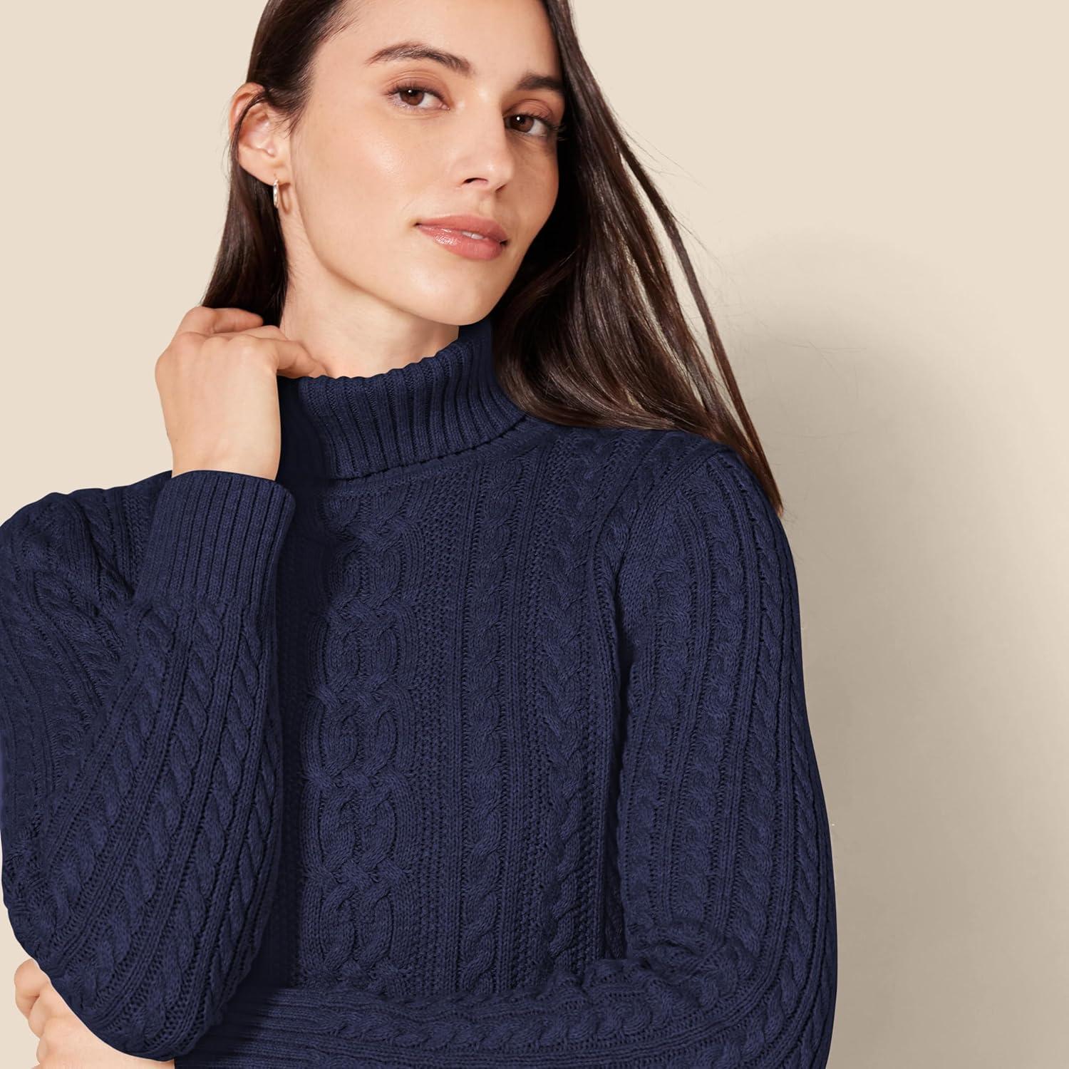 Amazon Essentials Women’s Fisherman Cable Turtleneck Sweater (Available in Plus Size)(Navy)