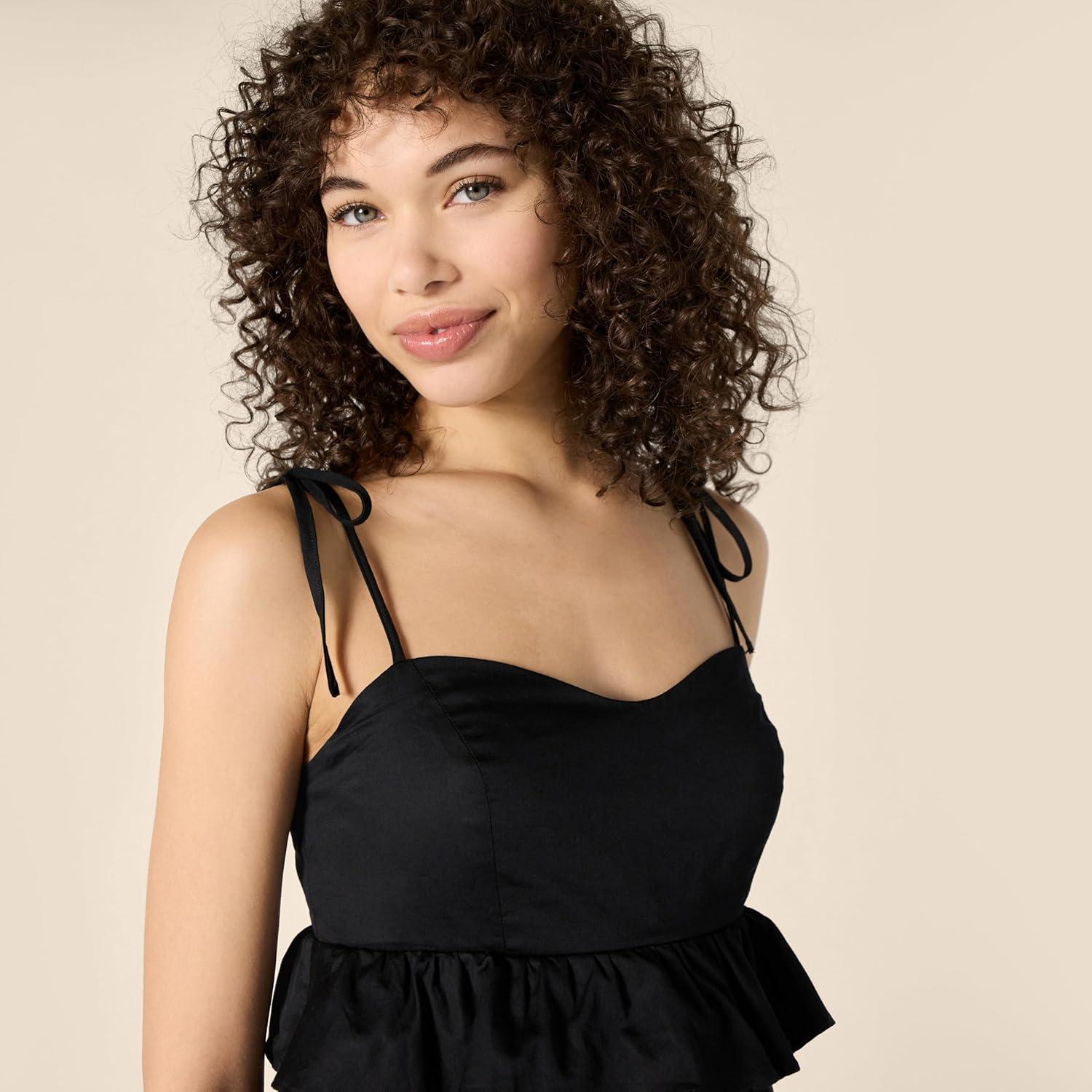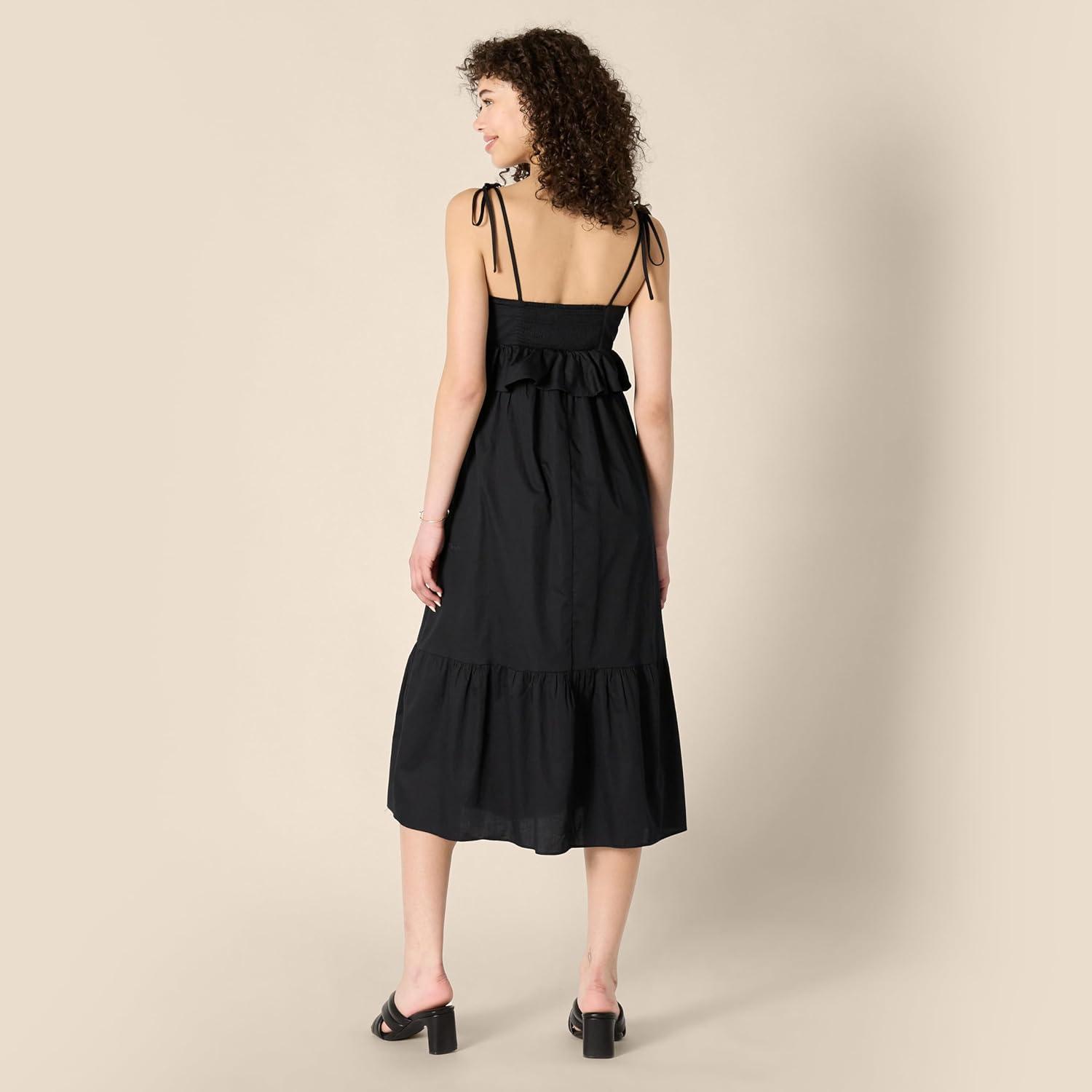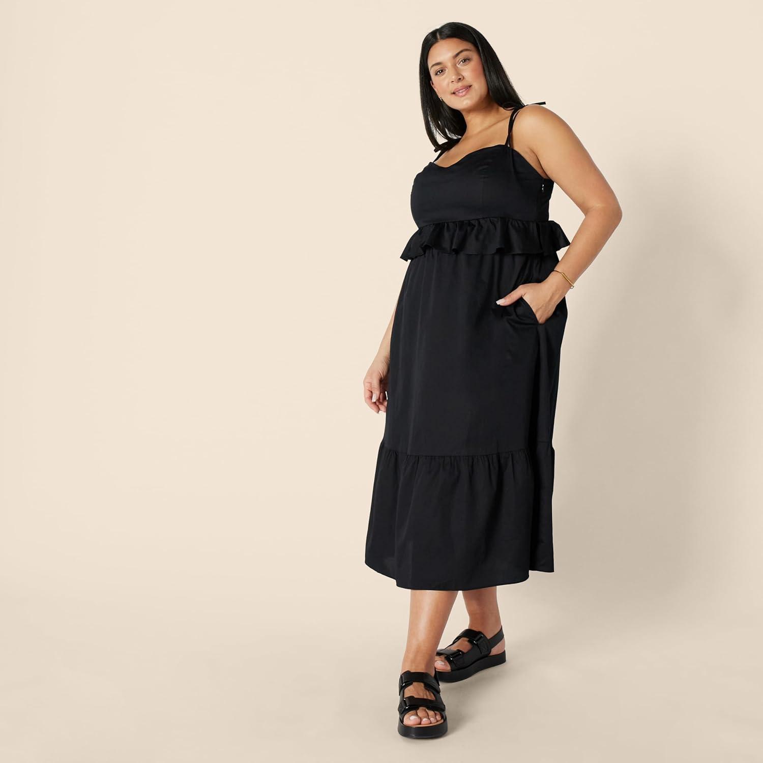 Amazon Essentials Women’s Fit and Flare Cotton Sateen Empire Waist Midi Ruffle Dress(Black)